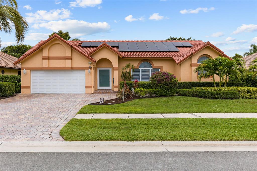 Stunning GOLF COURSE VIEWS! 4 Bed 2 Bath home in one of the prime locations in Boca Raton close to Shopping Centers, Parks, restaurants, walking distance to CHABAD of West Boca, A- rated schools and much more. BOCA GREENS is a man gated, no mandatory membership community. This home offers upgrades galore including high end crown molding, beautiful porcelain flooring, window coverings, blackout coverings in bedrooms, kitchen and bathroom cabinets and granite counter tops, new impact hurricane windows, doors, garage door, solar panels, pool renovation including travertine deck, heated pool salt system and pool resurfacing, 2 year AC and Attic insulation, stainless steel appliances and plantation blinds in living room and master bath. LOW HOA dues include Cable, High Speed and Lawn water