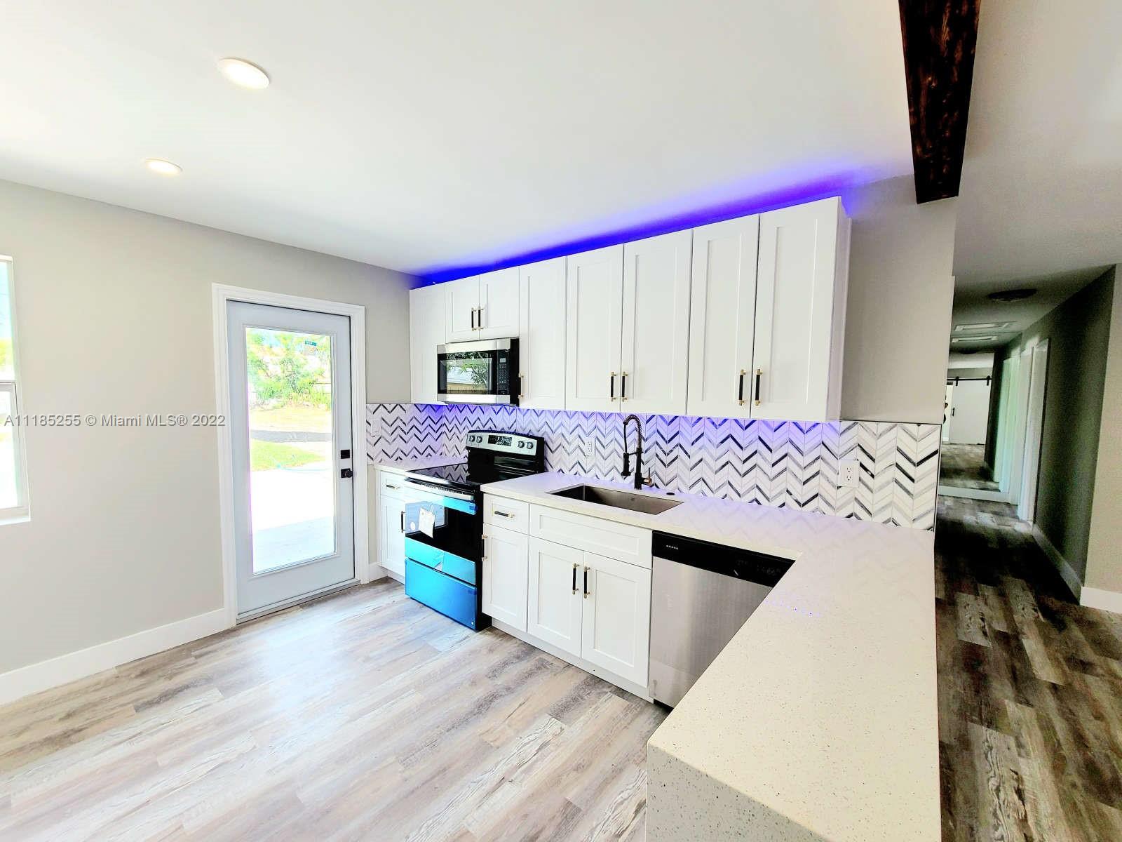 Come see this Beautiful 4/3 POOL home in the Heart of Riverland. Fully remodeled , New Kitchen w/ stainless steel appliances and bar top, 2 Master suites, 3 fully remodeled bathrooms (one cabana bath) This must-see home features a modern, open kitchen with peninsula, plenty of storage. Elegant custom made designs, vinyl plank flooring throughout gives the home a warm and inviting feel. Fenced backyard, volleyball court, refinished pool, playground and over 15,000 SQFT of land makes this home perfect for entertaining! Large driveway offers plenty of parking and detached storage room. No HOA! Easy access to I-595, 441 and I-95. This home is a must-see!