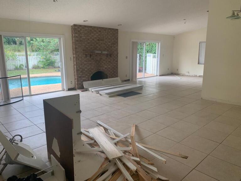 owner began demolition prior to sale. no bathrooms' vanities in place. 10 year old kitchen. New AC unit. property sold AS IS