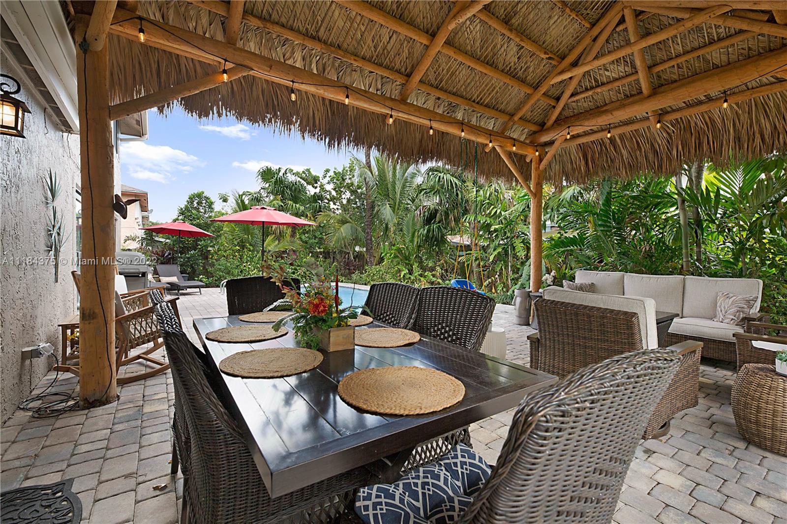 This impeccable & upgraded home is ready for you! Situated on a spacious 8,114 sqft corner lot. This home is professionally landscaped w/ lush foliage & is covered w/ butterflies & hummingbirds. As you walk over your Chicago brick walkway you are greeted by the charming front porch & Moroccan red door that lead you into your stunning home. Wide plank waterproof laminate flooring on 1st level. Upgraded stunning kitchen w/ island & pantry. Spacious living, family & dining room. Freshly painted interior. 4th bedroom is located on the 1st floor. All other bedrooms are upstairs. New Carpet. Large rooms. Owner's suite features walk out deck w/ upgraded en-suite bath & walk-in closet. Impact windows. Paver patio w/ heated pool & tiki bar. New shed, fenced yard, no HOA & much more! Video avail.