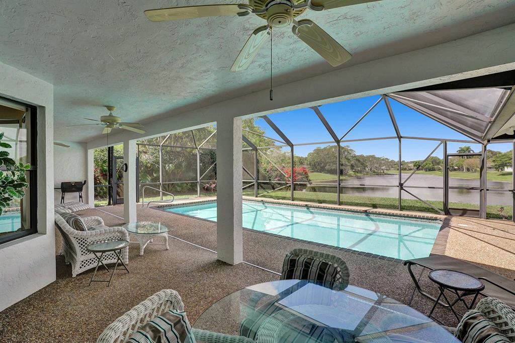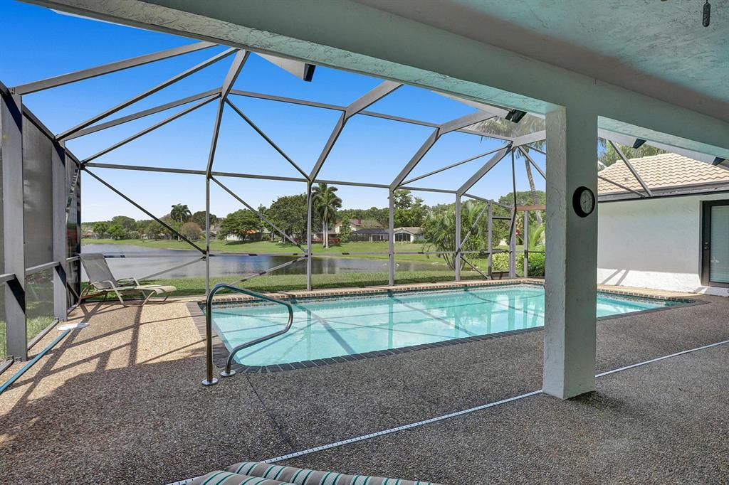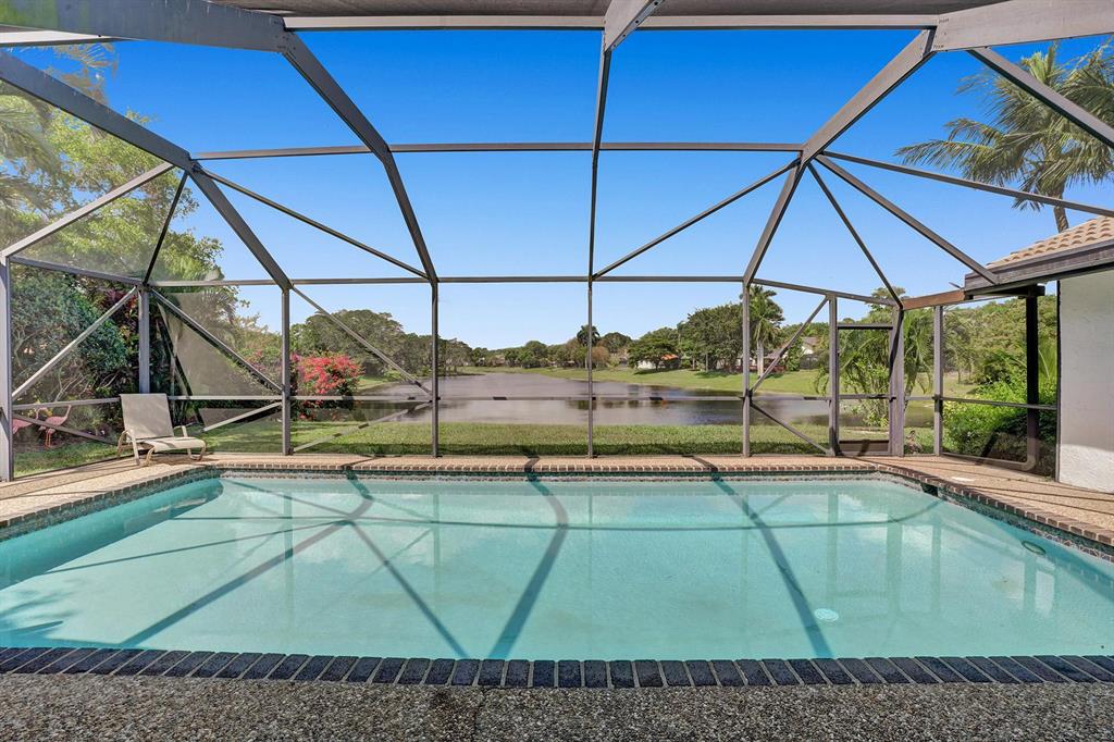 Beautiful Millpond neighborhood with it's tree canopy sidewalks & roads, neighborhood park with Children's Play Area, Tennis, Basketball and lake is located in Central Boca, A Rated Schools and minutes from Town Center Mall! This lovely, move in ready, 4 bedroom, 2 1/2 bath home has remarkable long views of the lake from the spacious covered, screened patio & pool, family room, dining room,kitchen with breakfast area, master bedroom & bath. It has an inside laundry room with pantry & 2 car garage. The floors are tile and wood and some rooms have volume ceilings. The windows and doors are Impact Glass. Gas heater for water & pool.
