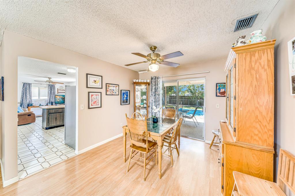 Spacious & open 3 bedroom 2 bath, 2 car garage, huge backyard with patio and a sparkling swimming POOL! All impact windows from 2019. Sliders have shutters. NEW Roof from 2019! Huge kitchen features tons of cabinets and counter space plus a sunny eat in area (or can be used as a family room). A formal dining room and big living room. Move in Ready! A great place to relax on a hammock as well as a great place to entertain. Enjoy endless swimming in your own private pool! Tons of green grassy area. Fenced in yard. Covered & open patio area. Great for BBQ! Great Schools! Just a short walk to the Elementary school. Low HOA fee of only $34 a month! No clubs to join. Pets ok. FHA & VA loans ok! All ages! Attention Investors: You can rent right after purchase. A/C 2017.
