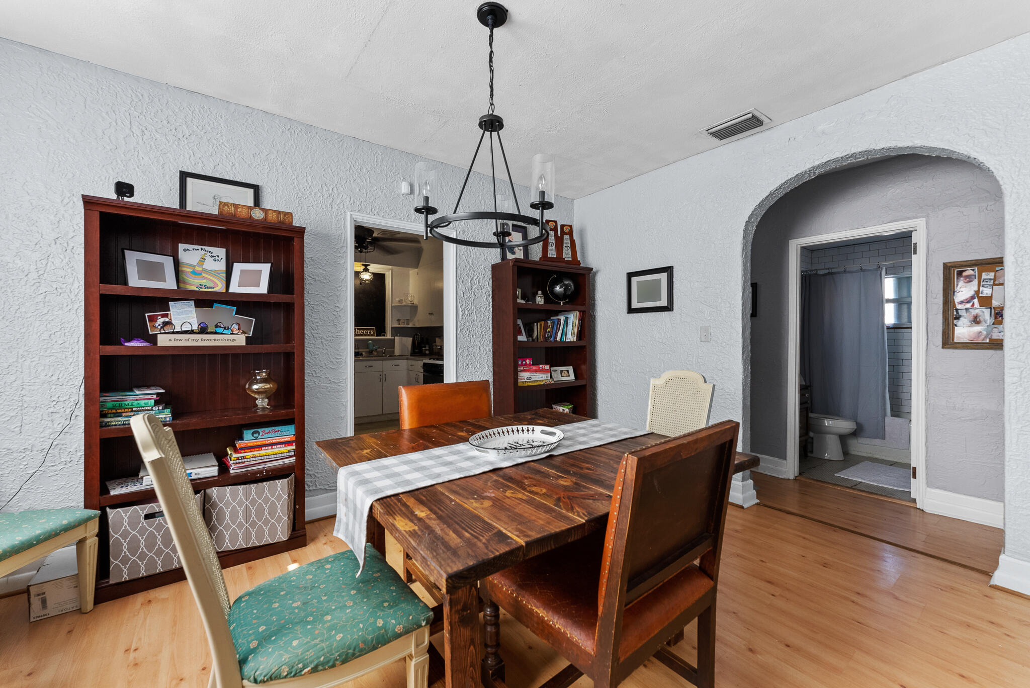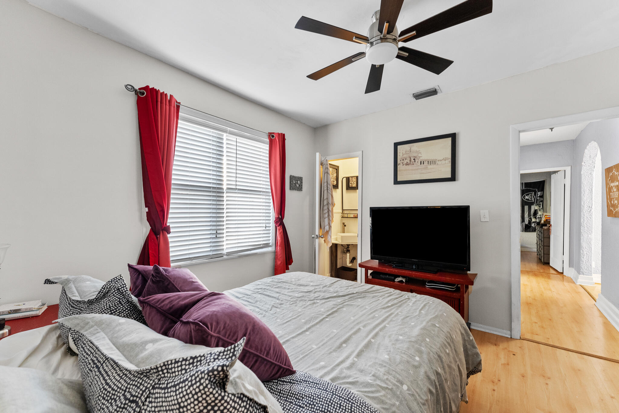 Charming spanish style home with archways & lots of character! This beauty features a screened front porch, an office/sitting room off of the spacious master bedroom, beautiful flooring, gas range/hot water heater and a lot of storage throughout home. The laundry room is very spacious. There is a big 10x18 workshop/shed with shelving as well as fenced backyard. The driveway fits up to 4 cars which is rare for the area. This home is Conveniently located close to Downtown lake worth as well as downtown city place and is near many great restaurants and parks.