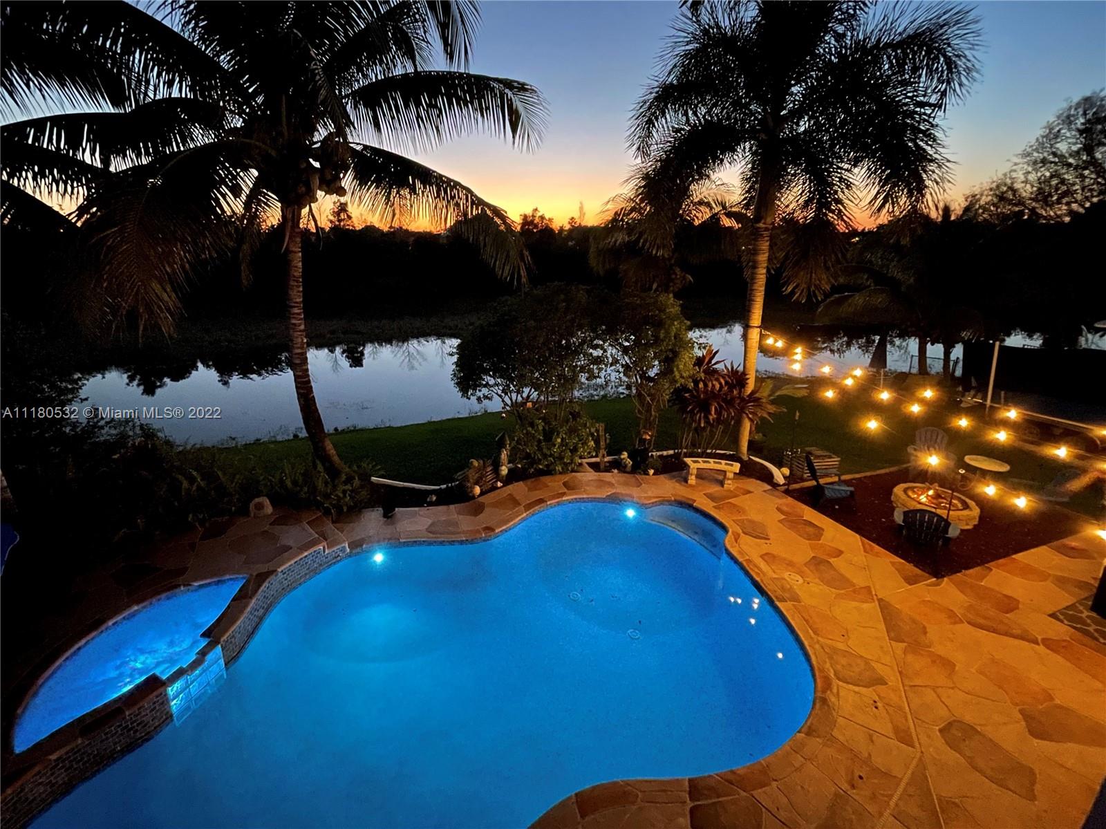 Nestled in gated Spring Valley Estates, this 2-Story HAVEN DELIGHTS the senses! Enjoy LAKE & NATURE PRESERVE views from sun-lit kitchen featuring quartz counters, eat-in bar & casual dining nook. ENTERTAIN guests on covered terrace & fenced 1300+ sqft concrete patio w/spectacular SUNSETS! Unwind in sparkling Freeform HEATED POOL w/Jacuzzi & Waterfall renovated 2021. Relax upstairs in OVERSIZED Owners Suite boasting tray ceiling, sitting area, his/her w-in closets, balcony w/water views, Roman Tub & Shower, DUAL marble vanities. 2nd BD Mini-master suite w/bath & w-in closet. 3rd & 4th BDs share Jack-n-Jill bath. 1st floor ½ bath, pantry & laundry rm; 2nd level CBS & Gyp-Crete floor system; 2 car gar; shutters; great schools, low HOA, easy access to shops/I-75/FLL/MIA & more! Don’t miss it!