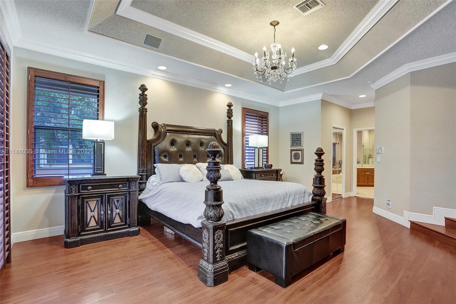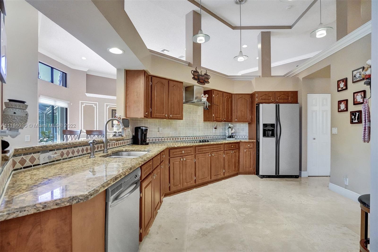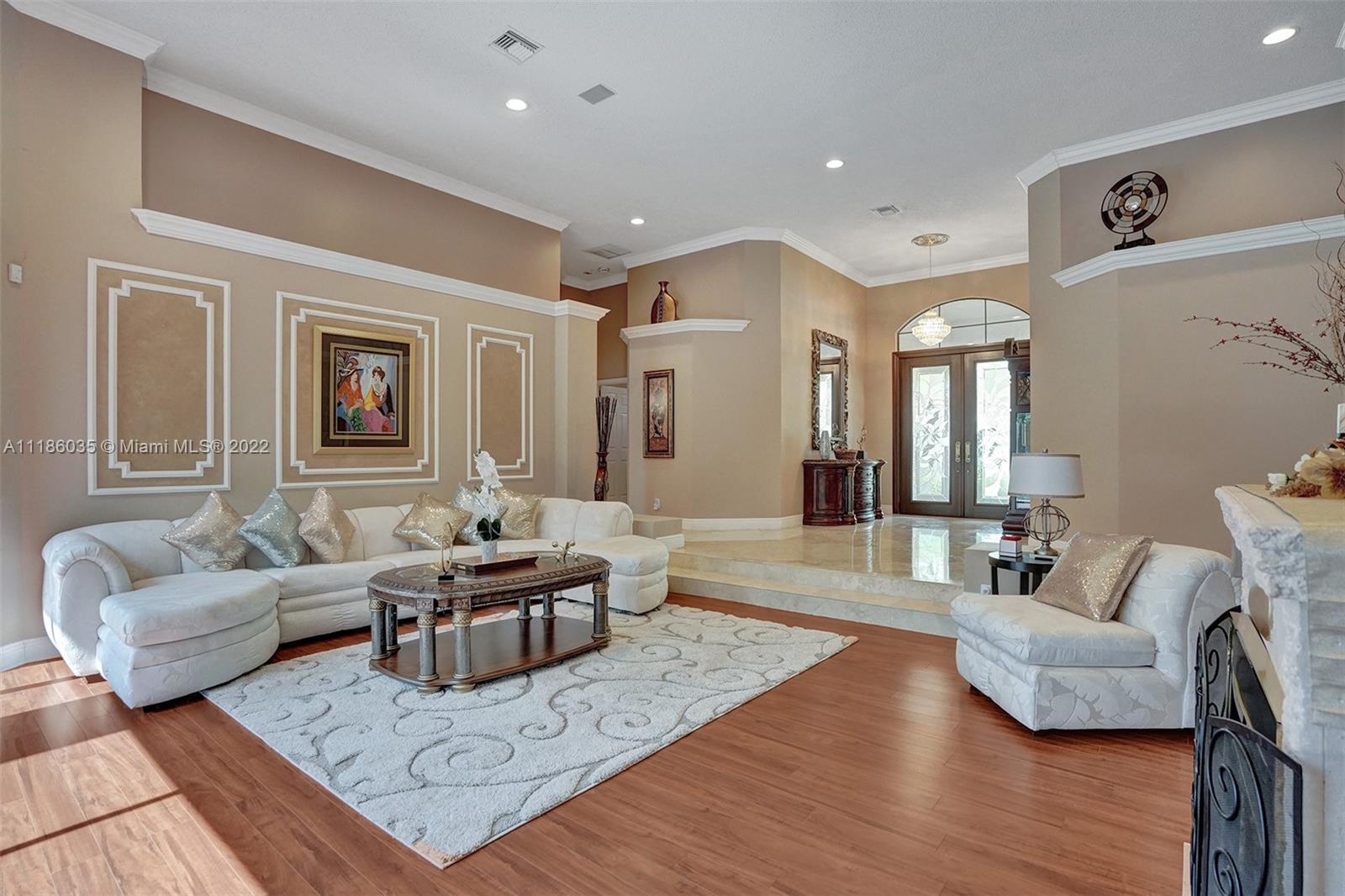 Turnkey home in the gated community of Palm Island. This home features 5 Bedrooms with 4 Full Bathrooms and 2 Half Baths. Great curb appeal sitting on an oversized 14,682 Square Foot lot on a Royal Palm Tree-lined street. Soaring ceilings in Living Areas. Marble floors flow through Living Areas with an elegant step-down Living Room. Gourmet kitchen with Granite countertops, Stainless Steel appliances, wall Oven, and two Pantries. Large owners Suite with Walk-In Closets and en-Suite Bathroom with Dual sinks and large Jacuzzi Tub and standing Shower. Privacy is hedged with lush mature landscaping surrounding the property encompassing the screened Pool Area and a Pergola Deck. True pride in ownership.