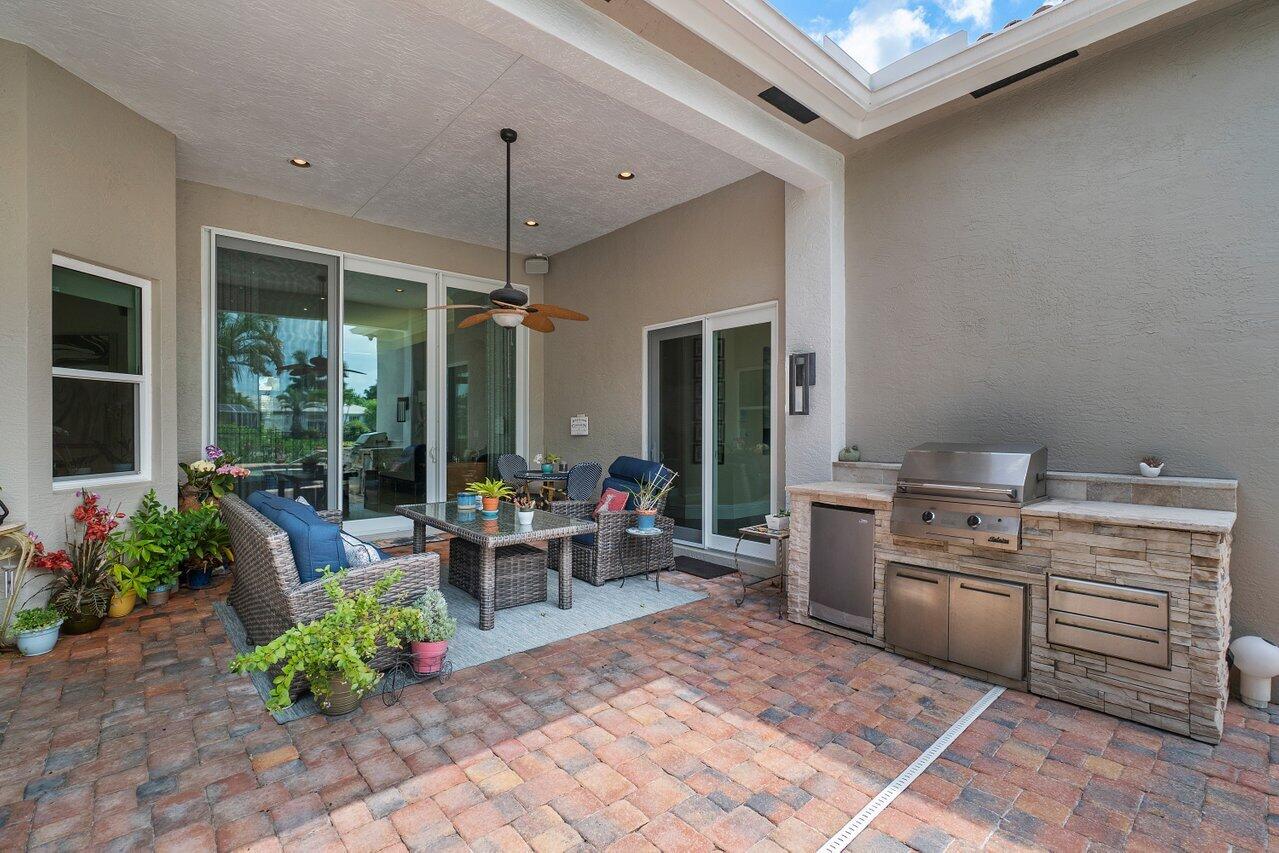 Stunning single family home at The Shores! No expense spared, upgrades galore! True pride in ownership at this one story, 4 bedroom, 3 bath home just under 3000 square feet. *4th bedroom is currently an office* Enjoy amazing sunsets from the tropical backyard with heated salt water pool, covered patio & outdoor kitchen. Impact glass windows and doors throughout. A 'smart' home where you can truly do it all from your phone (AC's, front door lock, garage, lights, speakers) complete with outdoor cameras, whole house sound system indoor & outdoor via Sonos/Control 4. A modern kitchen boasts Jenn-Air induction cooktop, double ovens w/ warming drawer. Additional upgrades include: custom built ins, wine fridge, crown molding, electronic blinds, aqua link pool system. Furniture is negotiable!