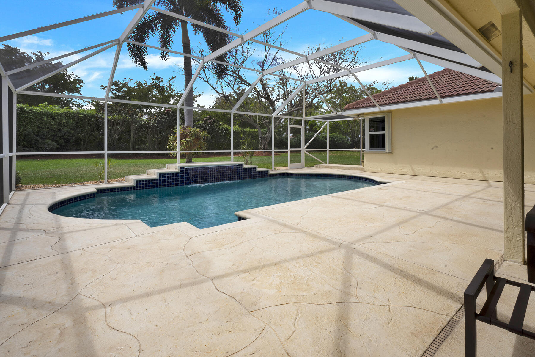 This home features 4 Bedrooms and 2 and a half bath with its own private salt water pool. The 4th bedroom can be a flex room. The whole house is equipped with Carbon Filtration Water System and Reverse Osmosis System, and very good storm protection with its impact windows , doors and shutters totally protected . With its fully remodeled Master Bedroom, Roof - 2017 and CCTV Camera throughout. Pool and Patio are has been totally redone with special lighting in the evening. huge corner lot It's also conveniently located by the schools and within the highly desired Boca Winds Community. This will not last!