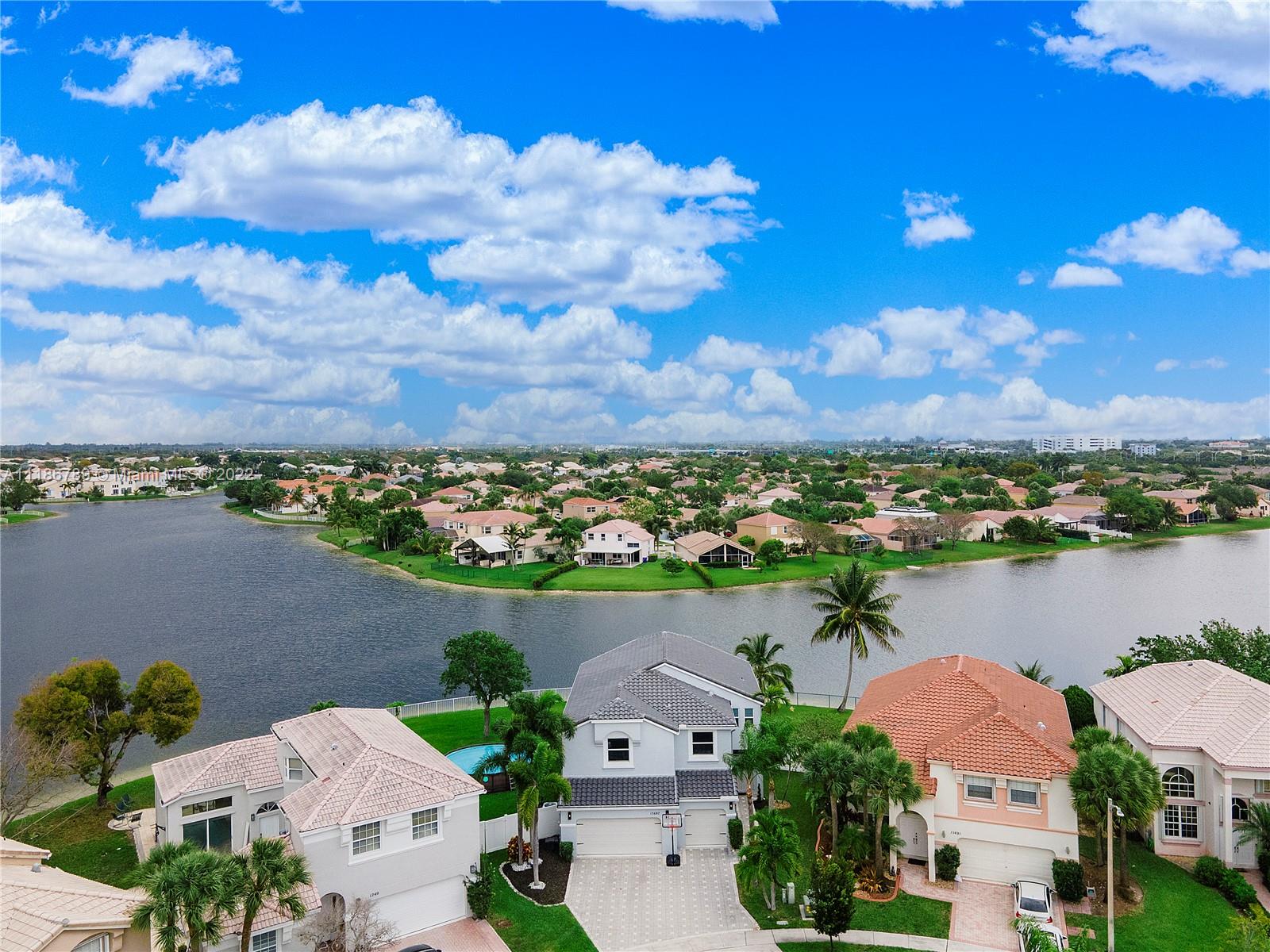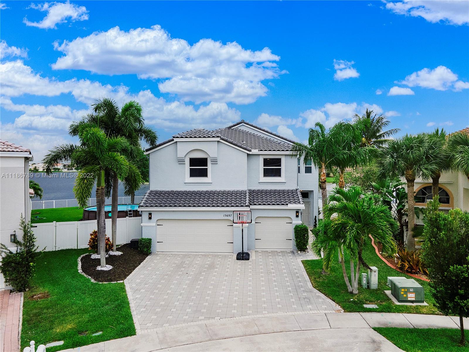 Spectacular move-in ready, two-story, 4 bed 3.5 bath home located in gated Towngate community. Filled with natural light, soaring ceilings, wonderful flow, equipped with stainless steel appliances and granite countertops. Open concept kitchen/living area leading into a dream backyard. Situated on oversized lot with panoramic water views of the lake, including a fully fenced backyard with a large screened-in patio and huge green area to build a pool. Beautifully upgraded with brand-new roof and gutters, new impact glass windows and sliding doors, a water filtration system, new sprinkler system, and updated A/C units. Three-car garage, large driveway, recently painted exterior, and new landscaping, this home has great curb appeal. A must see!
