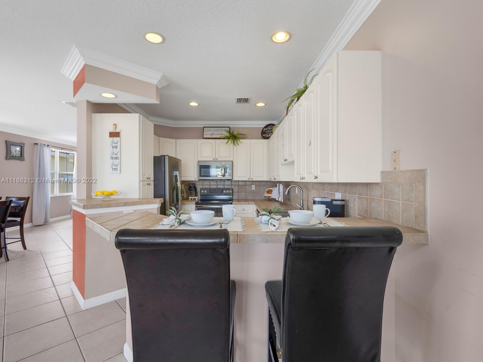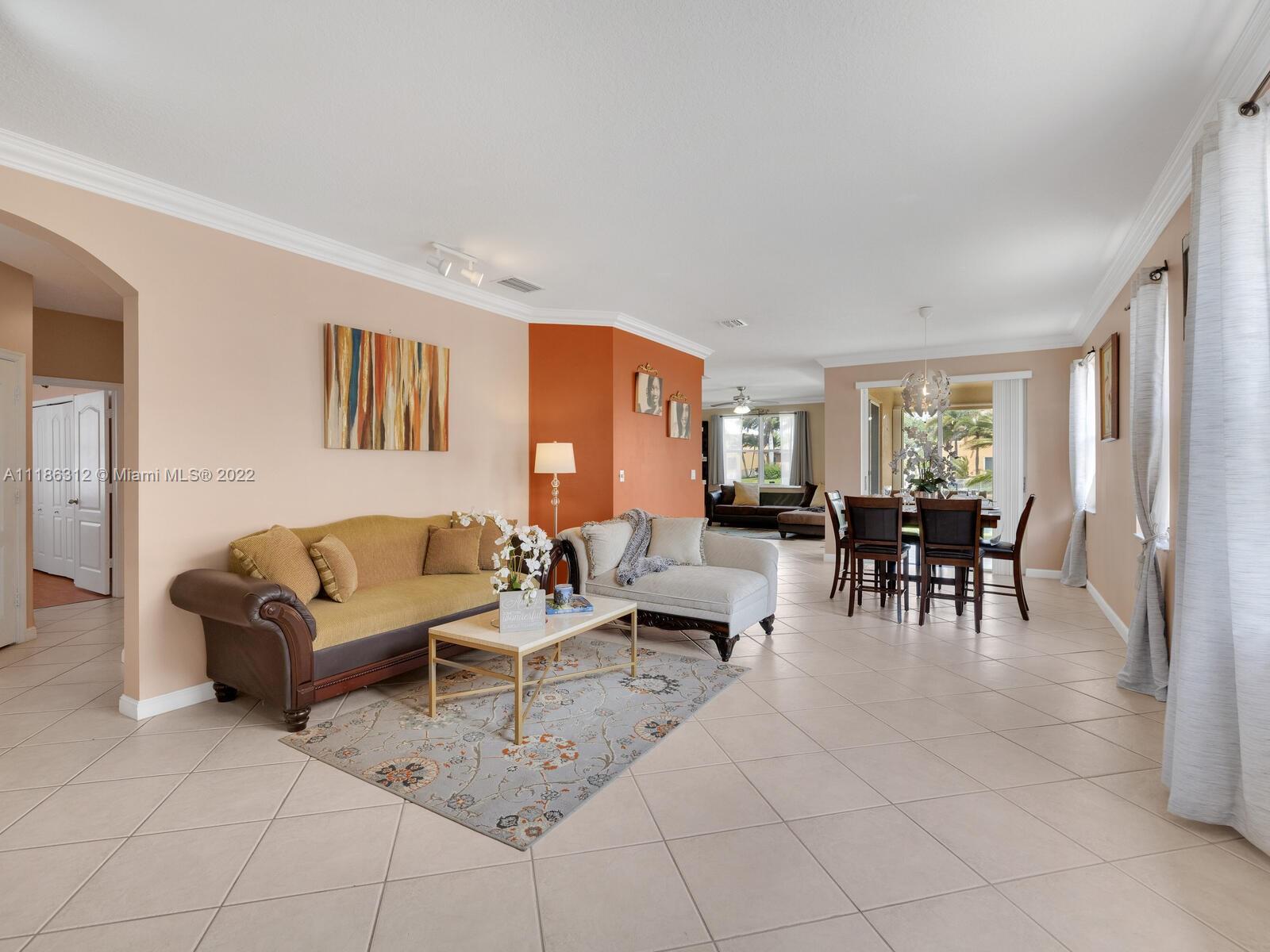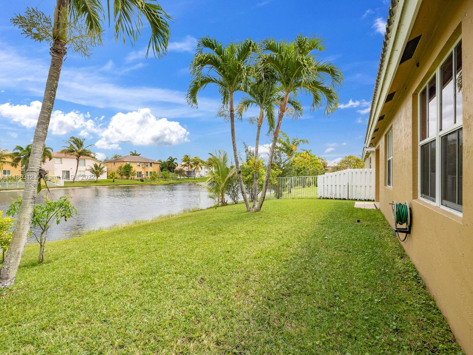 Spacious & comfortable lake front home! It’s breathtaking from the minute you drive up!! Bright & airy, it whispers “summer” all year round. Step into this immaculate home & you are greeted by volume ceiling and sand tone tiles throughout. Spacious formal living/dining area. Step outside to a covered patio overlooking the beautiful view. Patio can be enclosed with accordion shutters when needed. This home also boasts newly upgraded master bathroom! Large walk-in closet in the master bedroom, laminate flooring in all the bedrooms, an oversized kitchen & separate laundry room. The home is located steps away from the community pool, tot-lot and guest parking. Centrally located in West Miramar close to shopping, restaurants, & highways.