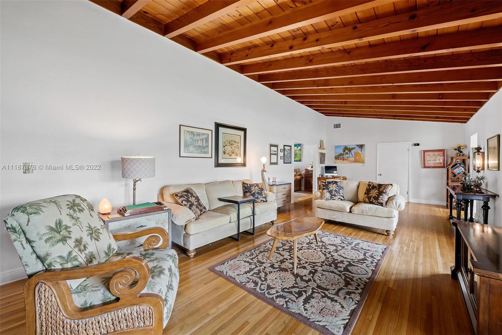 Remarkable property that is truly unique to the Hollywood Hills area! This home sits on a 12,000+ SqFt lot that is rare to find on the market. When you arrive you are greeted by a beautiful brick exterior, and when you step inside you are welcomed by an absolutely stunning vaulted exposed Dade County Pine ceiling. This 3 bedroom 3 bathroom house comes equipped with nearly all impact windows and doors, a large beautifully updated kitchen, updated bathrooms, large living spaces, a cabana bathroom, 2 car garage, and utility room. Prime location on a beautiful and quiet street. The house is proximate to the beach, the airport, places of worship, I-95, the turnpike, the Hardrock and in between Miami and Ft Lauderdale. Showings on Thursday, April 28th starting at 10:30am, please use show assist.