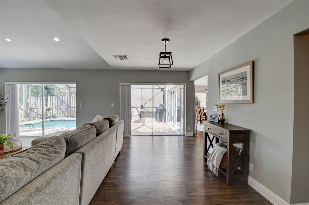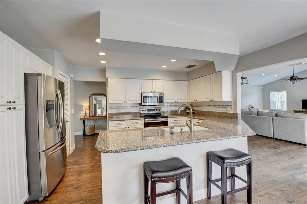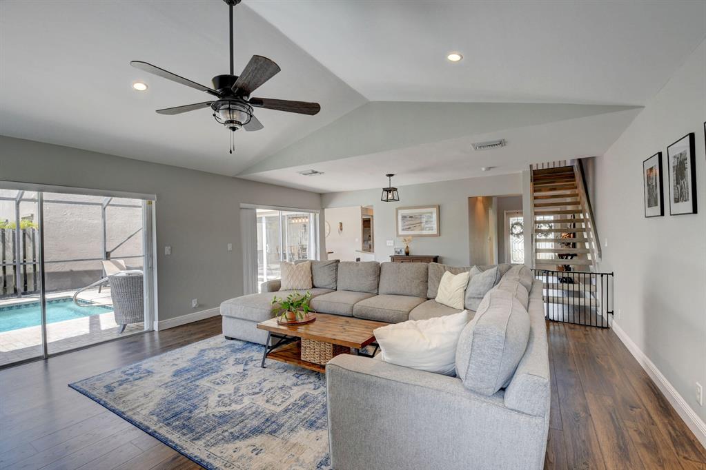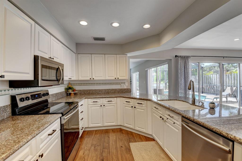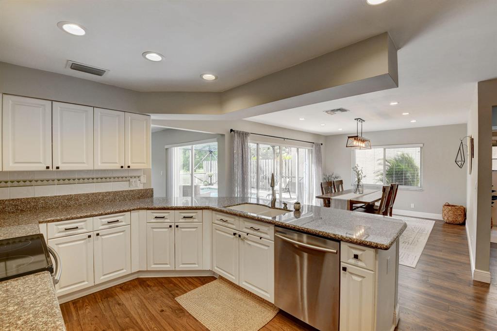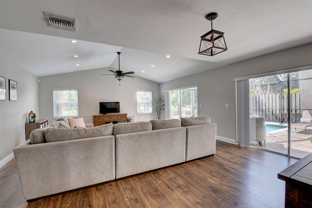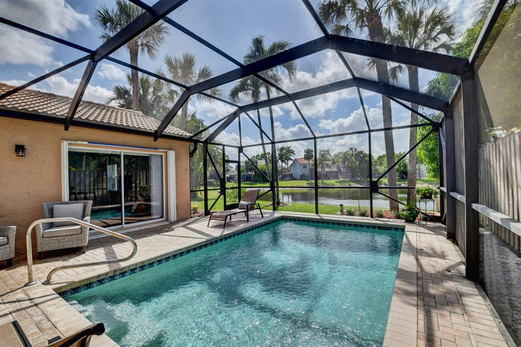 Live life more luxuriously in this fabulous renovated home with private pool located in the desirable Boca Chase community. Enjoy sunset views from the lakeside screened lanai with heated pool and sundeck. Design details include cathedral ceilings, new flooring throughout plus newer (2019) 2-zone AC, newer (2008) roof, accordion shutters plus impact doors and windows for added storm protection. Eat-in kitchen features granite counters, stainless steel appliances, and large seated peninsula bar. Spectacular owner's suite includes newly renovated en suite bath with dual vanities, vessel tub, and large step-in shower with frameless glass door. Boca Chase amenities include basketball court, clubhouse with pool and tennis. Excellent location close to schools and local parks and recreation.