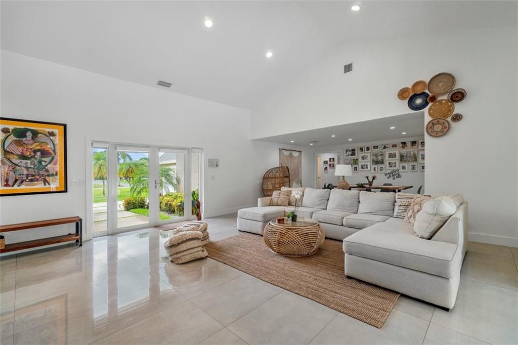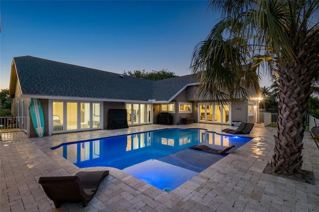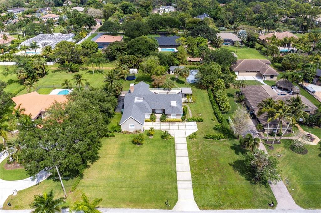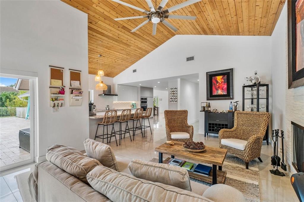The perfect pairing of chic contemporary finishes and impeccable natural materials resulted in a stunning home with a "sophisticated relaxed" vibe. The large Kitchen/Family room area will take your breath away and features soaring wood ceilings, sleek high gloss Euro-style cabinetry, quartz counters, top-shelf appliances, to ceiling tile backsplash, and a stack stone fireplace. The Primary suite is sublime and offers a spacious sitting area, serene views & a remodeled spa bath. The idyllic guest house is perfect for multi-generation households. The expansive backyard is serene and private with a pool with a sunning shelf, relaxing outdoor living/dining areas, a guesthouse, and a sprawling lawn. Recent Updates: Impact windows/doors, septic tank, a/cs & water heaters. 2019 ROOF!