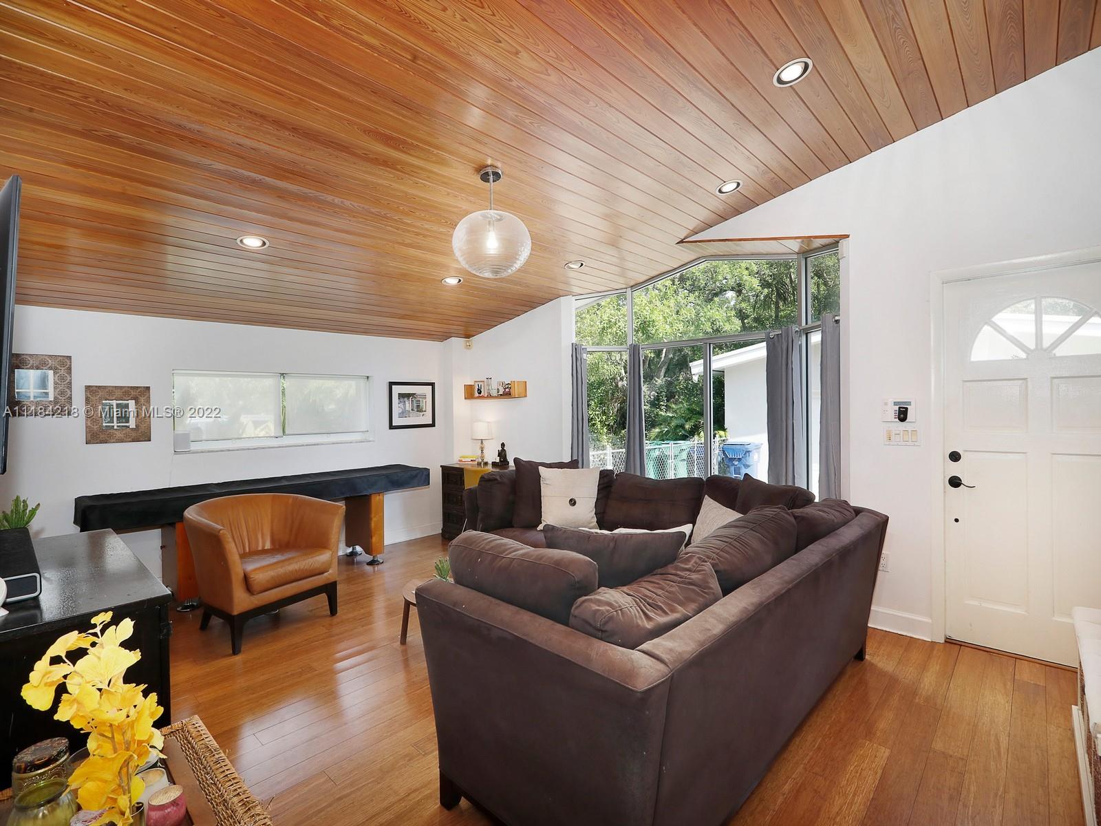 Located in the heart of Pinecrest on a large 37,026 sf tranquil and private lot, this warm & inviting home features vaulted ceilings, bamboo wood floors, fireplace and natural light. The living area boasts a large entertaining space with updated kitchen opening to the partially covered and screened outdoor patio complete with a beautiful saline system pool overlooking the lush surroundings. The master suite has two separate walk-in closets and updated bathroom and a separate family room provides flexibility for a home office. Additional amenities include a large free standing 2-car garage ideal for extra storage, boat or RV, laundry & utility room, security system, sprinkler system & half-house generator.