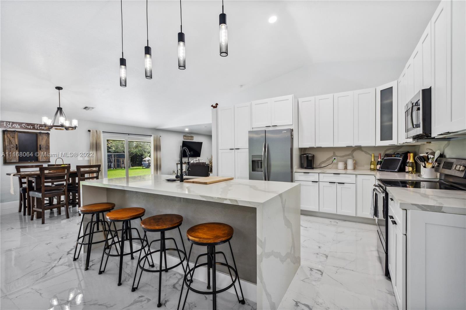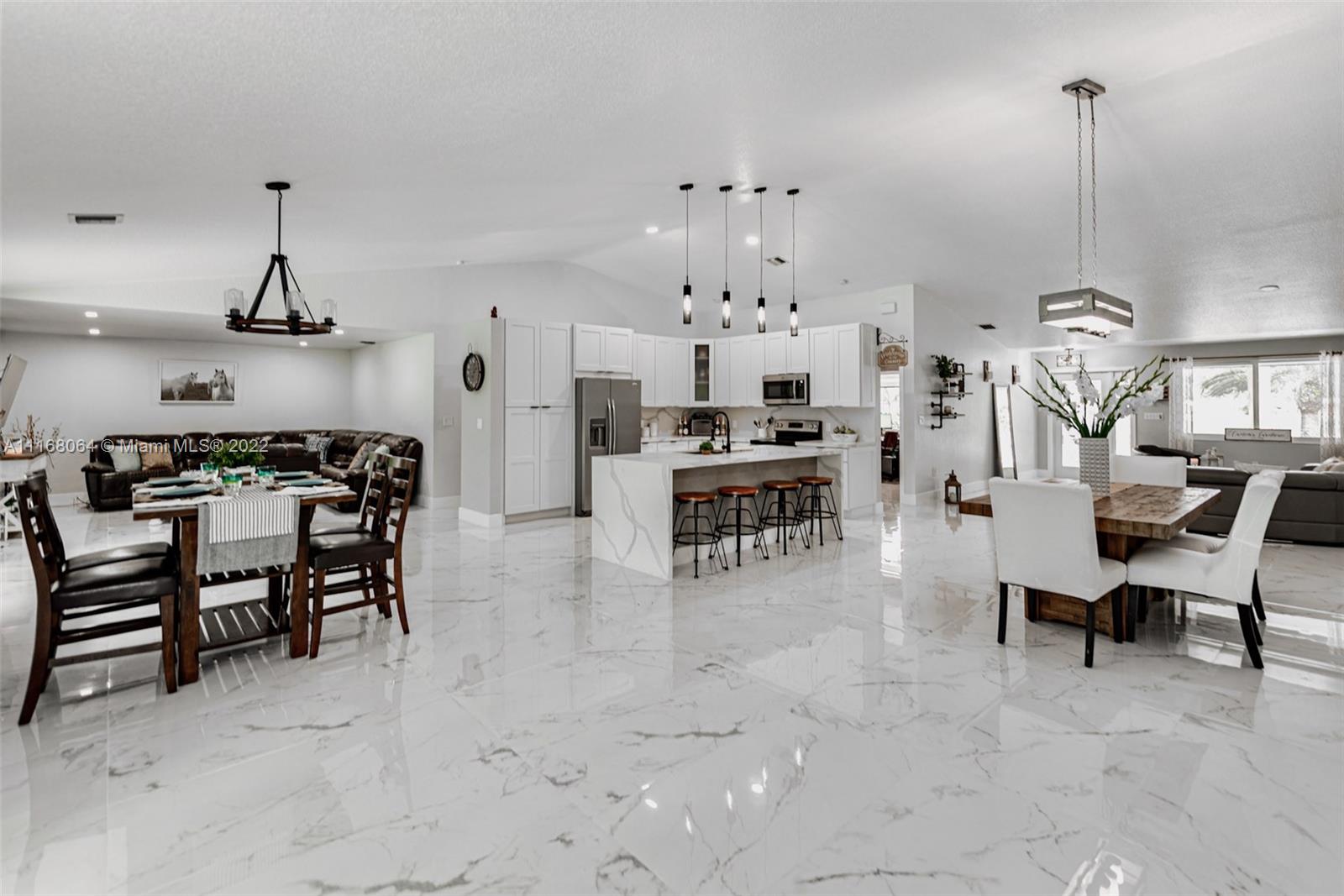 Nestled on almost 2.5 acres in prime Rolling Oaks, this home is a rustic dream. 2 buildings, 5964 sq ft combined. The 1st is a renovated, 1-story home rebuilt to the highest standards. The home provides a luxurious yet modern farmhouse feel. It boasts 4 bds/2.5 bath, 2' X 4' Calacatta Porcelain floors, 14' ceilings, a double waterfall Calacatta quartz island, new lighting, new cabinetry, new closets & a 53-panel solar system that powers both buildings. Never any light bills. The 2nd is a 2 story building that was built in 2012. It's big enough for a large RV, Boat, or big toys. Canadian Pines align the back of the property providing a picturesque backdrop and added privacy. Huge Majestic Palms & Oak trees are positioned throughout the estate. Come check out this true, "forever home".