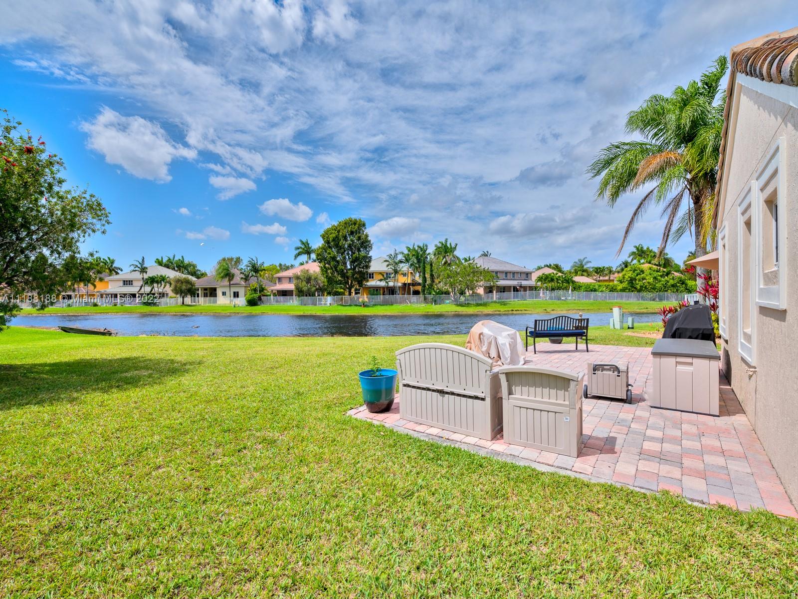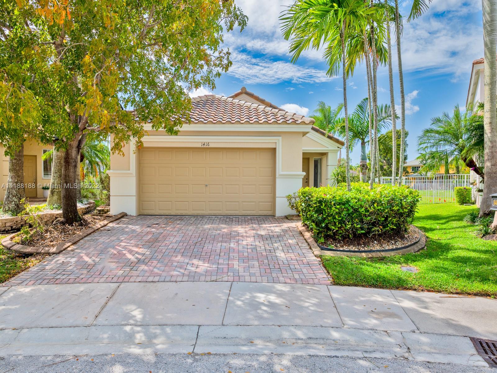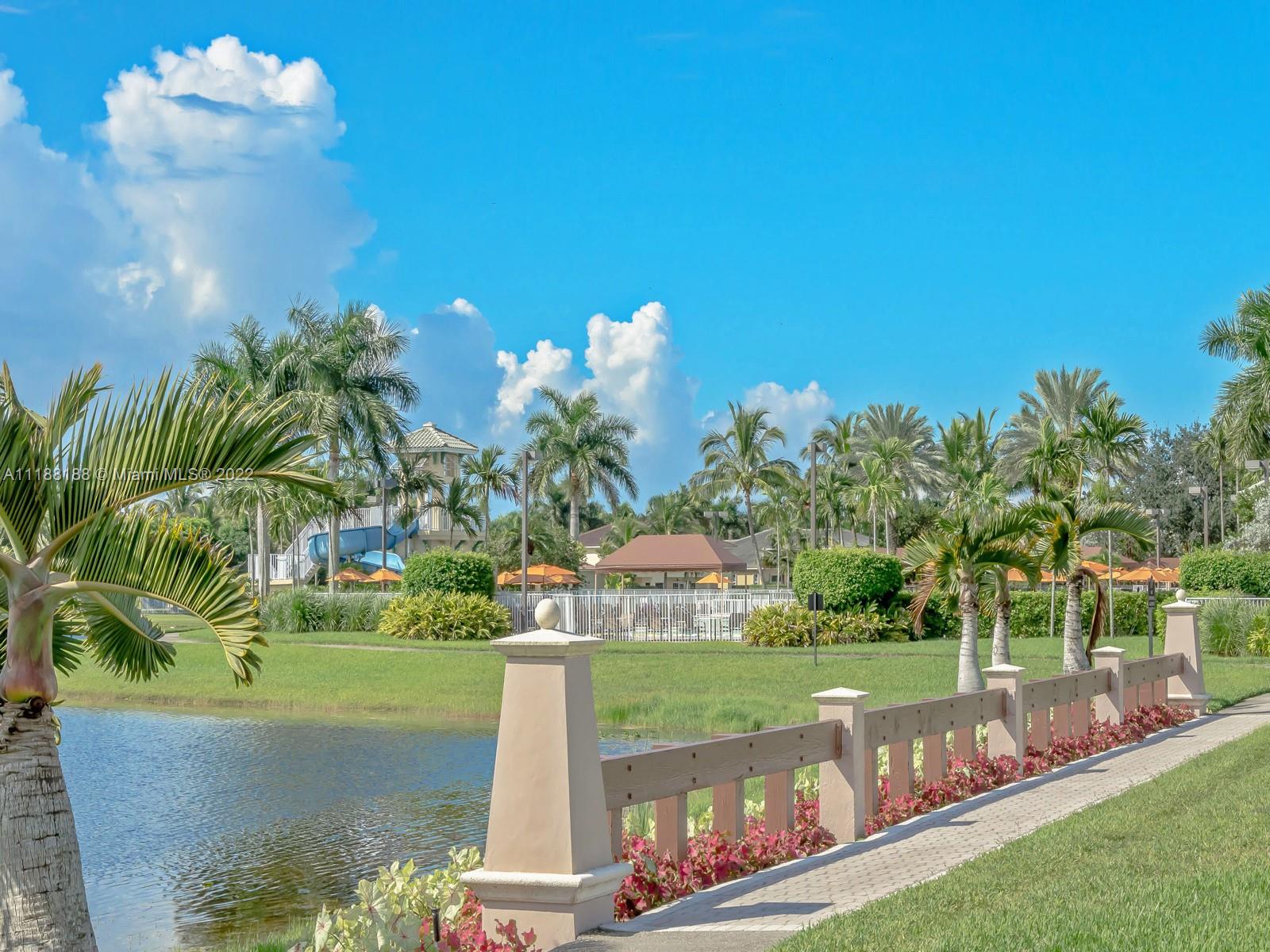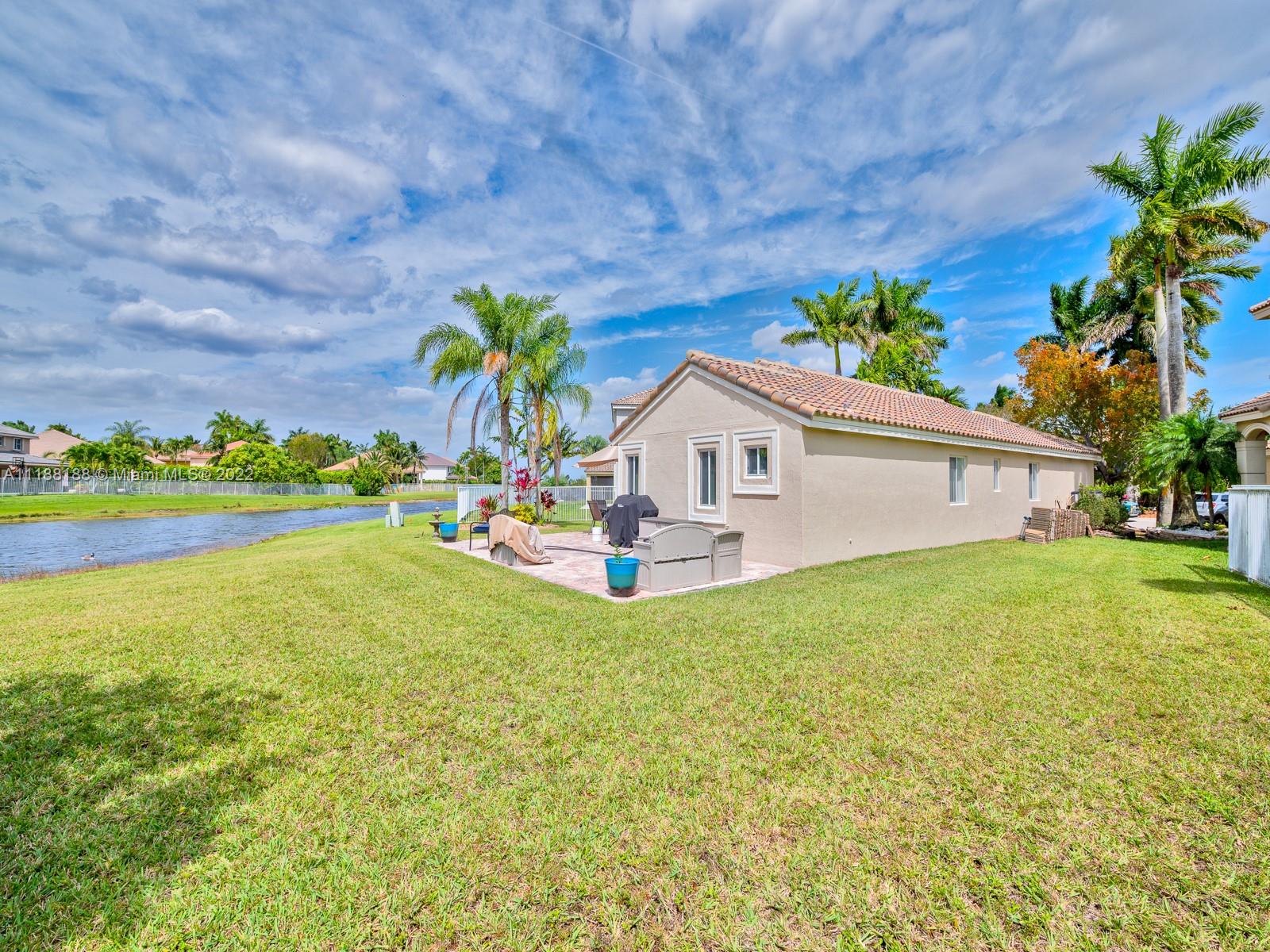 Welcome Home! Wonderful lakefront home overlooking a beautiful lake. Enjoy your morning coffee and a lovely sunset with this peaceful view. Here is your chance to own a 3 bedroom single family home with a tech 2 car garage with flooring and wall system. A lot of natural light with an open floor plan. A hardwire network computer system, 6-year-old AC (still under warranty), and 6-month-old roof (with warranty). This community has 2 gates, offering easy access. EXCELLENT SCHOOL DISTRICT (A+). The community is known for its amazing recreation: 3 pools, mini-golf, community clubhouse, basketball, tot lot, & more with low HOA! 24-hour guard and convenient location to highways and a short drive to Ft. Lauderdale airport and to the beach.
