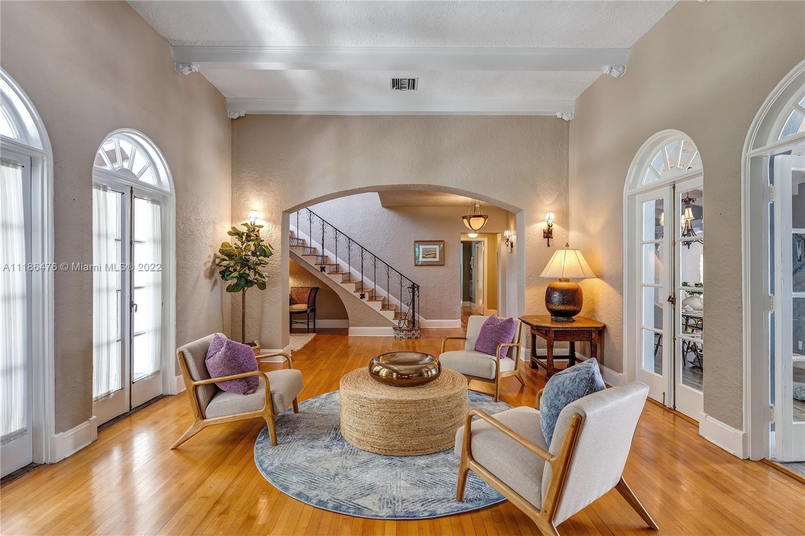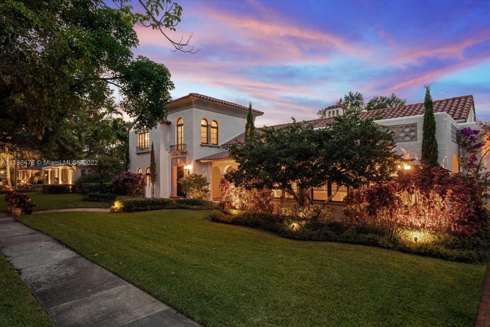 One of a Kind, Spectacular Mediterranean Estate situated on an expansive 19,200 SF corner parcel inclusive of towering oaks, a spacious main house+attached guest house. Main residence w/an impressive grand living/dining room, 6bds,5 full baths &2 halves. Custom details throughout such as the 14th pecky cypress ceiling, ironwork, French Doors & remote fireplace. Window-lined poolside loggia leads to renovated guest house w/separate kitchen, laundry, living/dining, office & 2nd master. Walled grounds w/cover terrace, porte-cochere, full impact glass, heated saltwater pool w/built-in infinity jacuzzi & full house generator. Includes plans for a detached 2 garage. A true masterpiece!!