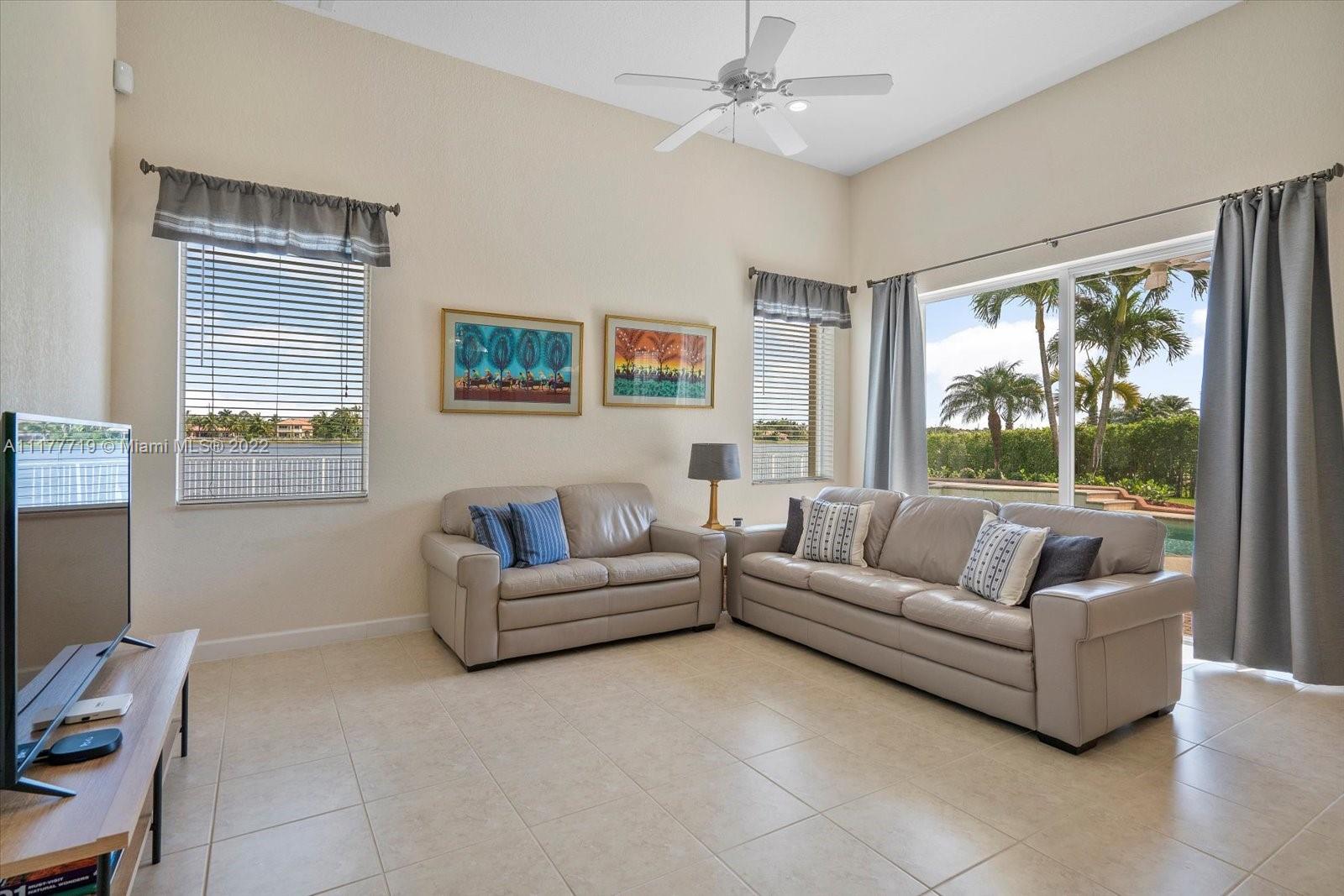 Your only opportunity to own a marvelous lakefront home! This home has been well taken care of and constantly maintained. The sprawling home located in the gated community of Highland Ranch Estates in Davie and offers a desirable open floor plan, high ceilings, and expansive lakefront views. The home includes 4 bedrooms and an office/den, 3 car garage with plenty of built-in storage. Master bedroom has a sitting area. Large master bathroom has separate tub and shower, hers & his toilet. Large, gourmet kitchen equipped with multifunctional cabinets, Corian countertop, double oven, kitchen island and other stainless appliances. Enjoy the stunning lake front view from your master suite, living room, and family room. Pool with Jacuzzi in the fenced private backyard overlooking 43 acres lake.