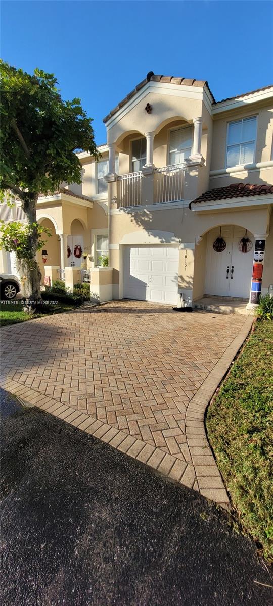 Two story corner unit in Gated community of Costa D'Oro. Tile floors downstairs and laminated wood flooring upstairs. High ceilings, High ceilings. Driveway with brick pavers. Covered rear terrace