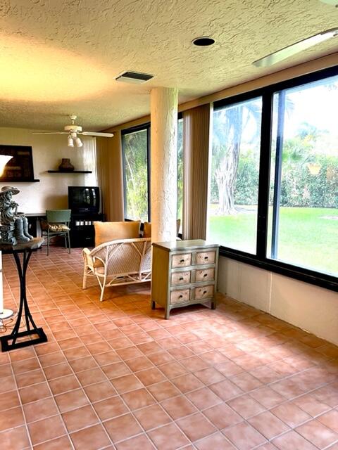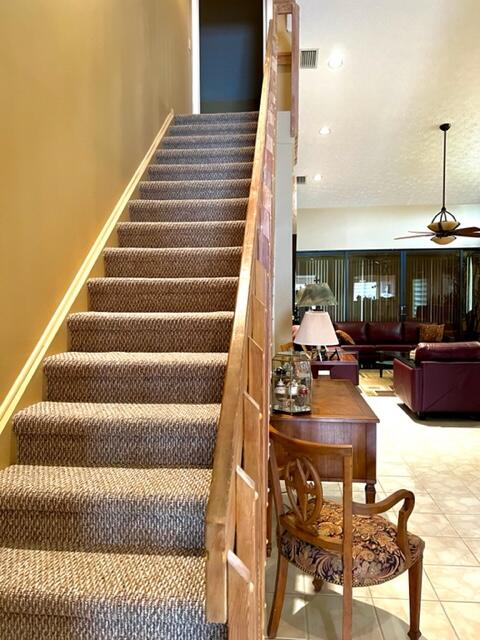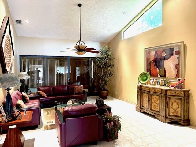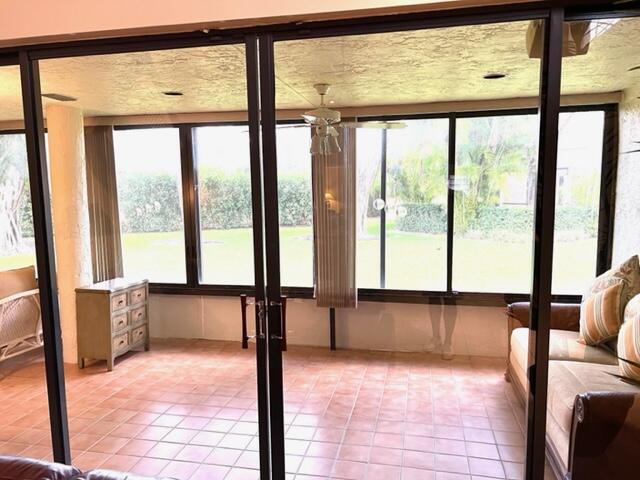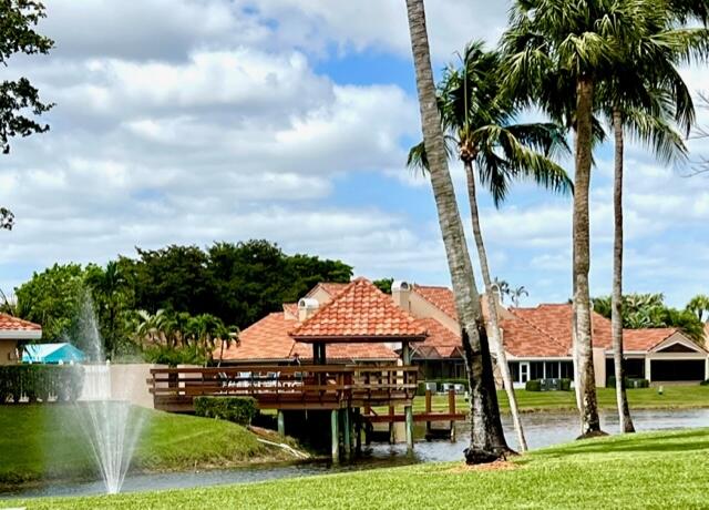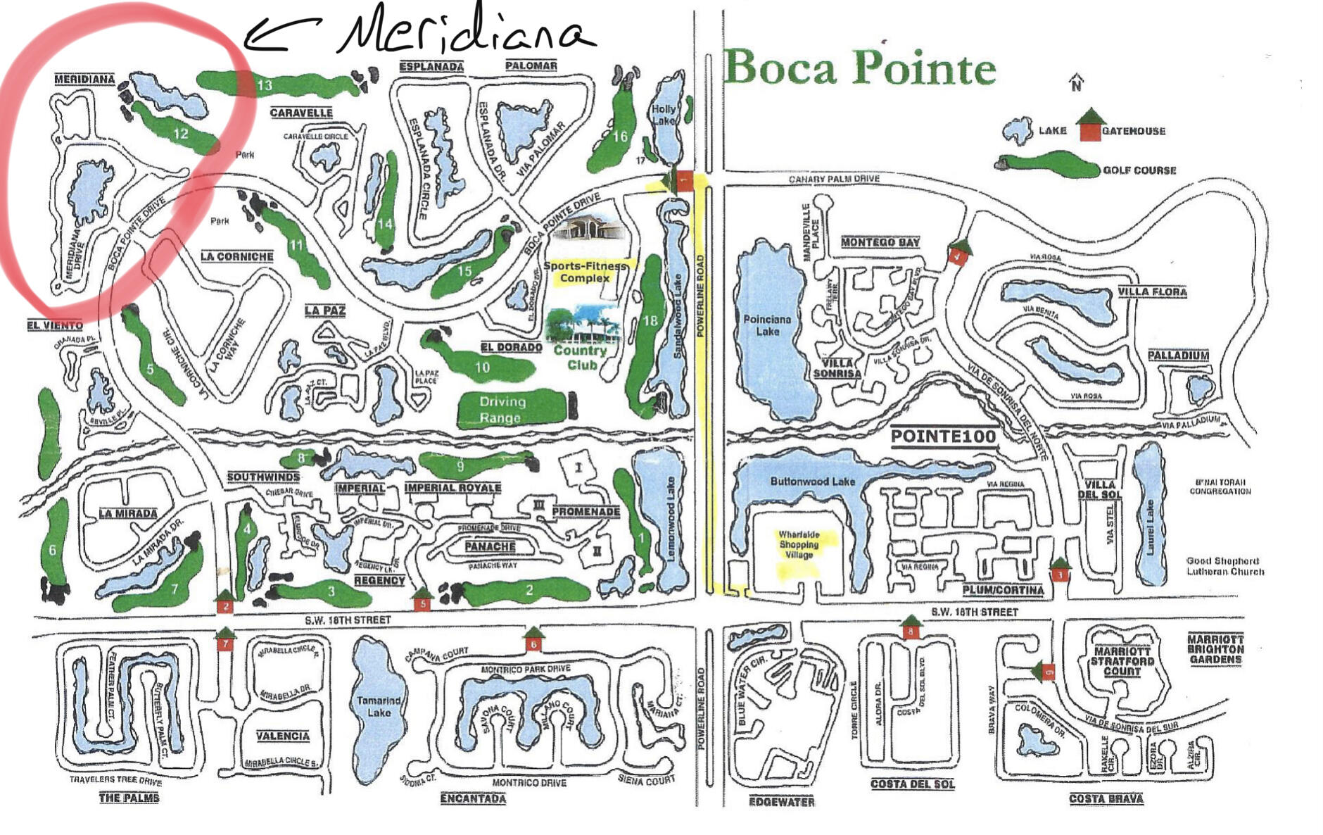 Offering a beautifully maintained spacious two bedroom, three full bath corner unit with a den and an air-conditioned finished patio in the Meridiana community at Boca Pointe. Master suite is located downstairs with a second bedroom upstairs both equipped with generous walk-in closets. Vaulted ceilings create a wide-opened feel in the great room with plenty of natural lighting throughout. Offered partially furnished. Boca Pointe is located just outside the city limits of Boca Raton, in southern most Palm Beach Co, FL. It includes the Club at Boca Pointe, Boardwalk at SW 18th Street, and over 4k residences within 29 diversified Villages. Optional memberships include the 18 hole championship golf course at The Club at Boca Point as well as social or tennis/fitness memberships.
