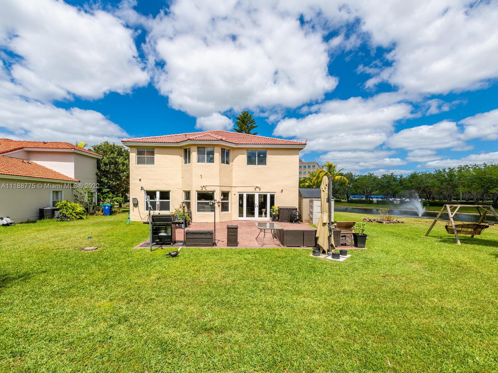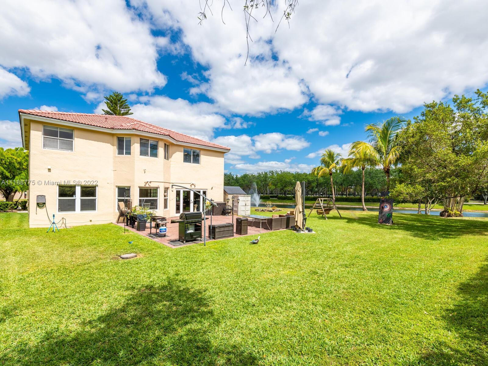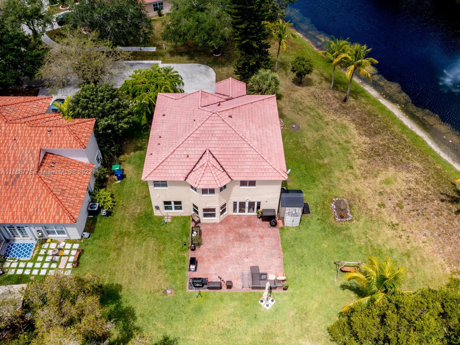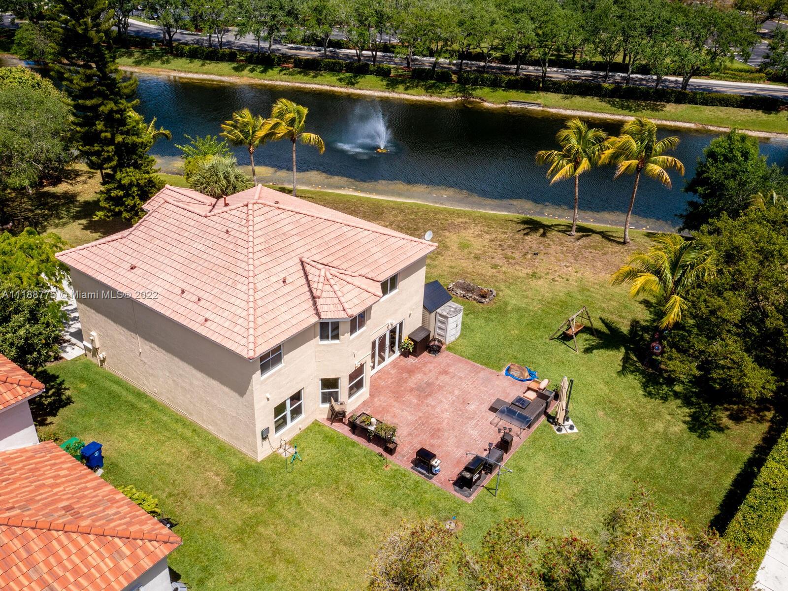 Impressive 2 story corner lot property with high volume ceilings located in pristine Huntington. Beautiful and spacious 5 bedrooms, 3 full bathrooms, and 2 car garage. Excellent floor plan offers you a formal living room at the entrance and a spacious family room. The kitchen has been remodeled with all white appliances, granite countertops, a spacious breakfast nook with large impact windows which lets in lots of natural light and a view of the beautiful back patio area, and a big center island. Exclusively covered brick paver back patio overlooking the lake. One of five bedrooms is located on the main floor and a full bathroom. Spacious laundry room also located on the first floor with washer and dryer. Master suite offers a walk-in closet and spacious walk-in shower and roman tub.