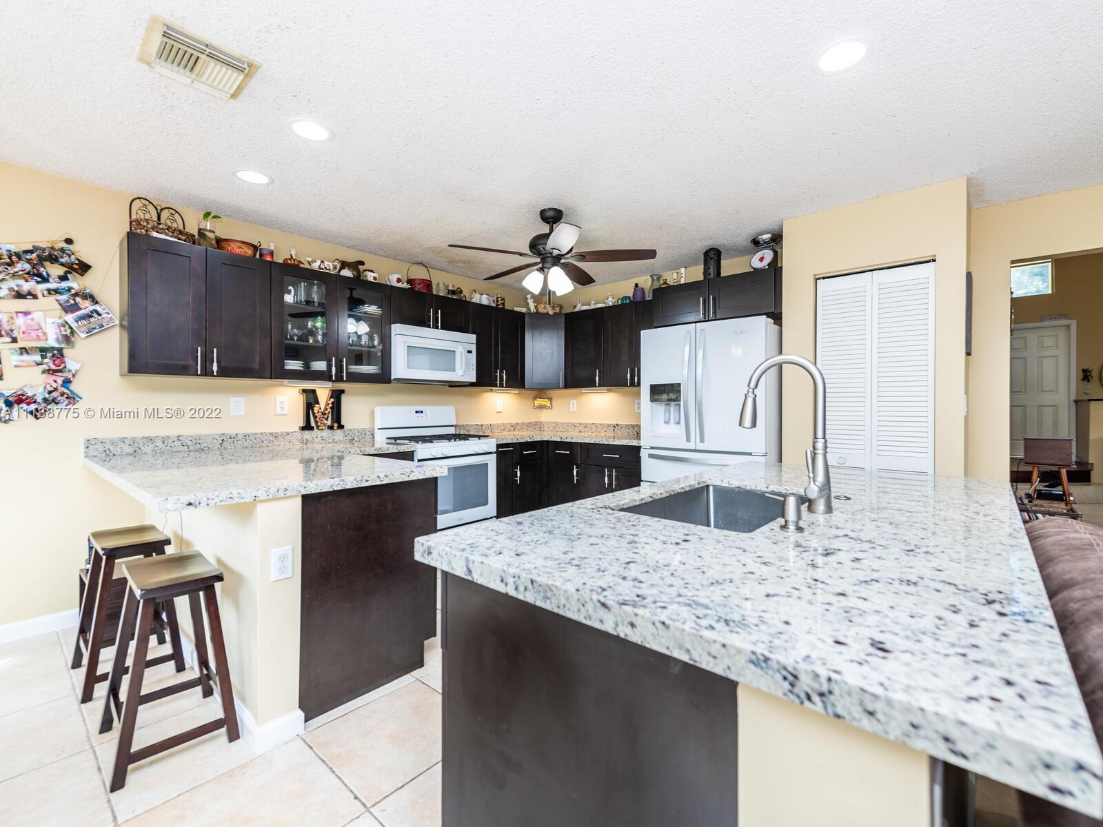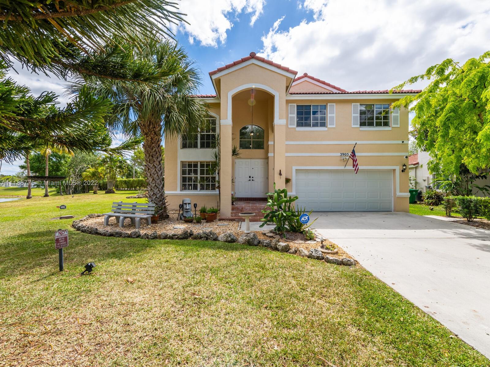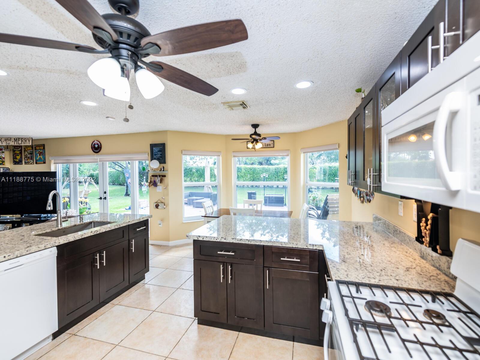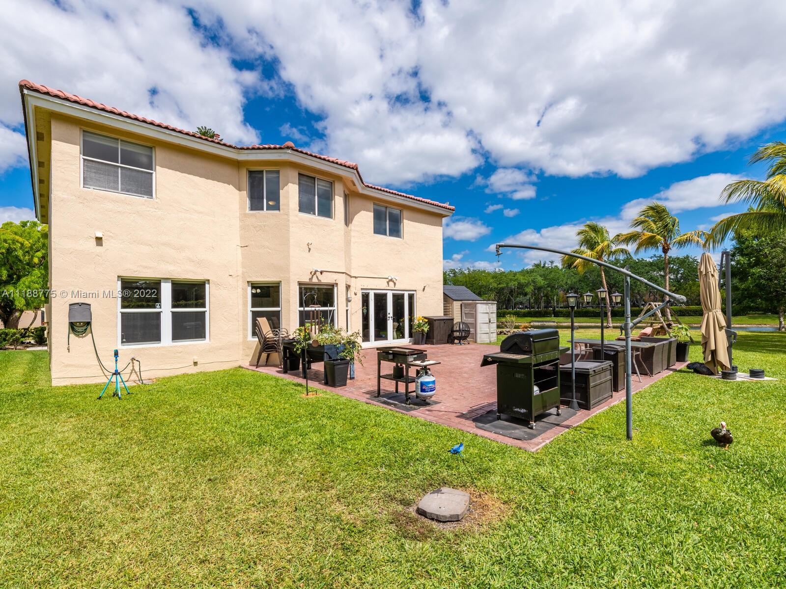 Impressive 2 story corner lot property with high volume ceilings located in pristine Huntington. Beautiful and spacious 5 bedrooms, 3 full bathrooms, and 2 car garage. Excellent floor plan offers you a formal living room at the entrance and a spacious family room. The kitchen has been remodeled with all white appliances, granite countertops, a spacious breakfast nook with large impact windows which lets in lots of natural light and a view of the beautiful back patio area, and a big center island. Exclusively covered brick paver back patio overlooking the lake. One of five bedrooms is located on the main floor and a full bathroom. Spacious laundry room also located on the first floor with washer and dryer. Master suite offers a walk-in closet and spacious walk-in shower and roman tub.
