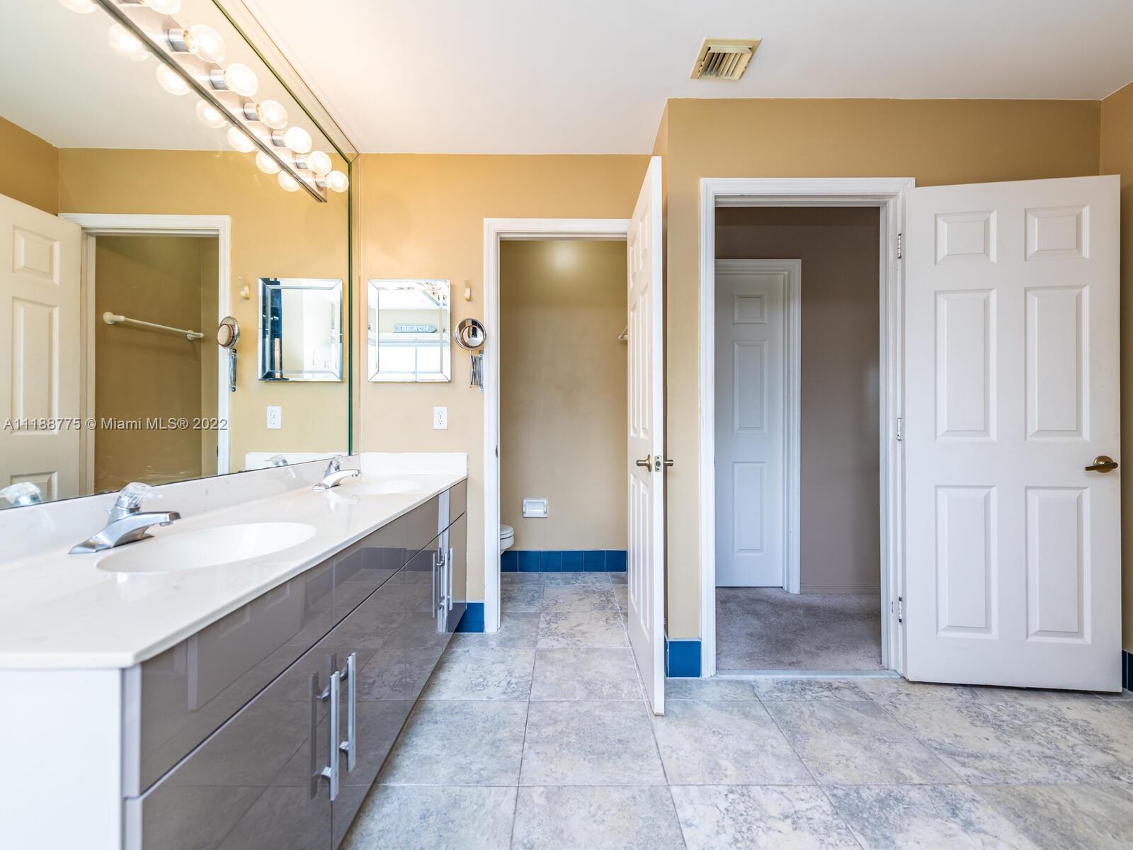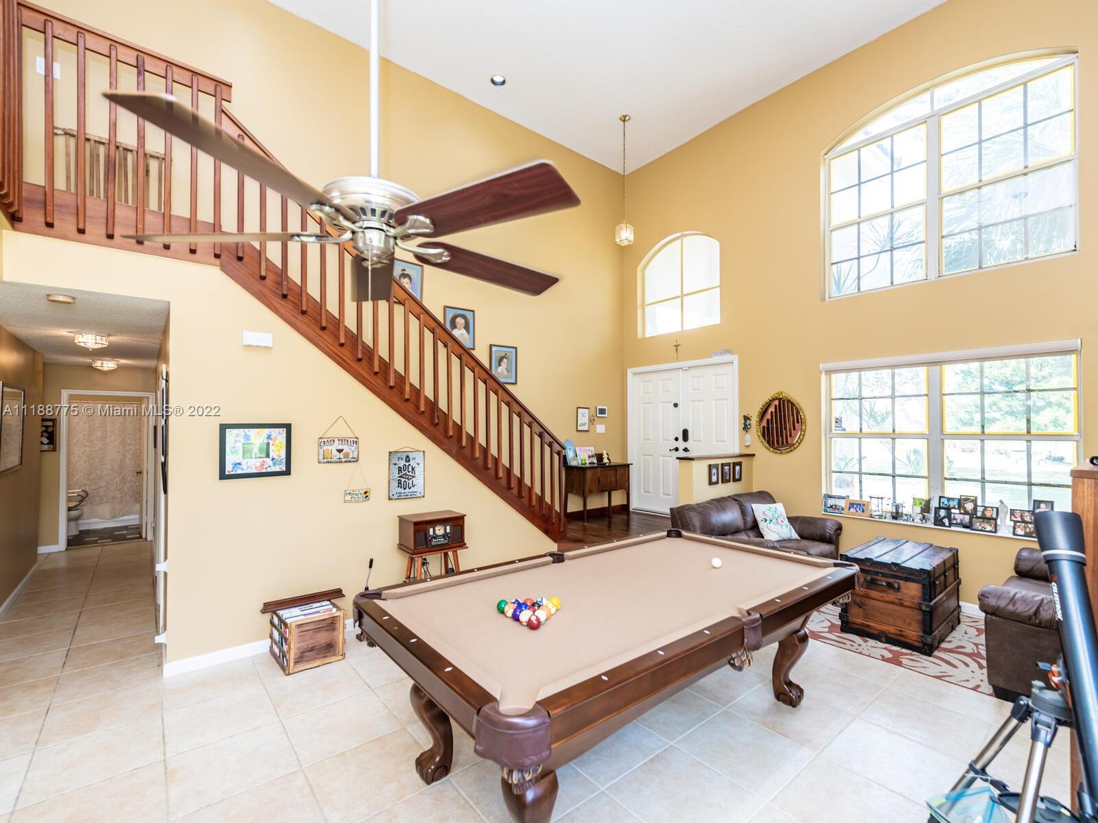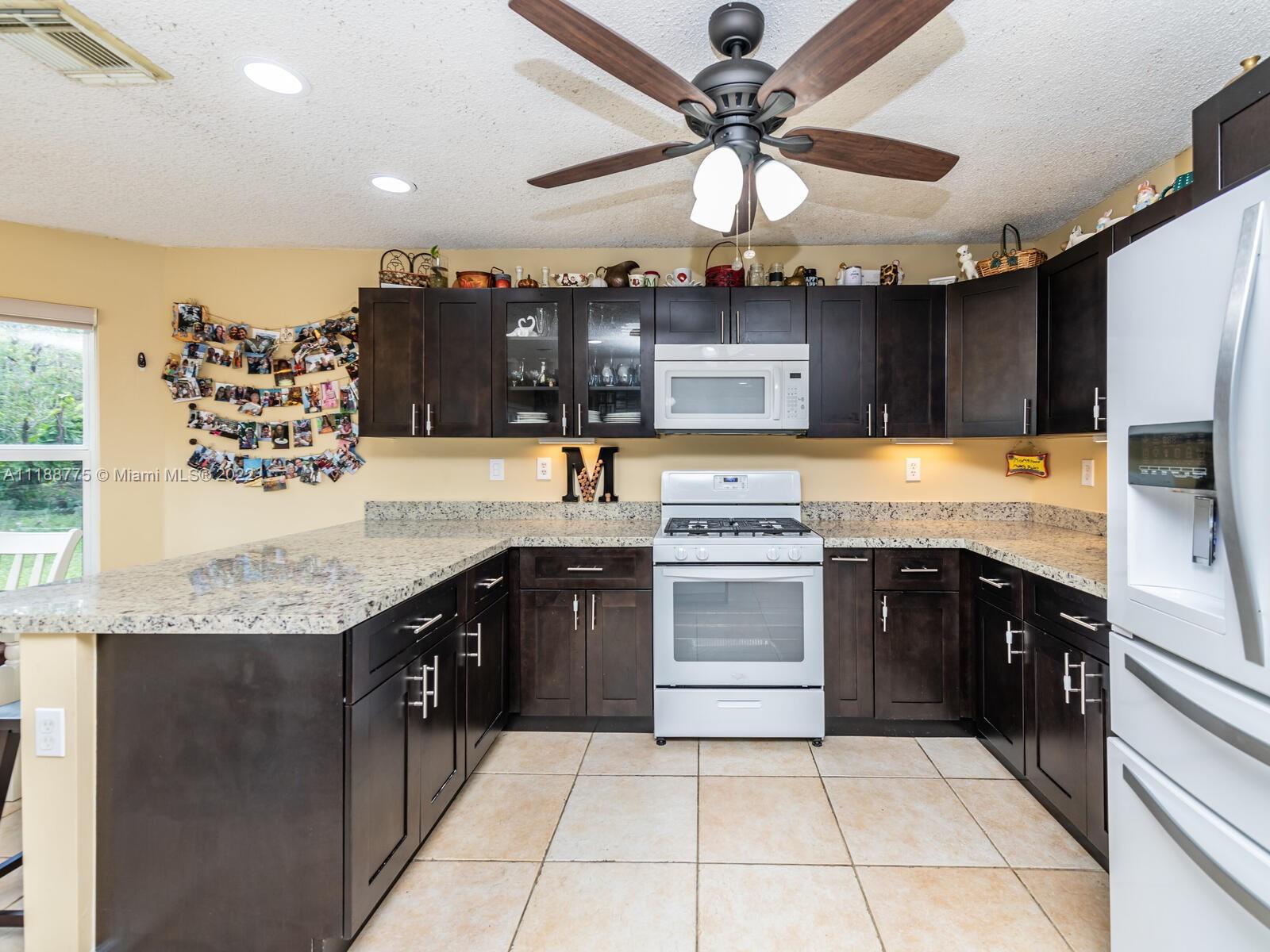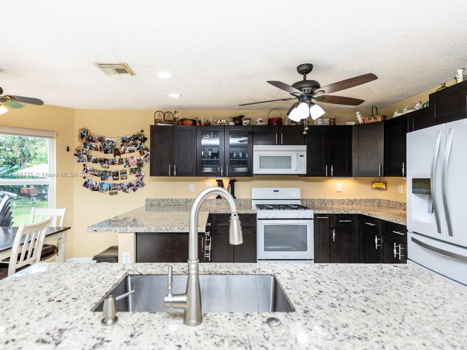 Impressive 2 story corner lot property with high volume ceilings located in pristine Huntington. Beautiful and spacious 5 bedrooms, 3 full bathrooms, and 2 car garage. Excellent floor plan offers you a formal living room at the entrance and a spacious family room. The kitchen has been remodeled with all white appliances, granite countertops, a spacious breakfast nook with large impact windows which lets in lots of natural light and a view of the beautiful back patio area, and a big center island. Exclusively covered brick paver back patio overlooking the lake. One of five bedrooms is located on the main floor and a full bathroom. Spacious laundry room also located on the first floor with washer and dryer. Master suite offers a walk-in closet and spacious walk-in shower and roman tub.