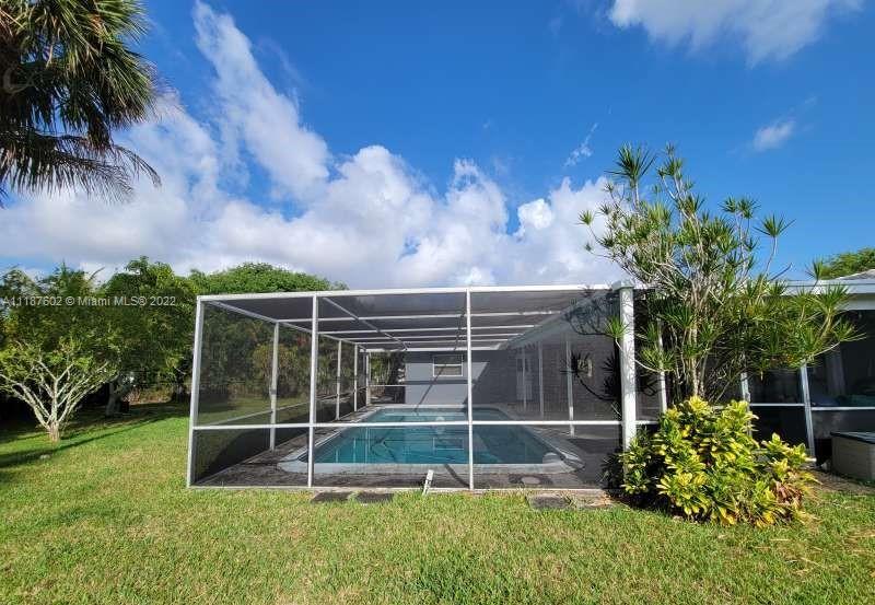 Beautiful house!!! Corner house located on a cul-de-sac with a large lot of 1/3 acre. Spacious, split, open floorplan. Impact windows and shutters for the entire house! Large master with his/her closets. Both bathrooms with dual sinks. 4 Bedroom, 2 bathrooms plus a den/office/5th bedroom; Large enclosed screened patio with a big pool. Well-established neighborhood, great neighbors, located near schools, shopping, and expressways.