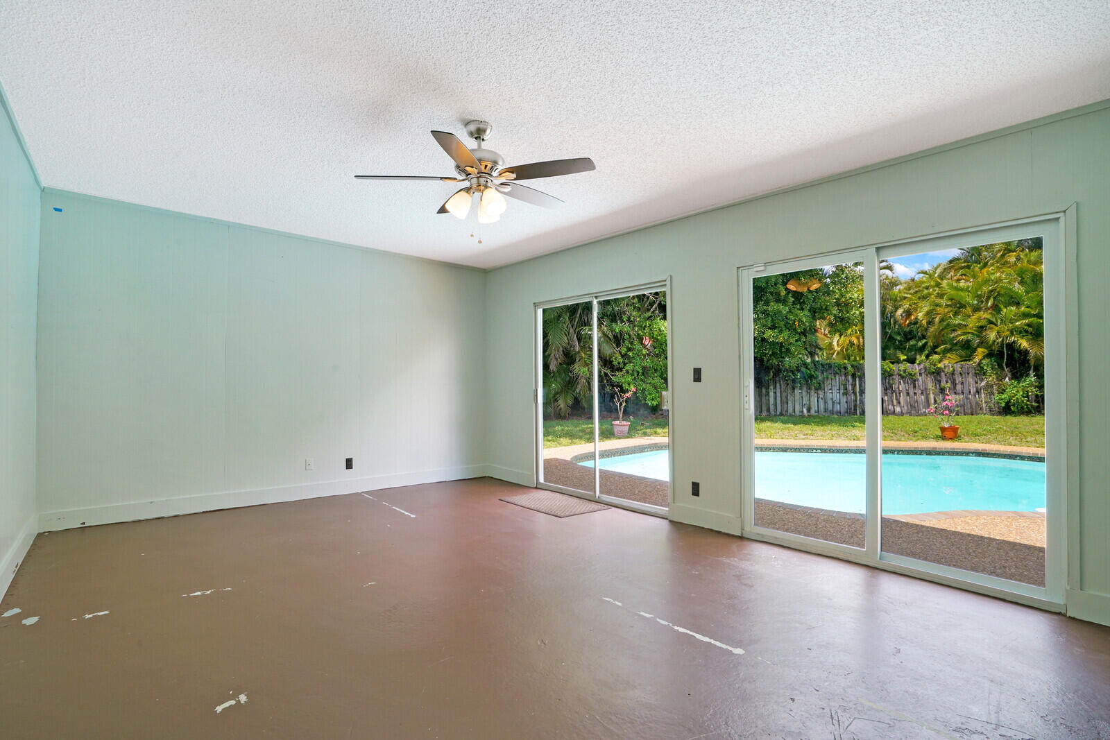 Welcome home! A beautiful four bedroom, two bath home on over 1/3 of an acre in non-HOA Chevy Chase community. You'll fall in love with the soaring ceilings and unparalleled natural light from the floor to ceiling windows in the spacious great room. Updated kitchen with island, granite countertops and glass subway tile backsplash. Split bedroom floor plan with nicely sized bedrooms and recently updated bathrooms. Large enclosed Florida room leads out to the free form swimming pool and private backyard with mature trees and rain collection system. Additional feature include impact windows and doors (except garage window, left sliding door in room leading to patio, and large front windows), newer (2020) AC, washing machine and water heater. Located near shopping, dining, parks and more!