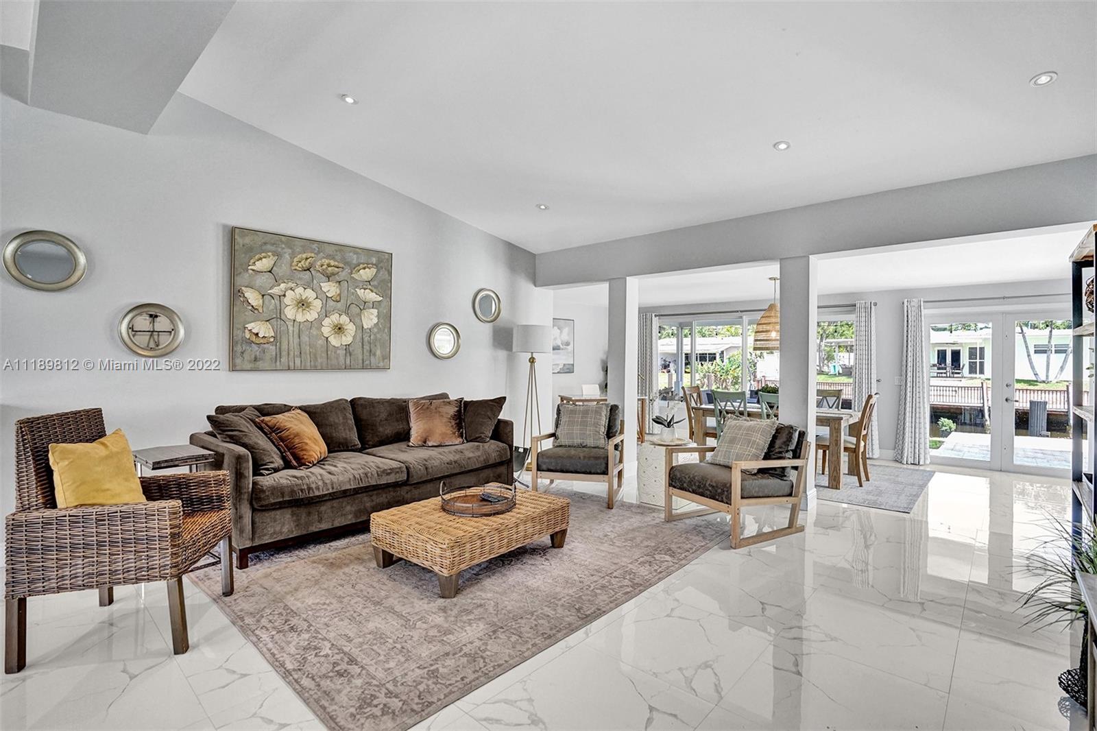 Live where everyone vacations! This stunning Lauderdale Isles home has been operated as a legal vacation rental since 2016 and has been meticulously maintained. Recently remodeled, the 4 bed/3 bath home boasts an open floor plan with vaulted ceilings and a seamless design that truly brings the outdoors in! The kitchen features white shaker cabinets, SS appliances and granite counters. The property is situated on 70 ft of water frontage with direct ocean access and no fixed bridges. Countless renovations in recent years include: new A/C (2019), new impact windows in (2019), new pool heater, salt water system and pool pump (2020), dishwasher and dryer (2020) and new gutters (2020). Multiple offers received - all offers due by April 19th at 6 pm.