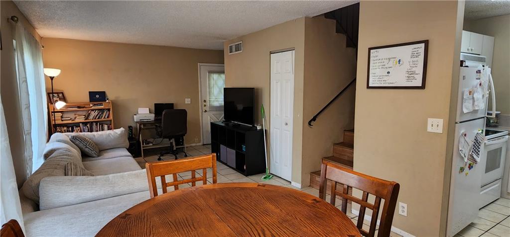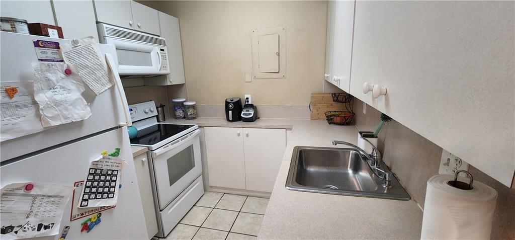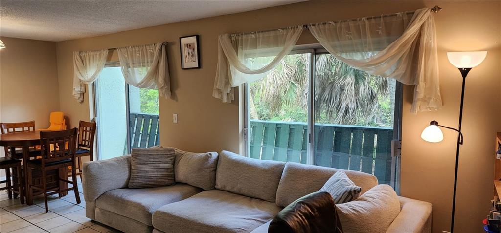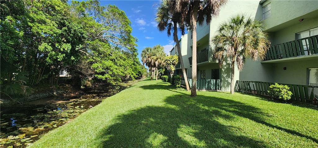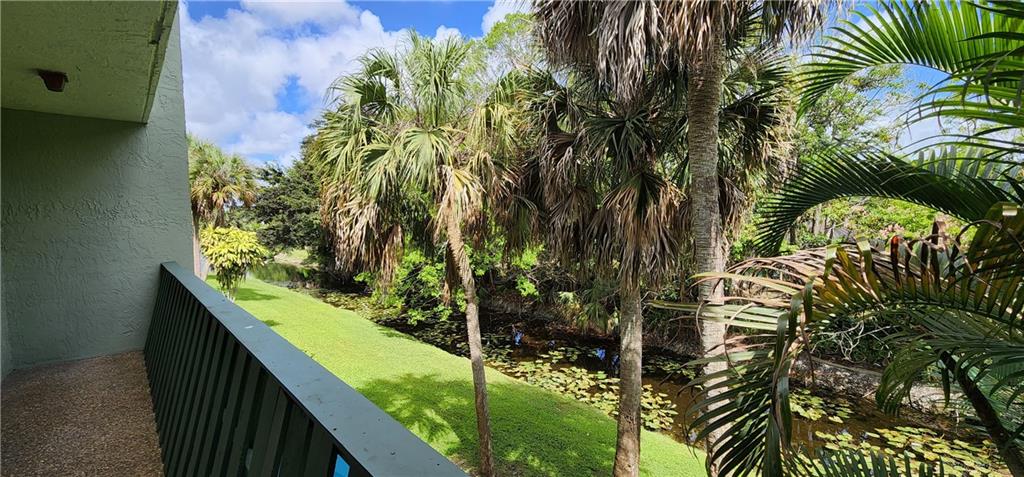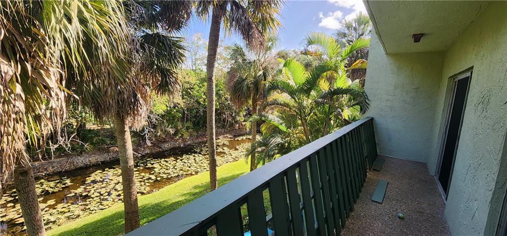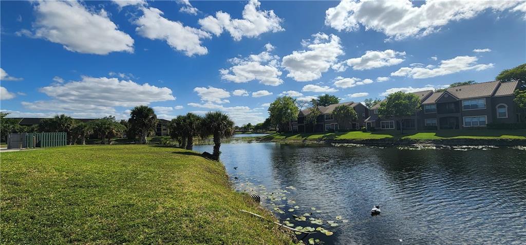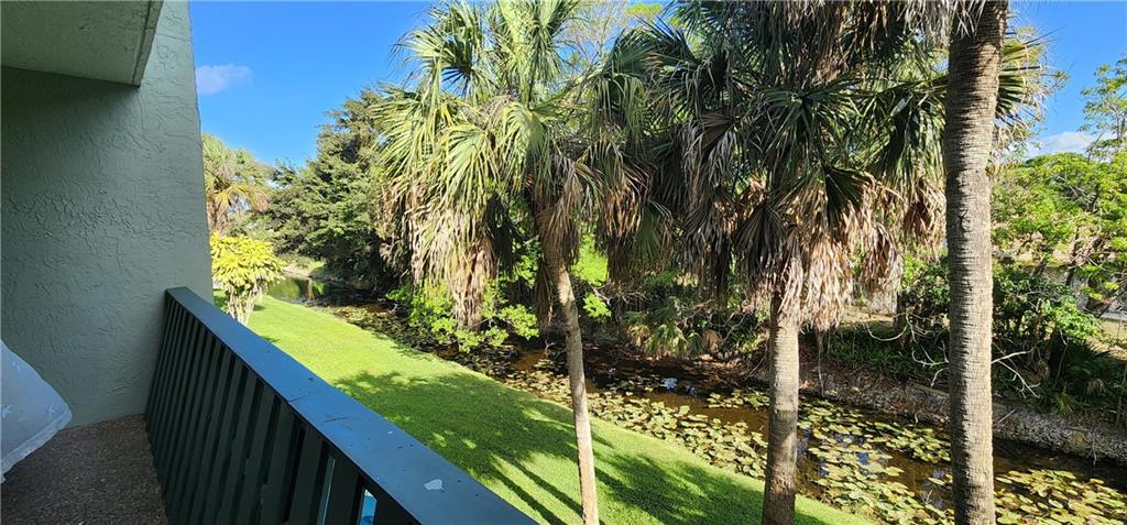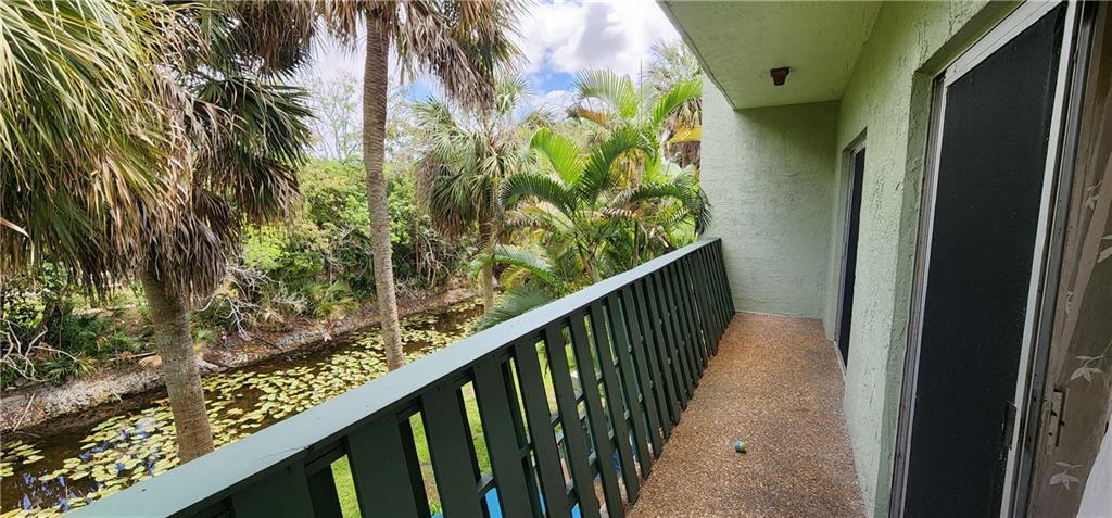 Great opportunity to own a 2/2.5 condo-townhome in the peaceful setting of Sun & Lake Community. Open space with a lake, canals and green space create a relaxed environment. This upper condo-townhome has a galley kitchen , living room with two 6 foot glass sliders that open unto a large balcony overlooking the canal and greenspace. A 1/2 bath and a large storage space under the stairs. Upstairs are two bedrooms both with their own full baths and a stack washer/dryer in the hall closet. The unit has tile floors throughout. This is a perfect starter home in a community with pool, tennis courts, clubhouse with lake views. This is also a pet friendly community.