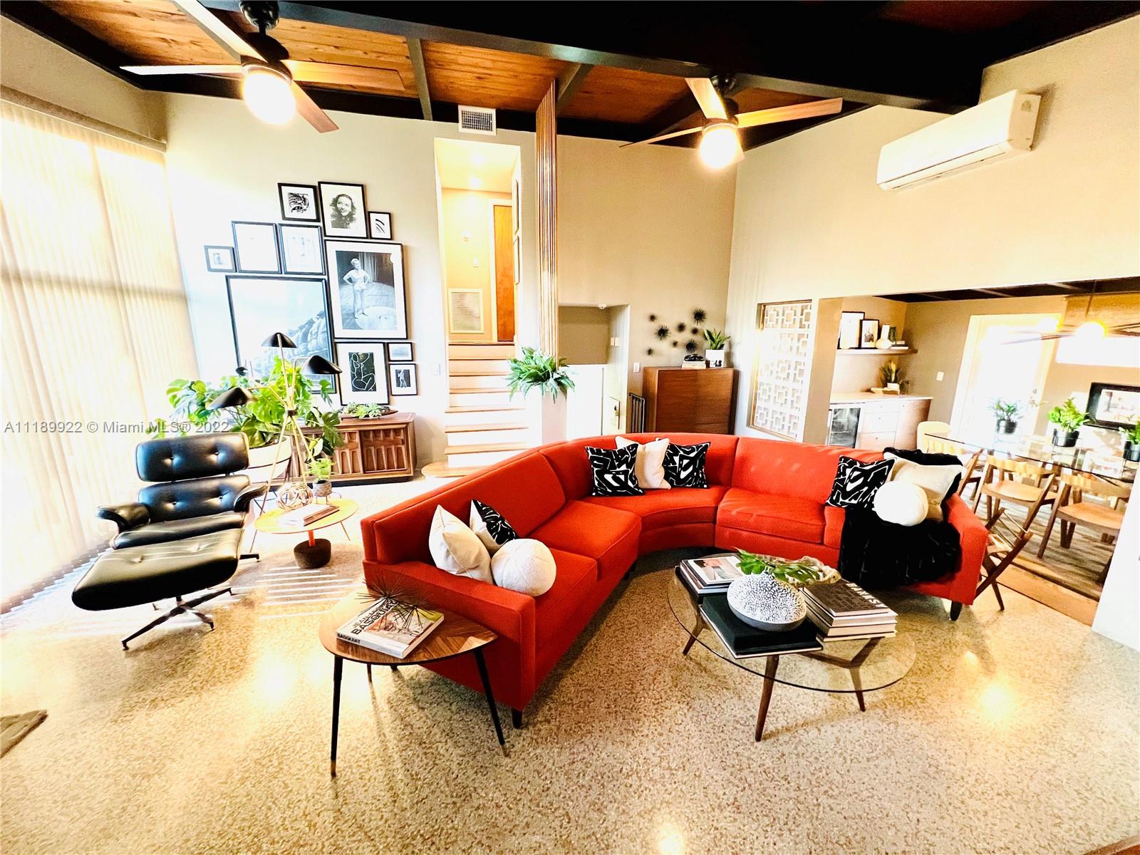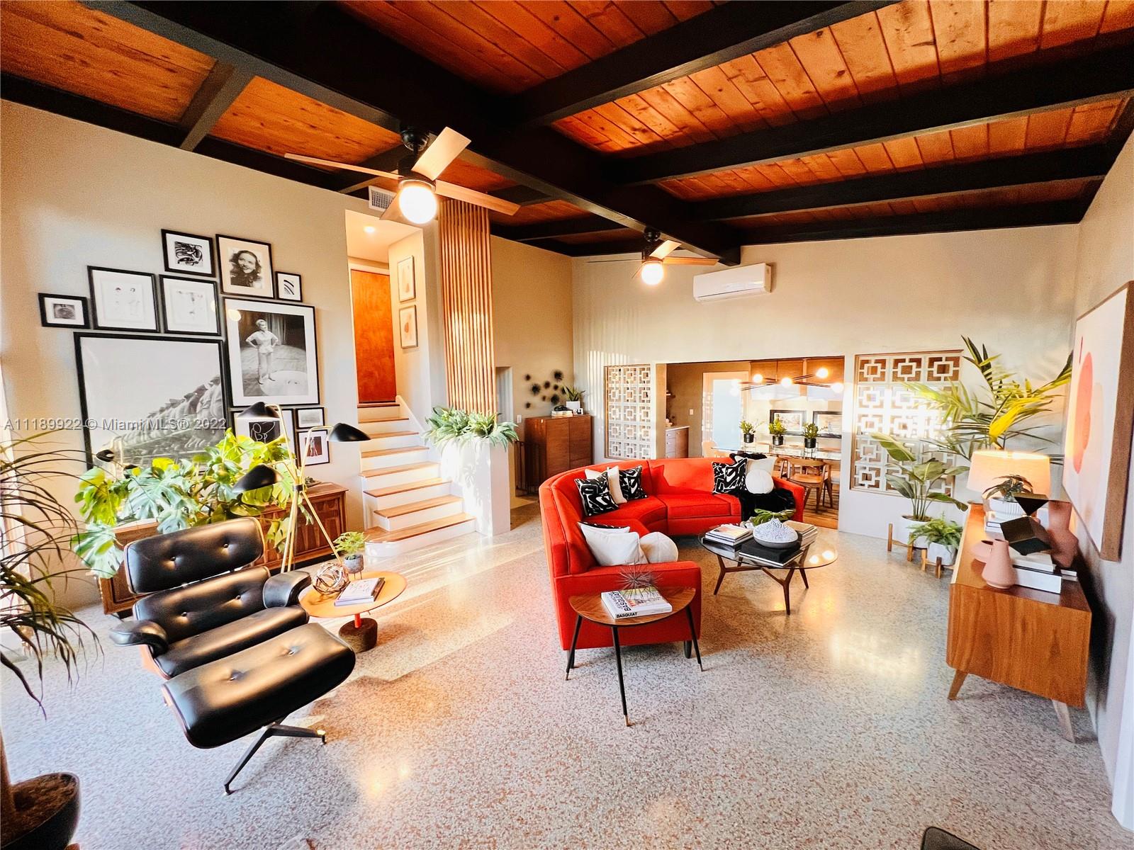Restored 3/2 mid-century tri-level home, located in sought after neighborhood of Lauderdale Isles. The original character of the home was kept in tact while updating it for use today. Home features open beam-vaulted ceilings throughout, restored terrazzo floors, updated and restored original bathrooms, new dual zone AC/splits, new water heater, updated electrical panel, impact windows, new PVC fence, and integrated alarm system. Great for entertaining, home features a large and open great room with dry bar and mini fridge and a large, newly remodeled kitchen w/ quartz countertops and stainless appliances. Completely fenced in yard with 2 mango trees and located right by the Riverland boat ramp. Features underground electrical, cable, and fiber. A must see home, text for appointment today.