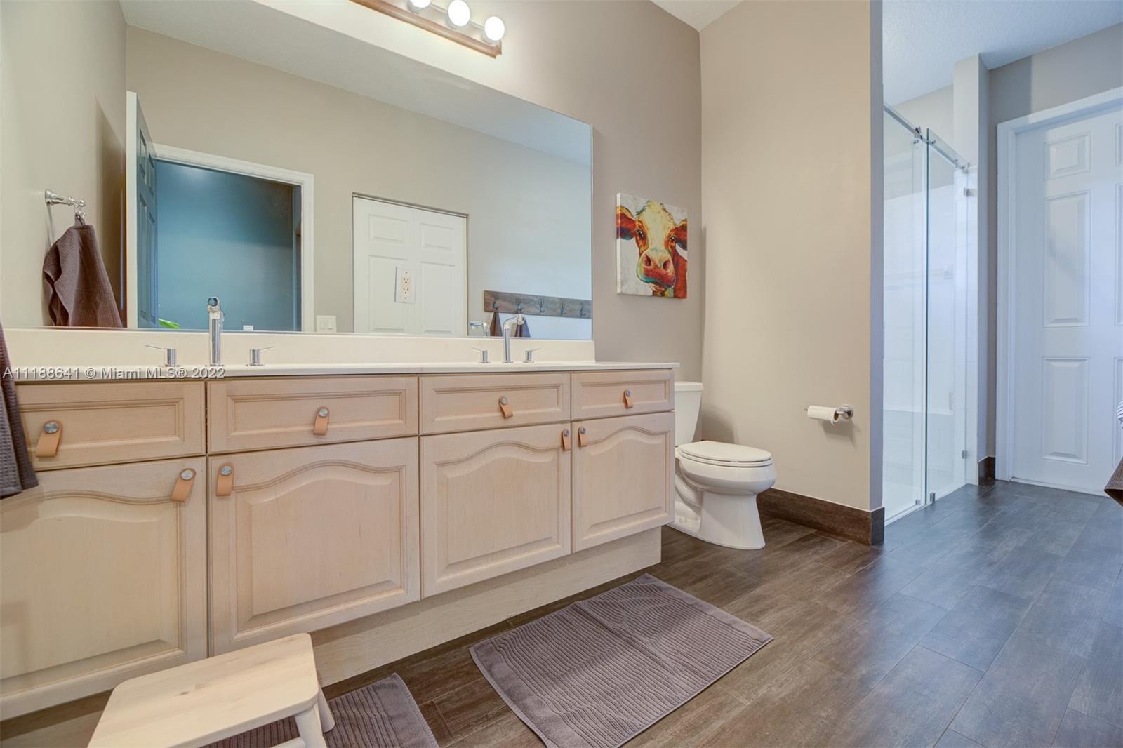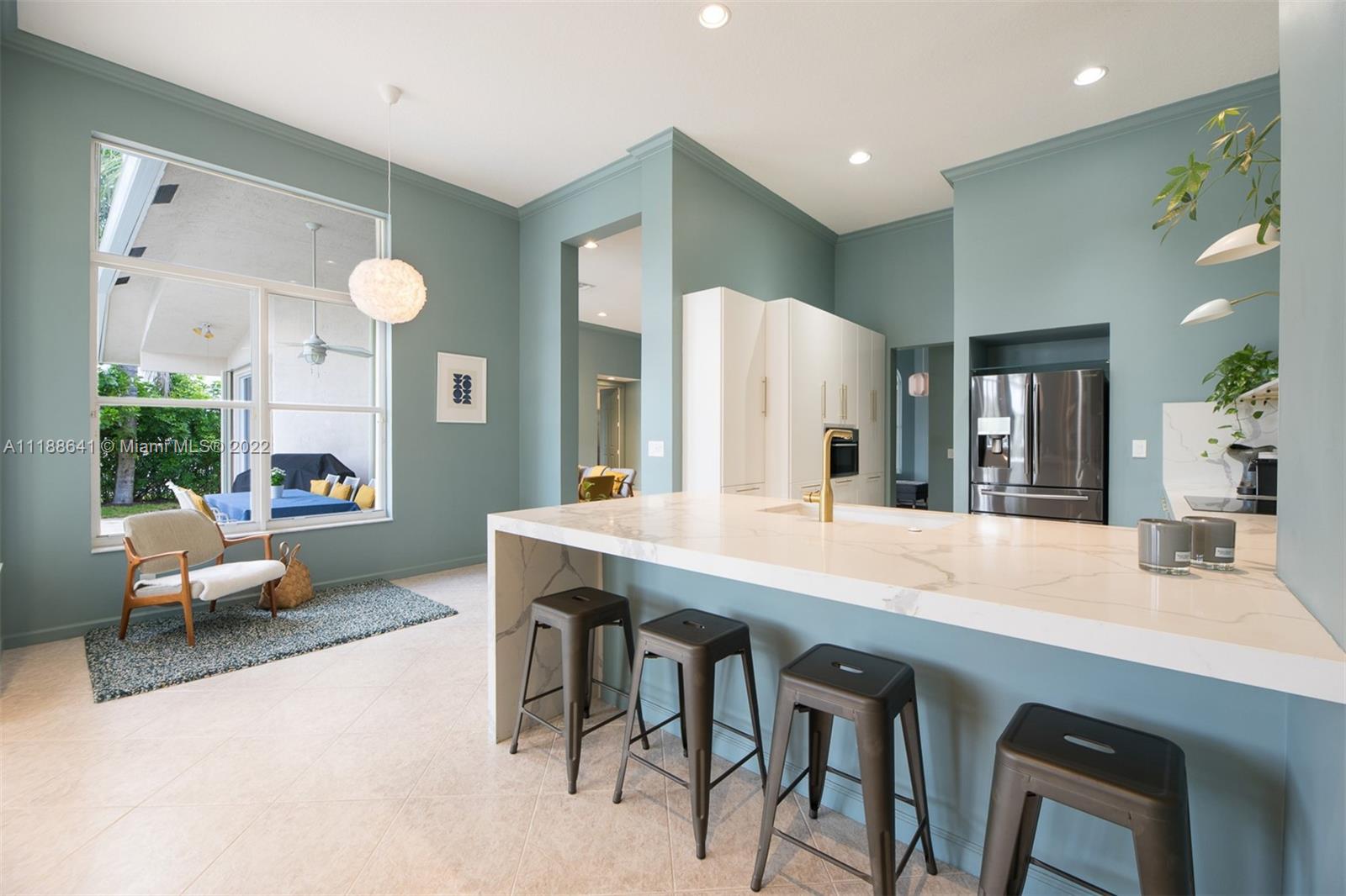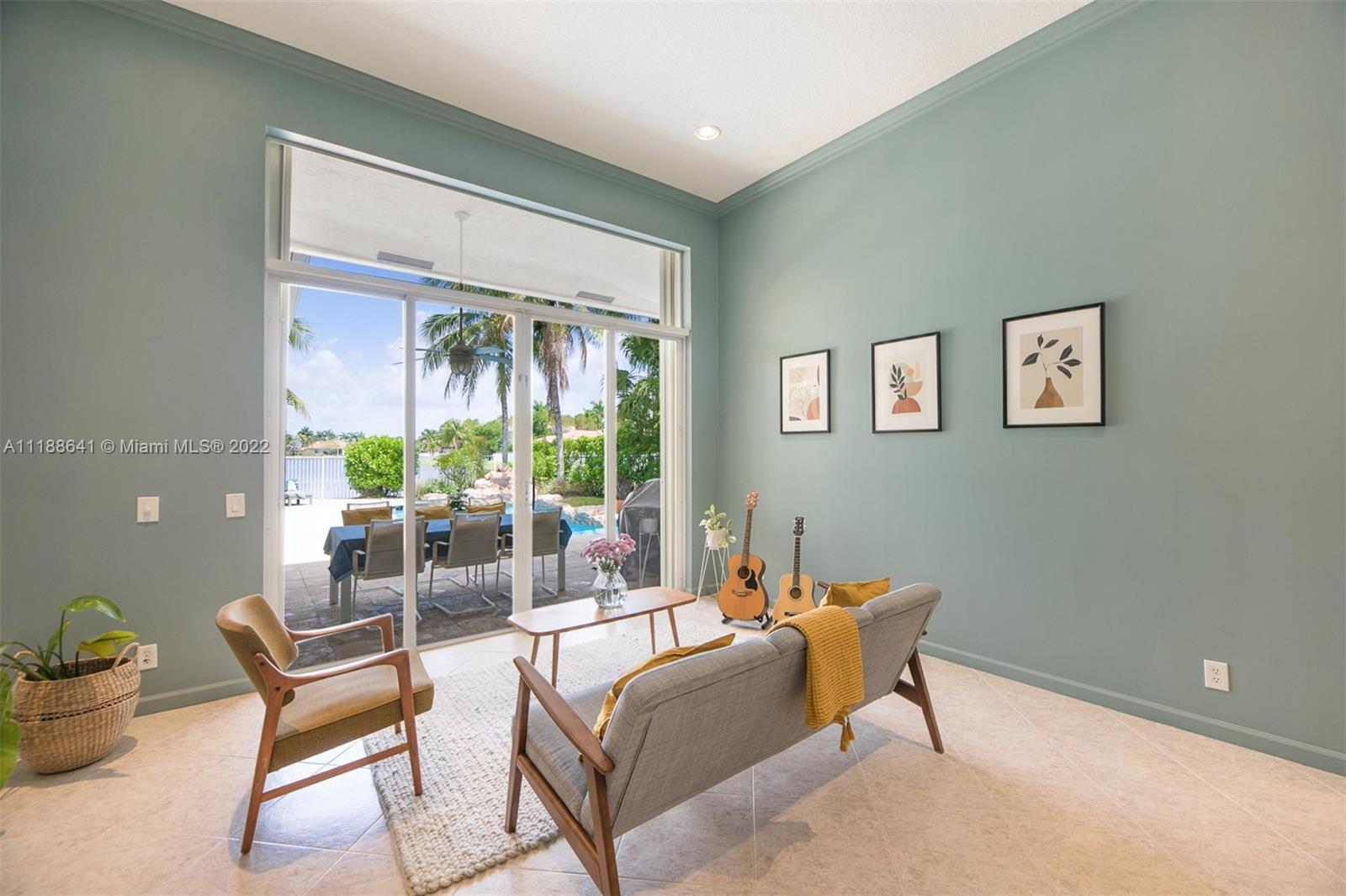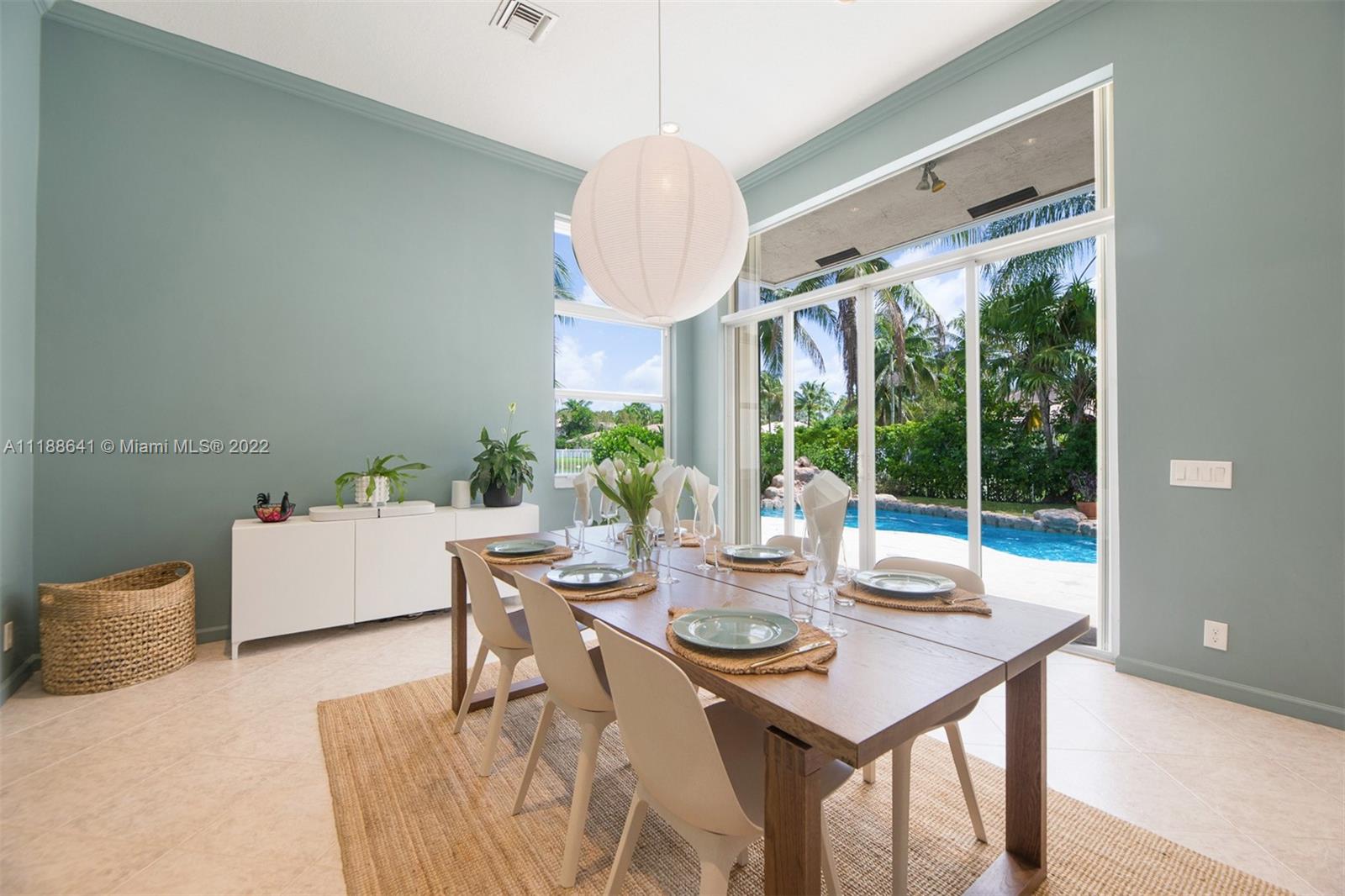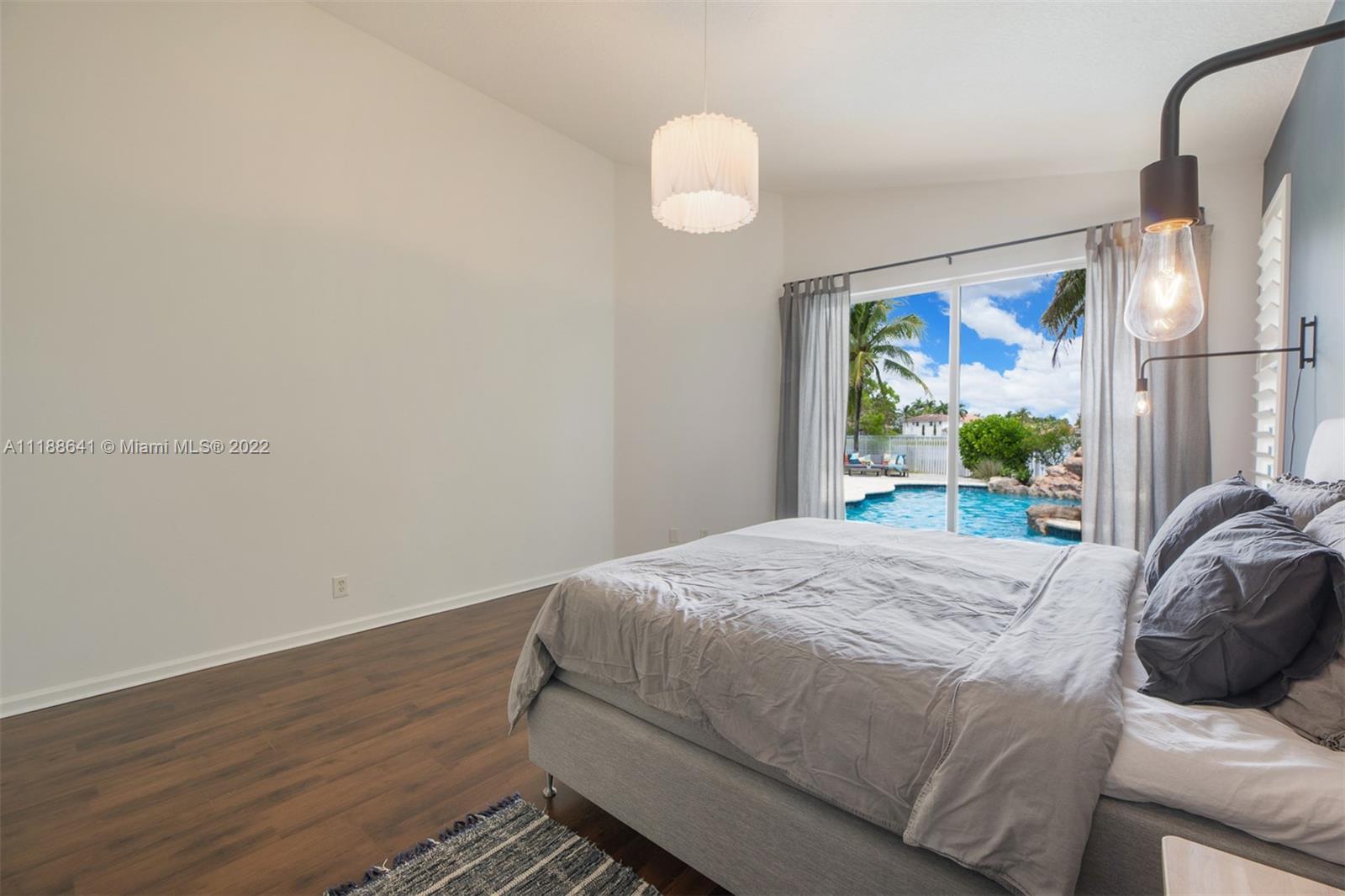 Imagine your family & friends gathering on this beautiful patio watching the sunset. Swim in the free form pool and enjoy the waterfall and this picturesque view of the lake. When you walk through the front door you will be in awe of the open floor plan with vaulted ceilings and gorgeous natural lighting. Multiple living areas and the triple split floor plan on 3879 sf provide plenty of room for entertaining. This well maintained home features a fully remodeled kitchen,renovated bathrooms,California closets,newer AC,complete Accordian Shutters,partial Impact windows and Plantation shutters. Nestled in the prestige subdivision 'The Cove' in Savanna, Weston. This highly desired community has resort style amenities, low HOA and is located in one of the best school districts in Broward County.