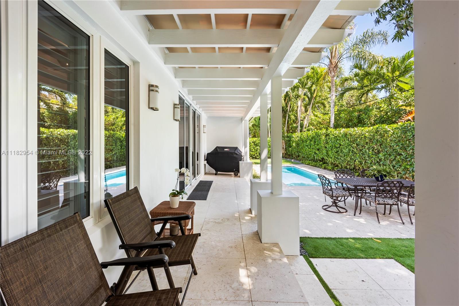 This stylish and contemporary one-story home is located in the Golden Triangle of Coral Gables on a beautiful street w/wide swale. Walking distance to the Biltmore Hotel and Golf Course and Downtown Coral Gables and within a short stroll to Fine dining and entertainment at Miracle Mile. All done with high-end finishes and excellent quality. This spacious family home features a welcoming foyer entrance with a formal living and dining room area with an adjacent butler’s pantry. The gourmet kitchen, with Wolf appliances (gas range), Sub-Zero refrigerator, and custom ITALKRAFT cabinetry, overlooks the family room area with a beautiful shiplap accent wall. Full house generator! Move-in ready! Location! Location! Location! Outstanding! A must-see!