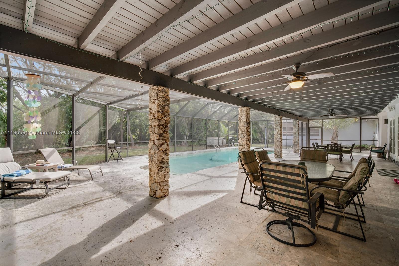 A one-of-a-kind Pinecrest home on over an acre w/ magnificent oak trees throughout. Enter this enchanting 4 bedroom + office (large enough to make it a 5th bedroom) / 4 baths (all en-suites) home w/ formal living & dining rooms, striking double-sided fireplace w/ beautiful wood vaulted ceiling, warm & inviting family room, kitchen that was totally redone w/ top-of-the-line appliances, a beautifully renovated primary bathroom that will blow you away, deep patio + fabulous pool, and side-entry double-car garage. New roof, new drain field, two new A/C units & handlers, oversized laundry room, split floor plan, mango, avocado, and banana trees. You can enter the property from either SW 123rd Street or SW 126th Street Road. The list goes on and on.
