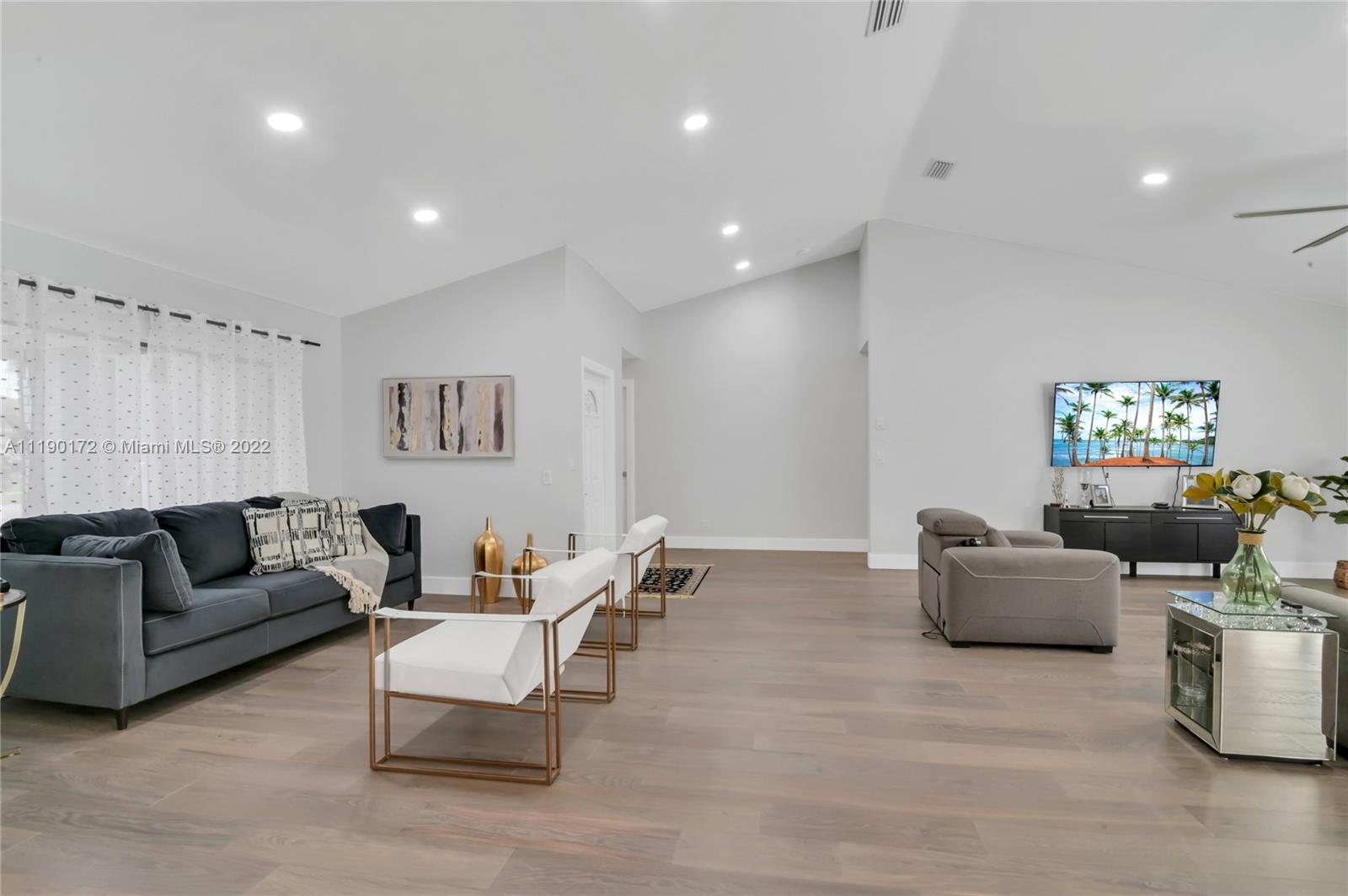 Don't miss the opportunity to live is this beautiful fully remodeled home with large yard & poll. No details were overlooked. The Tiled entrance with a garden space welcomes you into this spacious open concept home full of natural light, a sitting are, large living room and a kitchen with a dinning area, with dimmable lighting all throwout. In the kitchen you'll find a large cooking island, pure white quarts countertops, glass subway tile backsplash, fully costume cabinets, brand new all wi-fi appliances and leads you to a large laundry area featuring a working space with a sink and storage. The 3bedrooms are very spacious and all have costume made closets. The master has a finished walk in closet and a spacious double sink bathroom. There are Many details to list. A MUST SEE