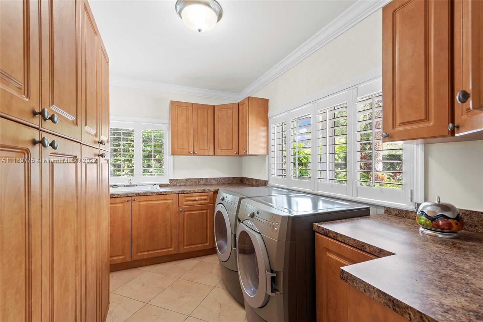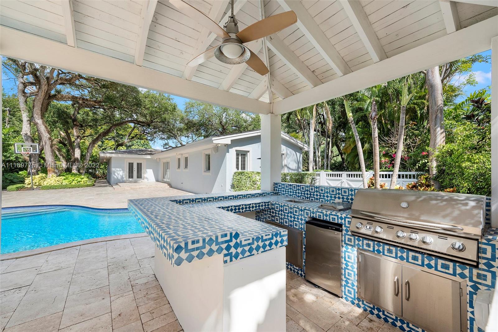 Traditional elegance in Coral Gables. Completely updated and located in one of the most desirable locations, this Gables gem is the epitome of space and location. Set on a spacious, almost 22,000 SF lot, enjoy 4 bedrooms and 4 bathrooms including separate maids quarters and laundry room. Light filled and spacious throughout, the home features wood floors, impact widows and top of the line finishes. The primary bedroom has ample his/her closets, large bathroom and picturesque pool views. Entertain indoors or out by the heated, salt water pool, complete summer kitchen and gazebo. Gated entry, oversize front yard, security cameras throughout exterior stunning oak trees and cul-de-sac complete this home. Price includes furniture.