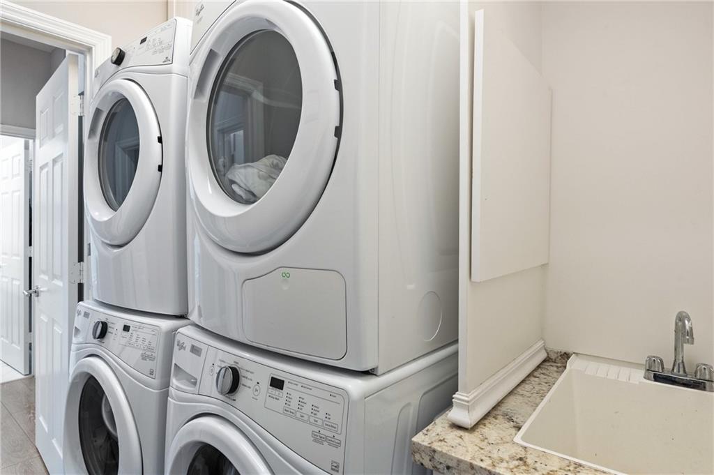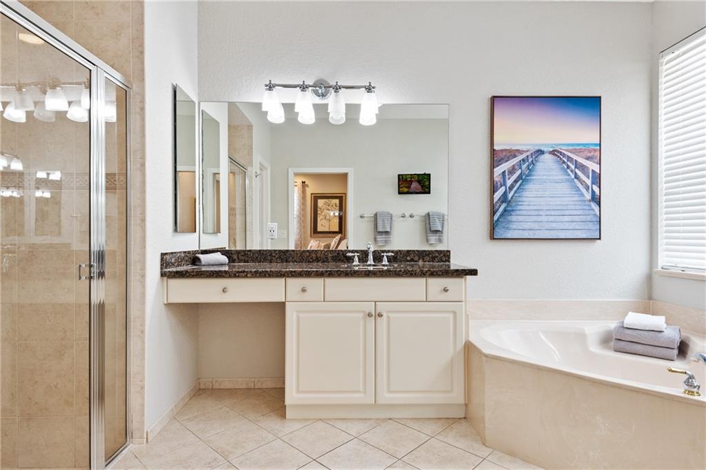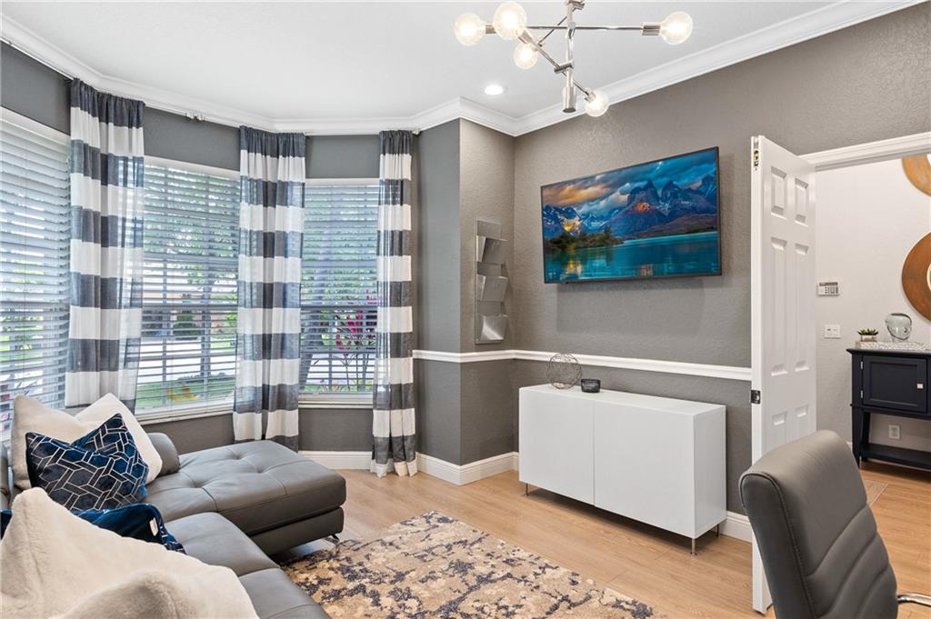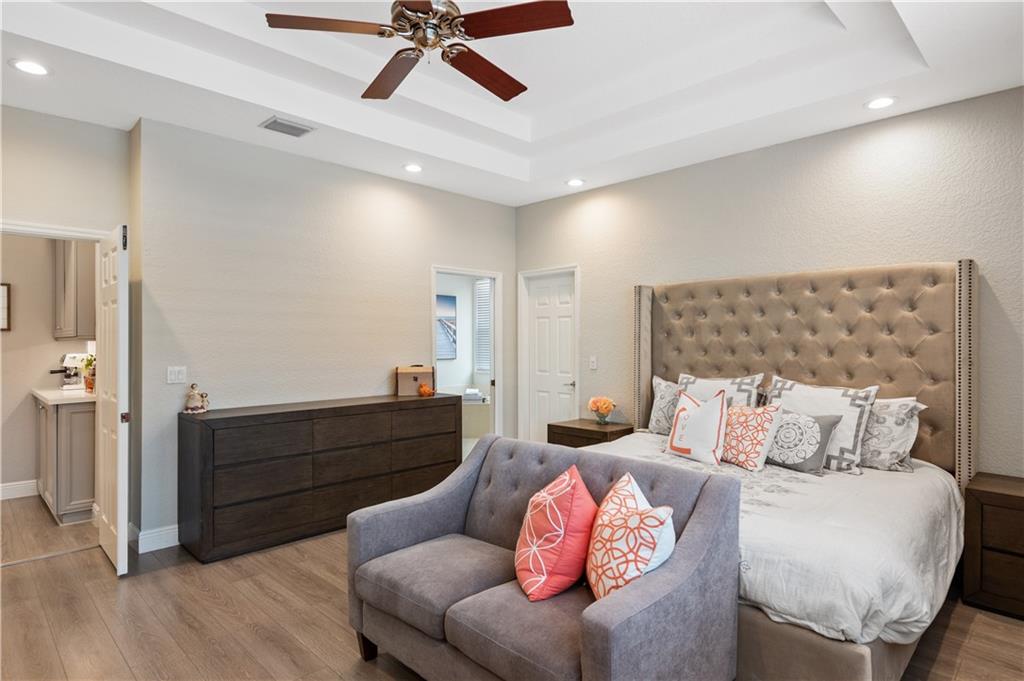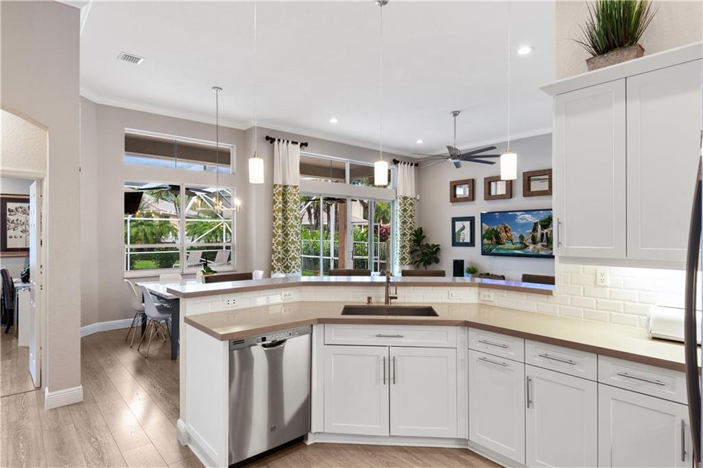 Stunning, turn key 4 bedroom (4th bedroom is currently used as an office), 3 full bathroom pool home located in the guard gated community of Grand Reserve. This home features an open floor plan with volume ceilings and an updated kitchen with white shaker cabinets, new quartz counter top, subway tile backsplash, a built in coffee bar, upgraded kitchen pantry shelving, GE Profile Stainless Steel Appliances. Laminate and tile flooring throughout with upgraded baseboards. Large master with a walk in closet, bathroom has dual sinks with a separate shower and tub. Screened in pool w/ salt water pool and travertine. Enjoy your fully fenced, private back yard w/ lots of green space and a fenced dog run w/ a gate to the main yard. Laundry room has 2 stackable washers and dryers with laundry sink.