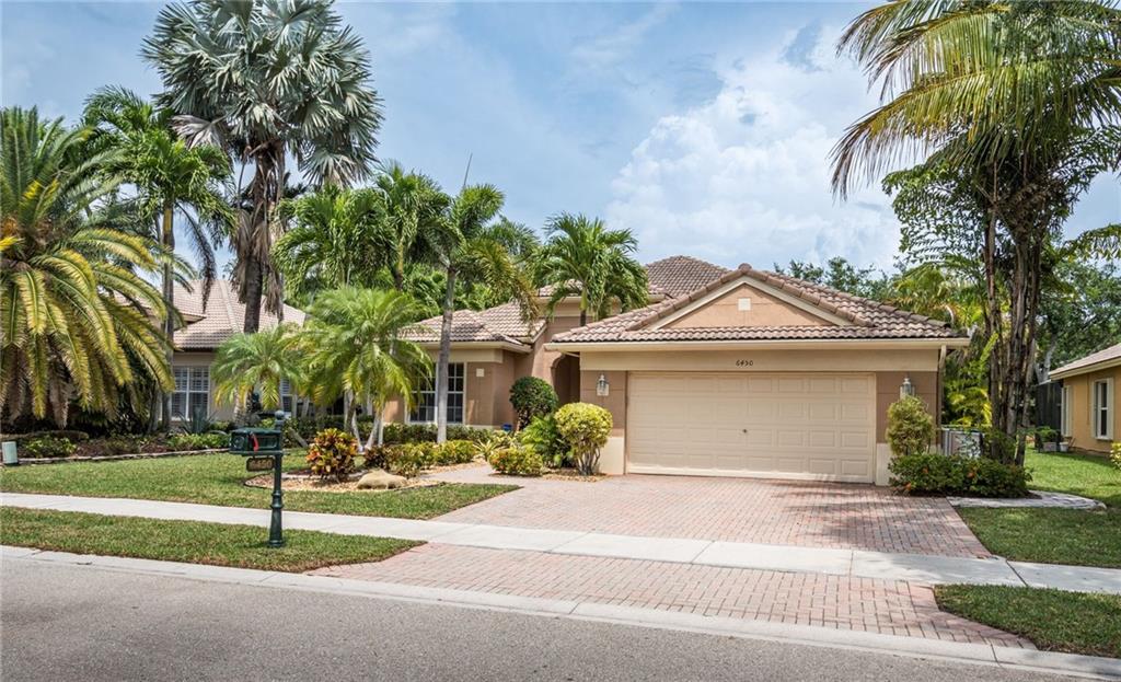 Gated community of Parkland Isles. Enjoy the location, amenities, schools, parks, and everything the area has to offer. This 4 bedroom 3 full baths pool and raised spa home has a newer kitchen and a great floor plan. Situated down a quiet street. Real nice curb appeal with brick pavered driveway and entryway along with the barrel tile roof and palm trees. Kitchen fully remodeled recently with center island, white cabinetry and elegant countertop. Stainless steel appliances. Neutral tile through main living areas. Master is spacious and offers views of pool. Light and bright. The backyard is fully fenced. This community with 24 hr manned guard gate, heated community pool & spa, gym, tennis, clubhouse, and much more. Low maintenance of $289 month alarm monitoring, cable and internet.