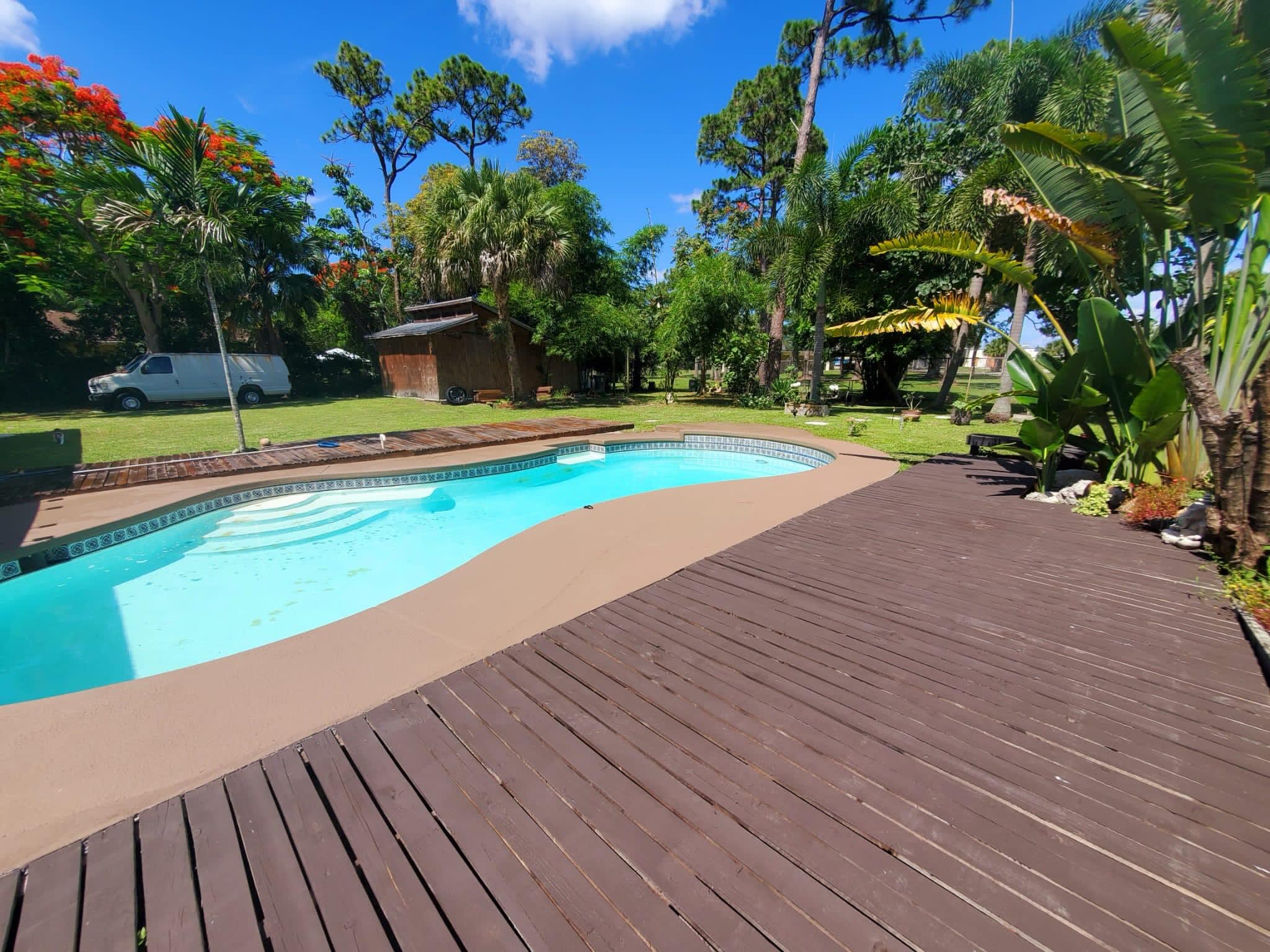 Great opportunity! CBS 3bed/1bath pool home on almost half an acre lot with fruit trees! Property has 3 bedrooms, with a convertible room that can easily be a future 4th bedroom. Property has lots of storage and shed in the back. Centrally located in West Palm Beach, close to I95, turnpike, shops, great magnet schools and restaurants. In need of some TLC. Don't miss out, priced to sell!