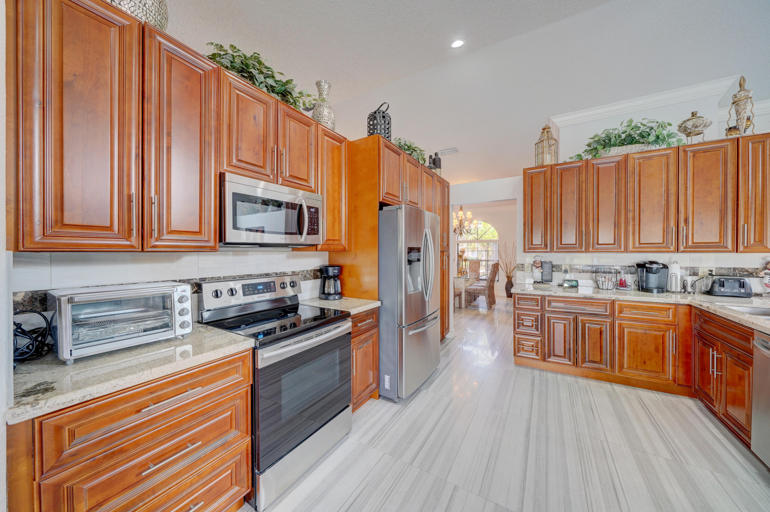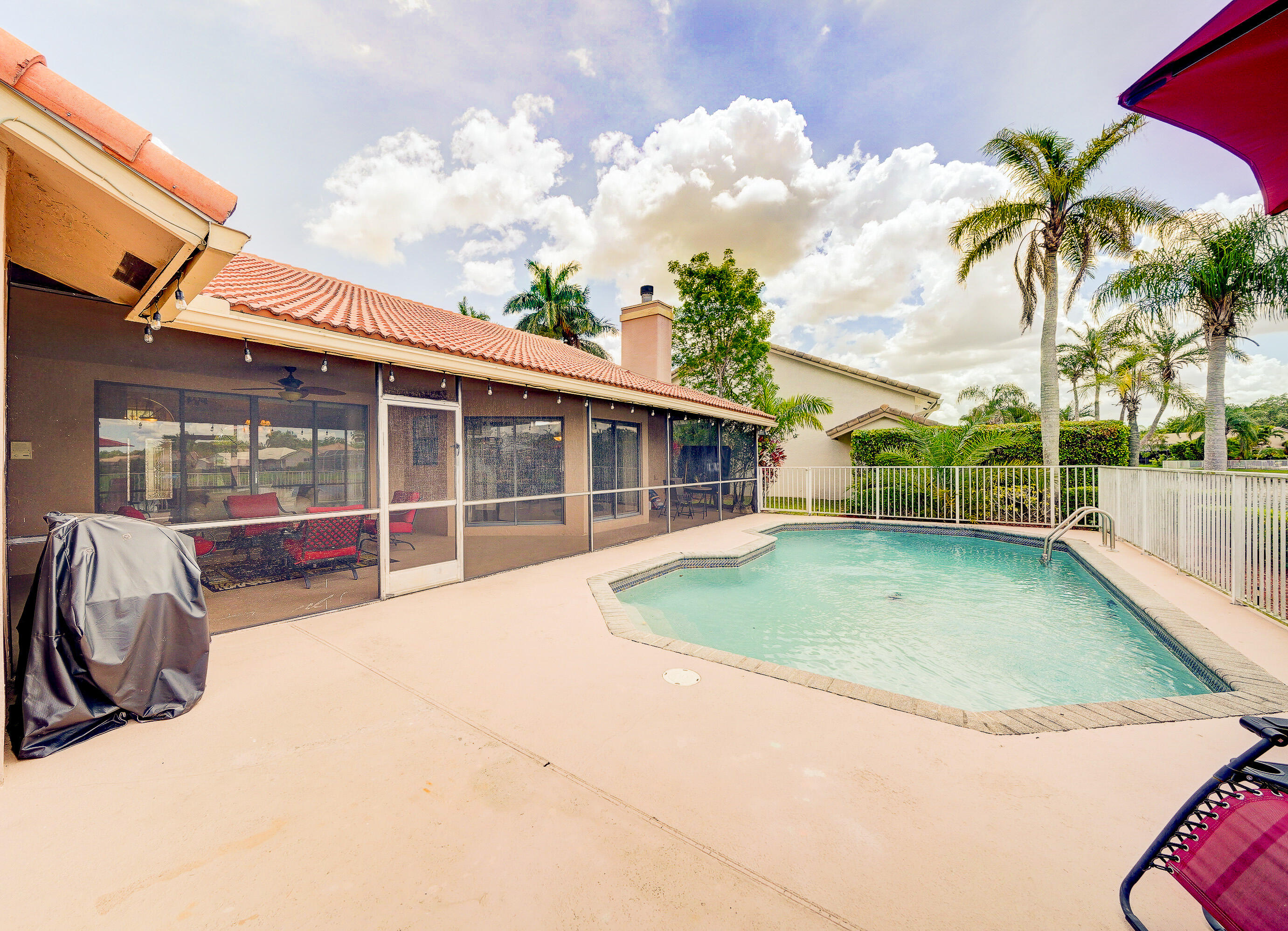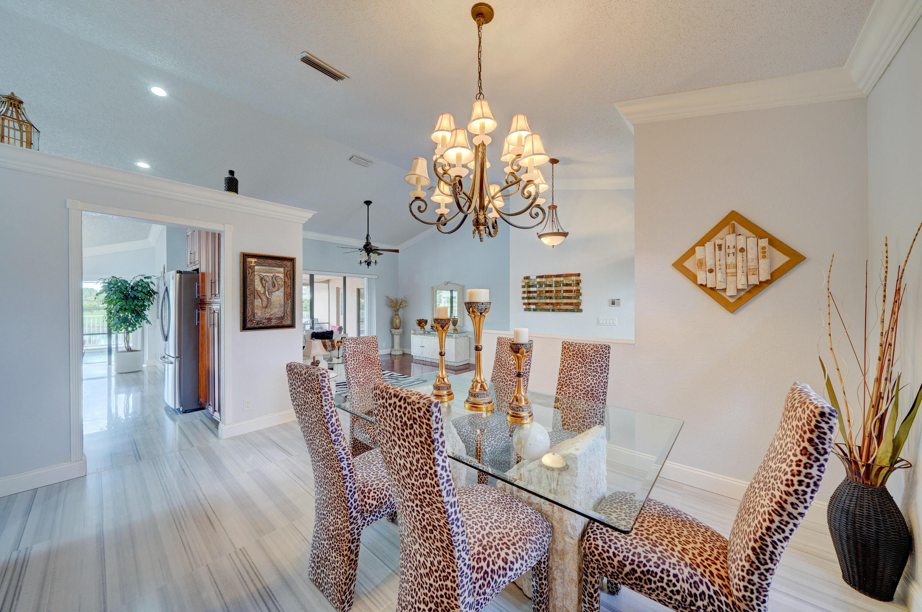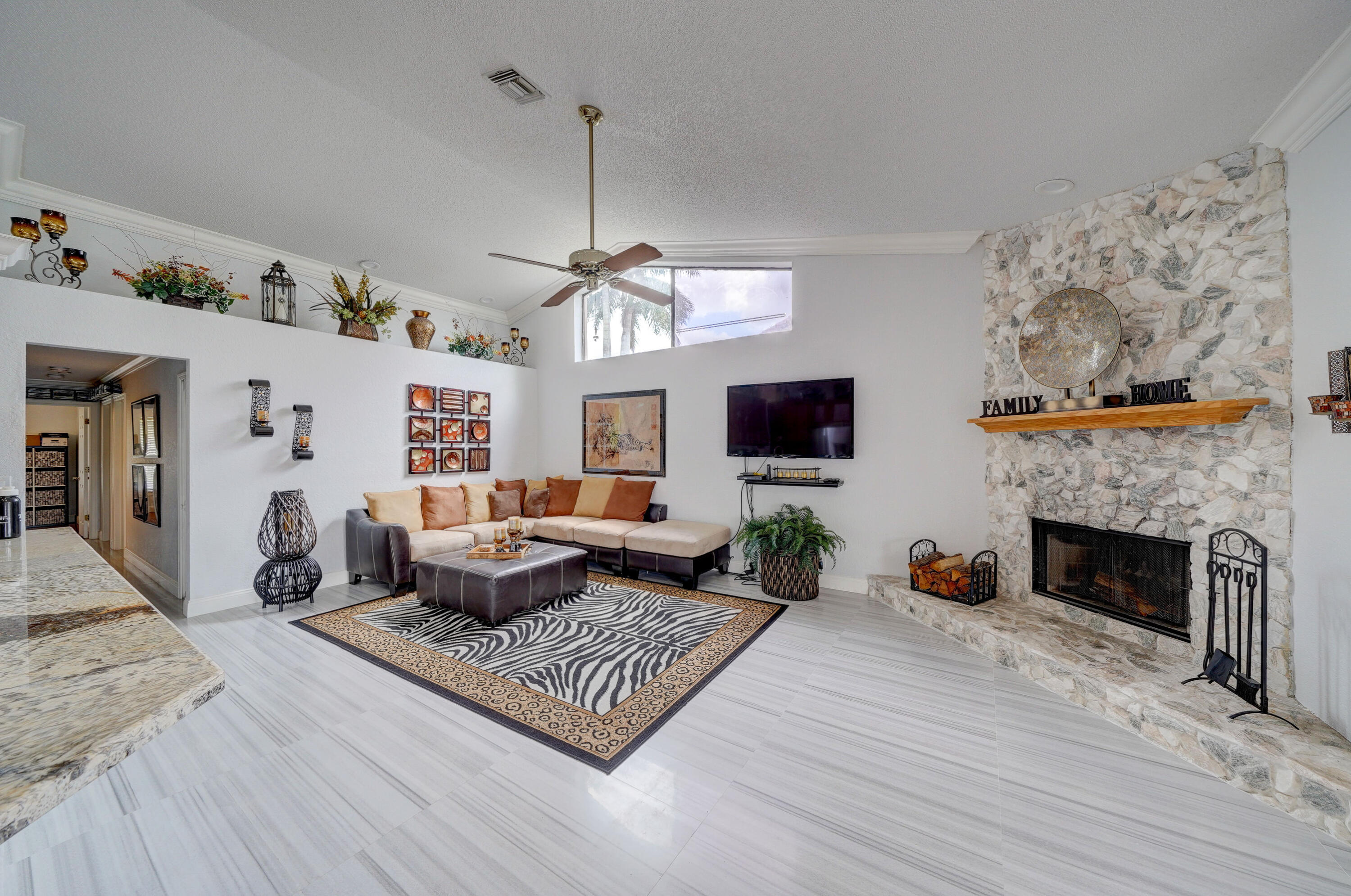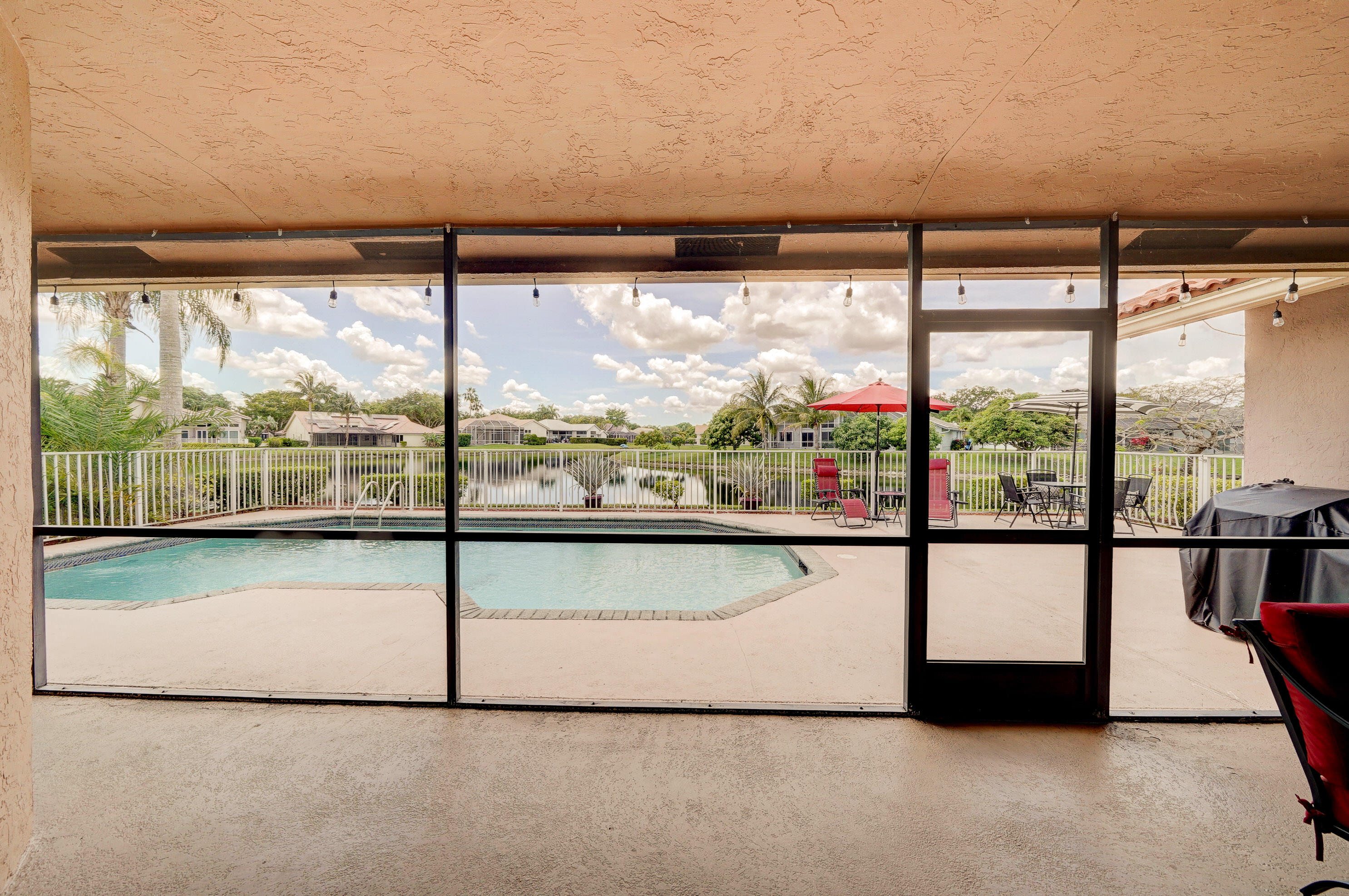 A true 5 bedroom home with 3 full baths, a split floor plan. This one story home has a 2 car garage with a circular driveway, fire place, crown molding throughout, new kitchen with granite counters and wood cabinets.. Home has been recently upgraded with new flooring and appliances. Roof is 2020. 2 A/C zones. Pool and back patio gives beautiful lake views.Screened in porch overlooks the pool and lake.