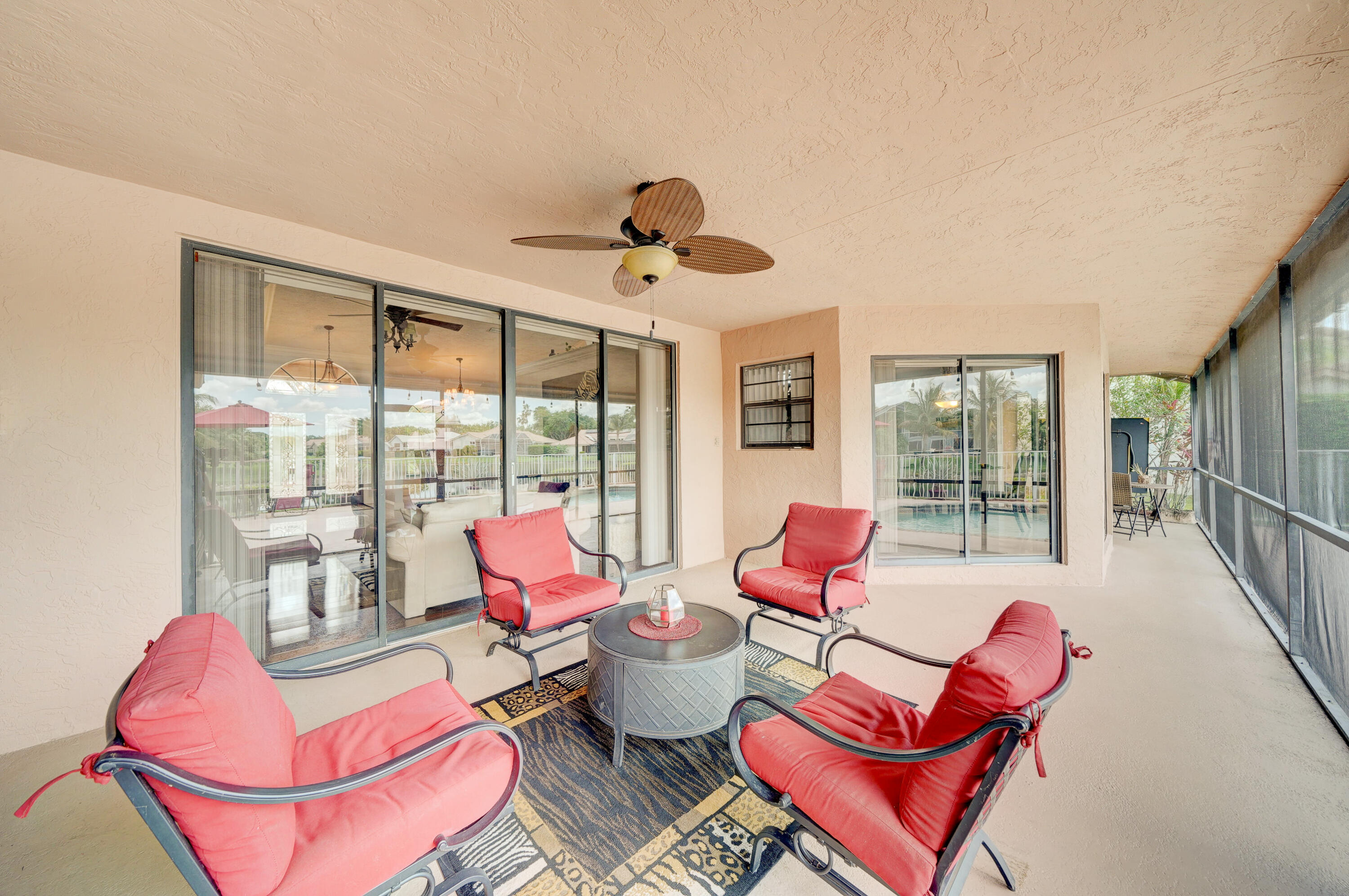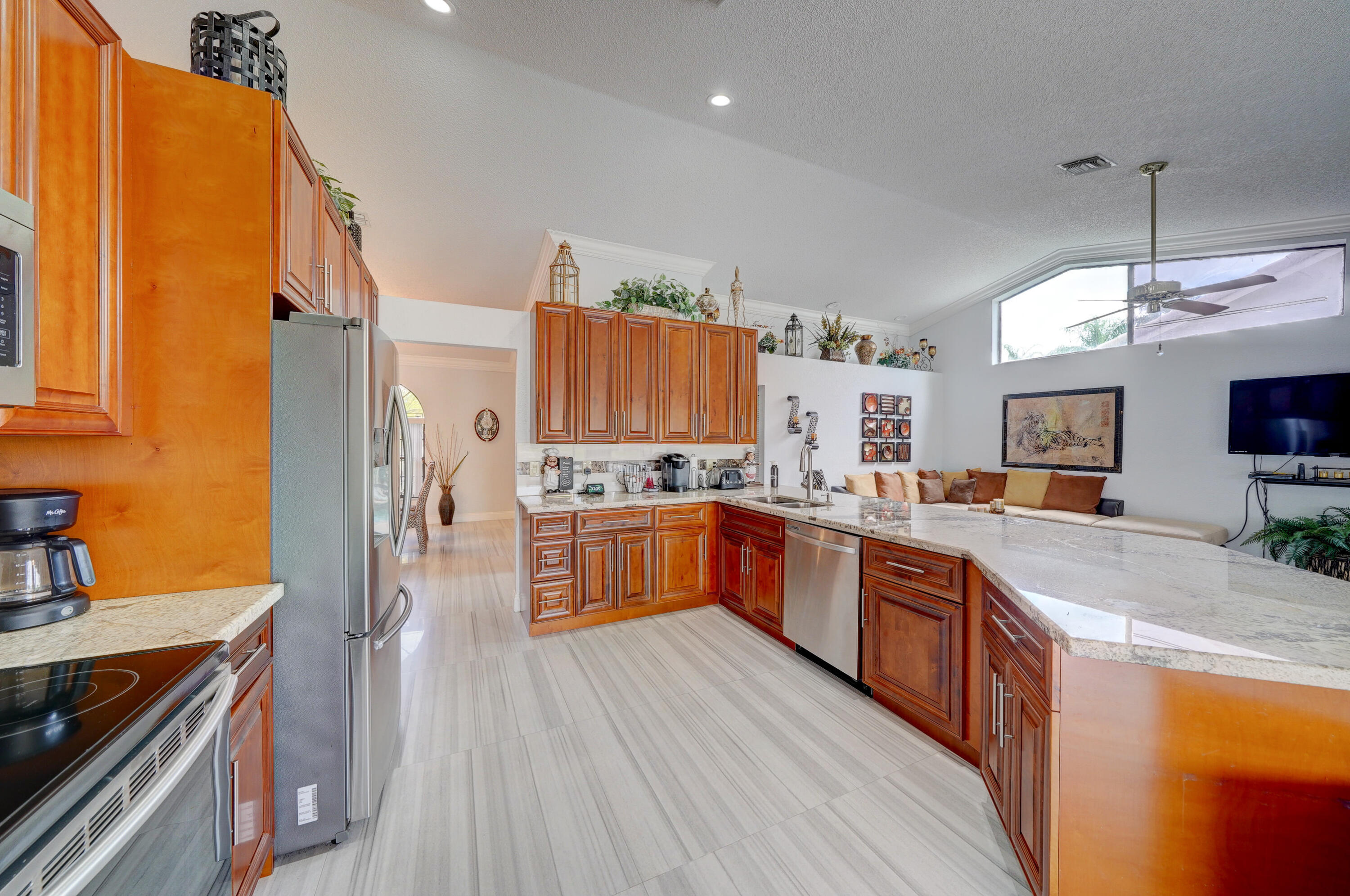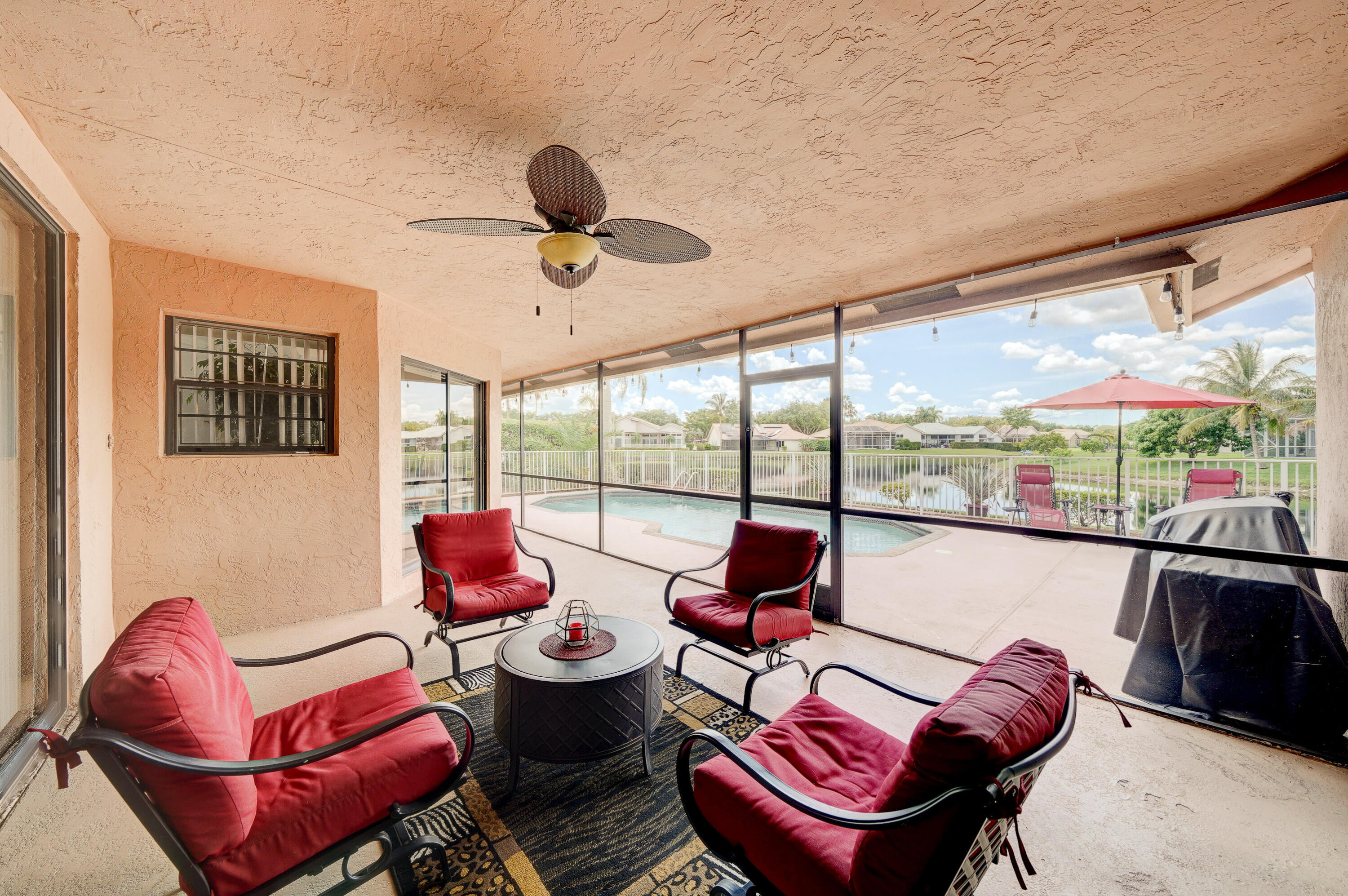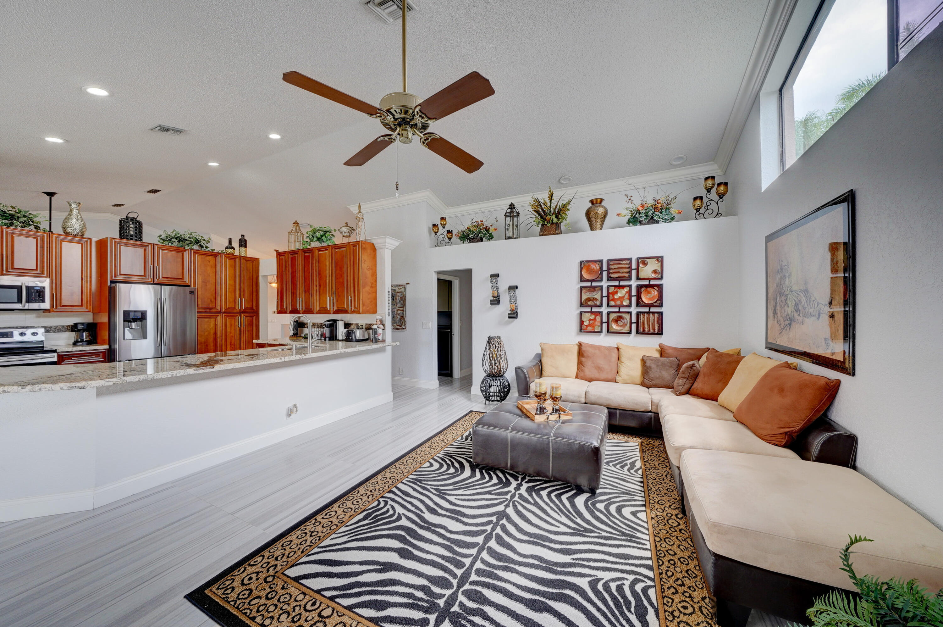 A true 5 bedroom home with 3 full baths, a split floor plan. This one story home has a 2 car garage with a circular driveway, fire place, crown molding throughout, new kitchen with granite counters and wood cabinets.. Home has been recently upgraded with new flooring and appliances. Roof is 2020. 2 A/C zones. Pool and back patio gives beautiful lake views.Screened in porch overlooks the pool and lake.