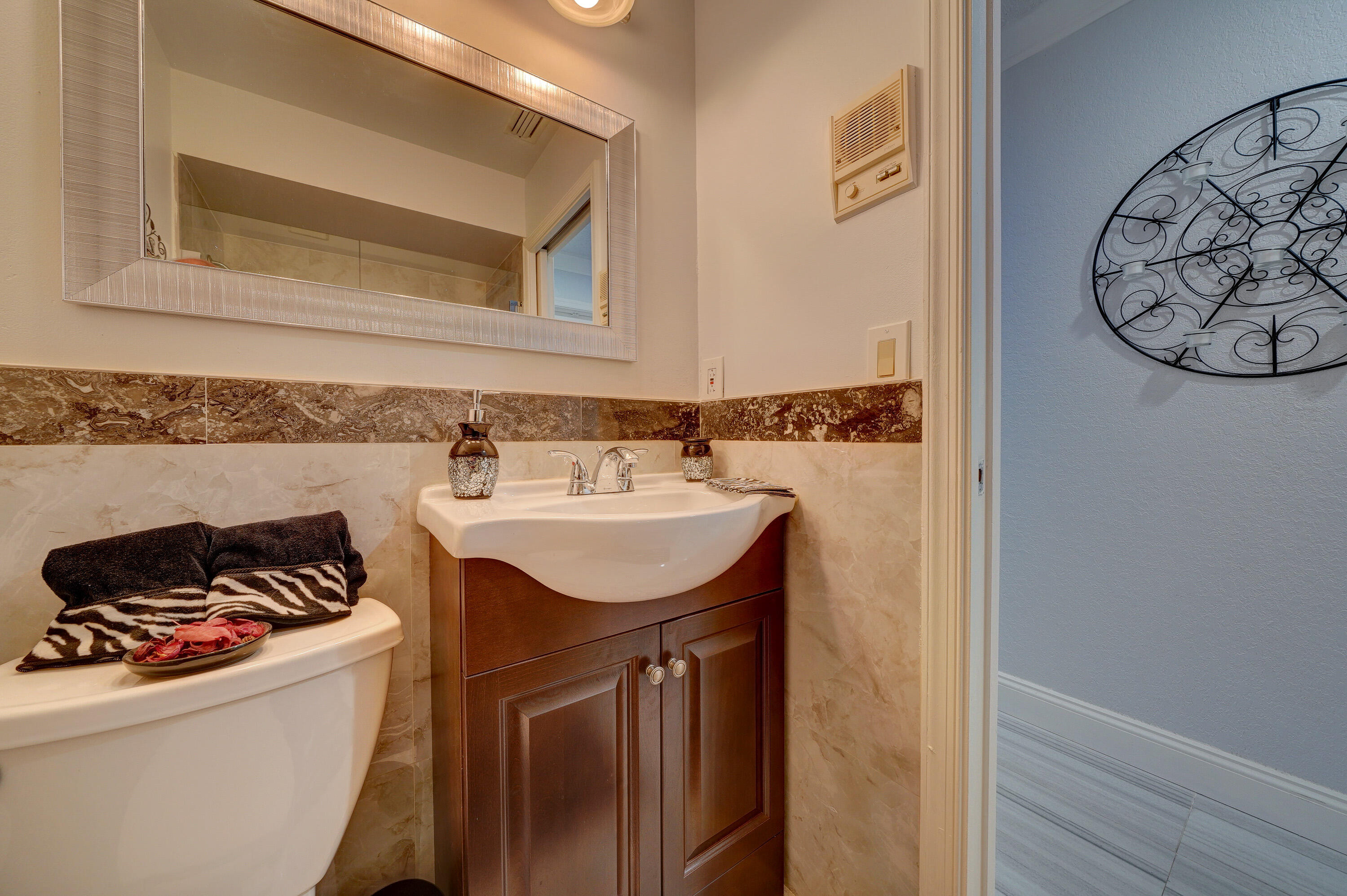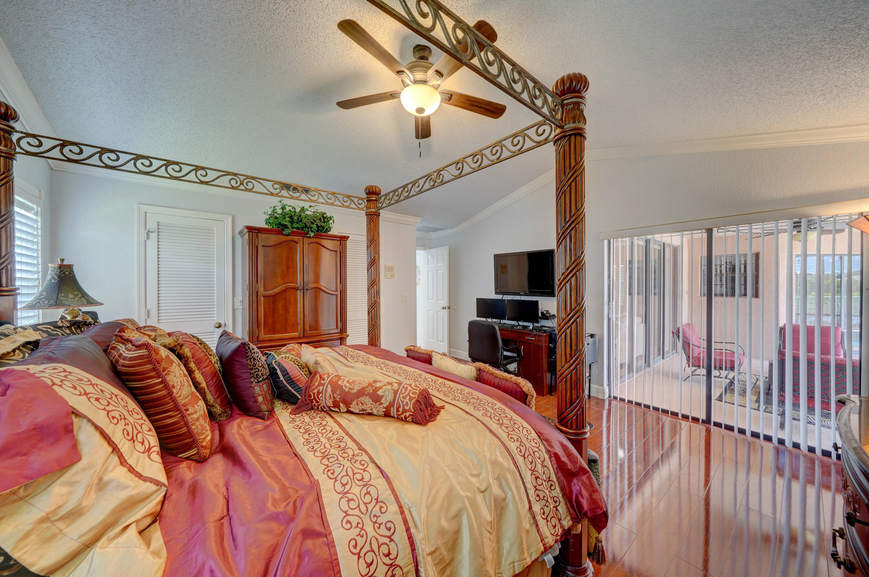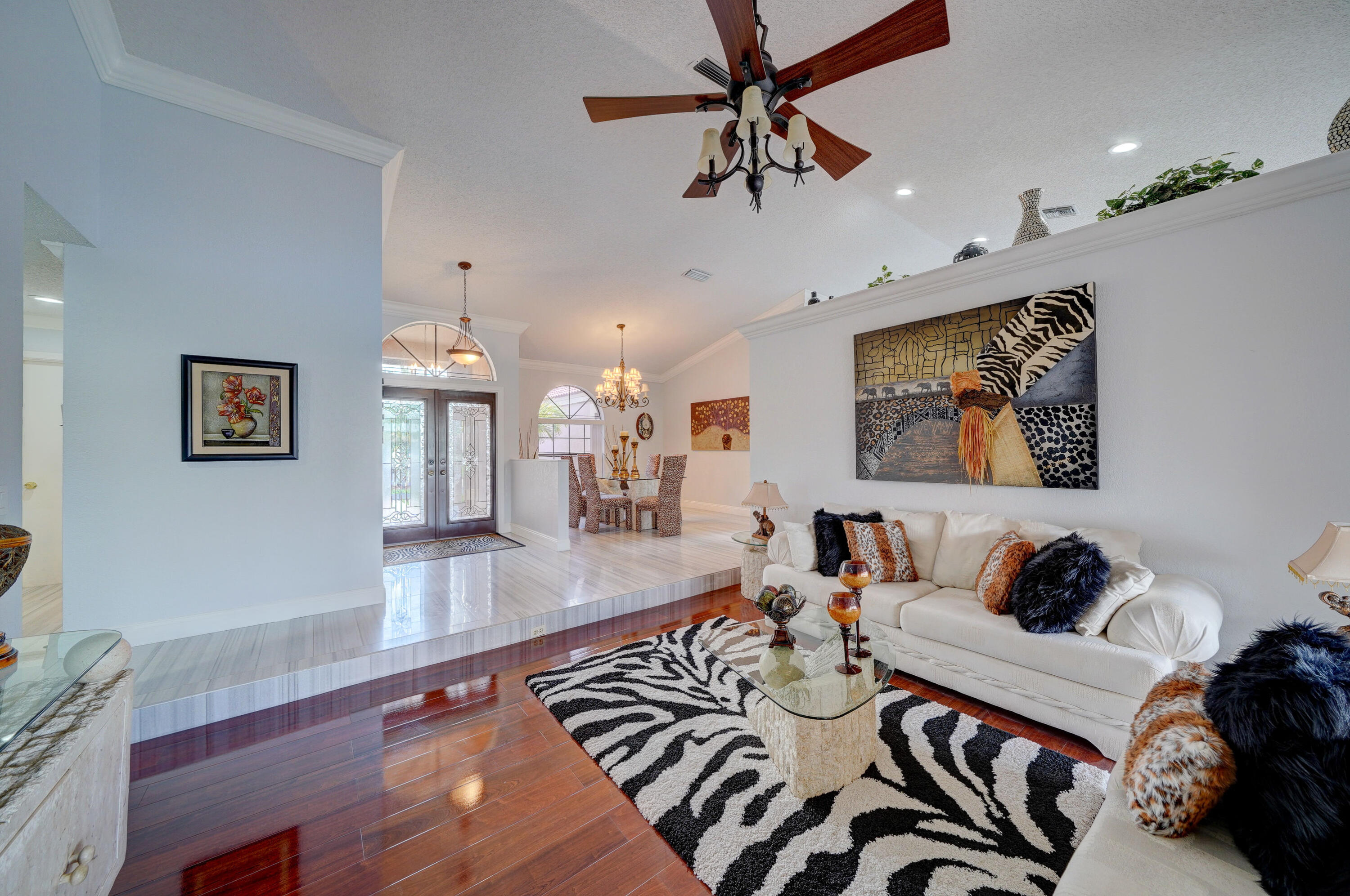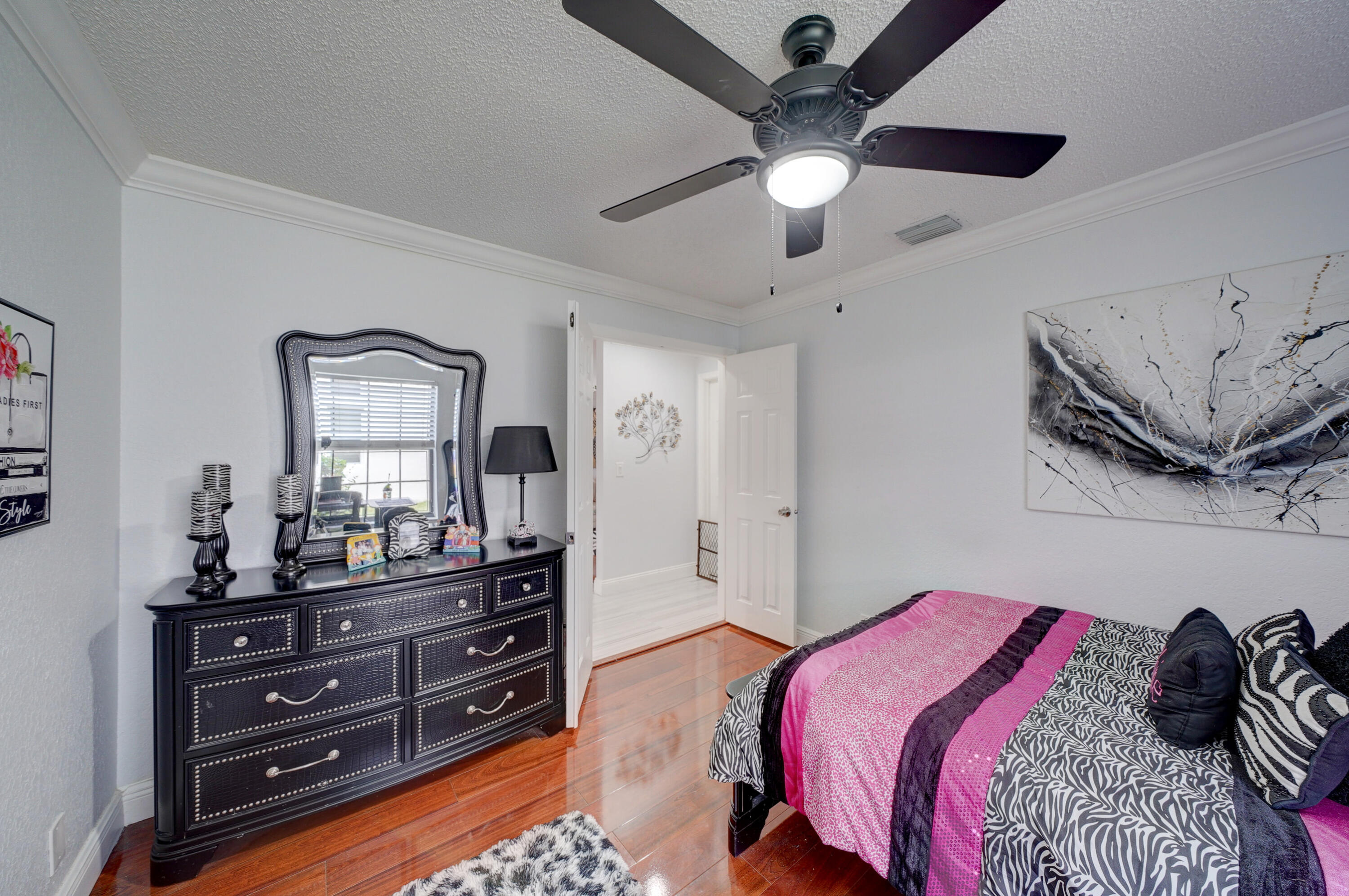 A true 5 bedroom home with 3 full baths, a split floor plan. This one story home has a 2 car garage with a circular driveway, fire place, crown molding throughout, new kitchen with granite counters and wood cabinets.. Home has been recently upgraded with new flooring and appliances. Roof is 2020. 2 A/C zones. Pool and back patio gives beautiful lake views.Screened in porch overlooks the pool and lake.