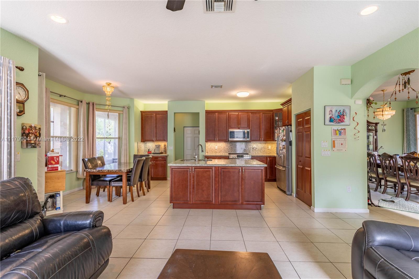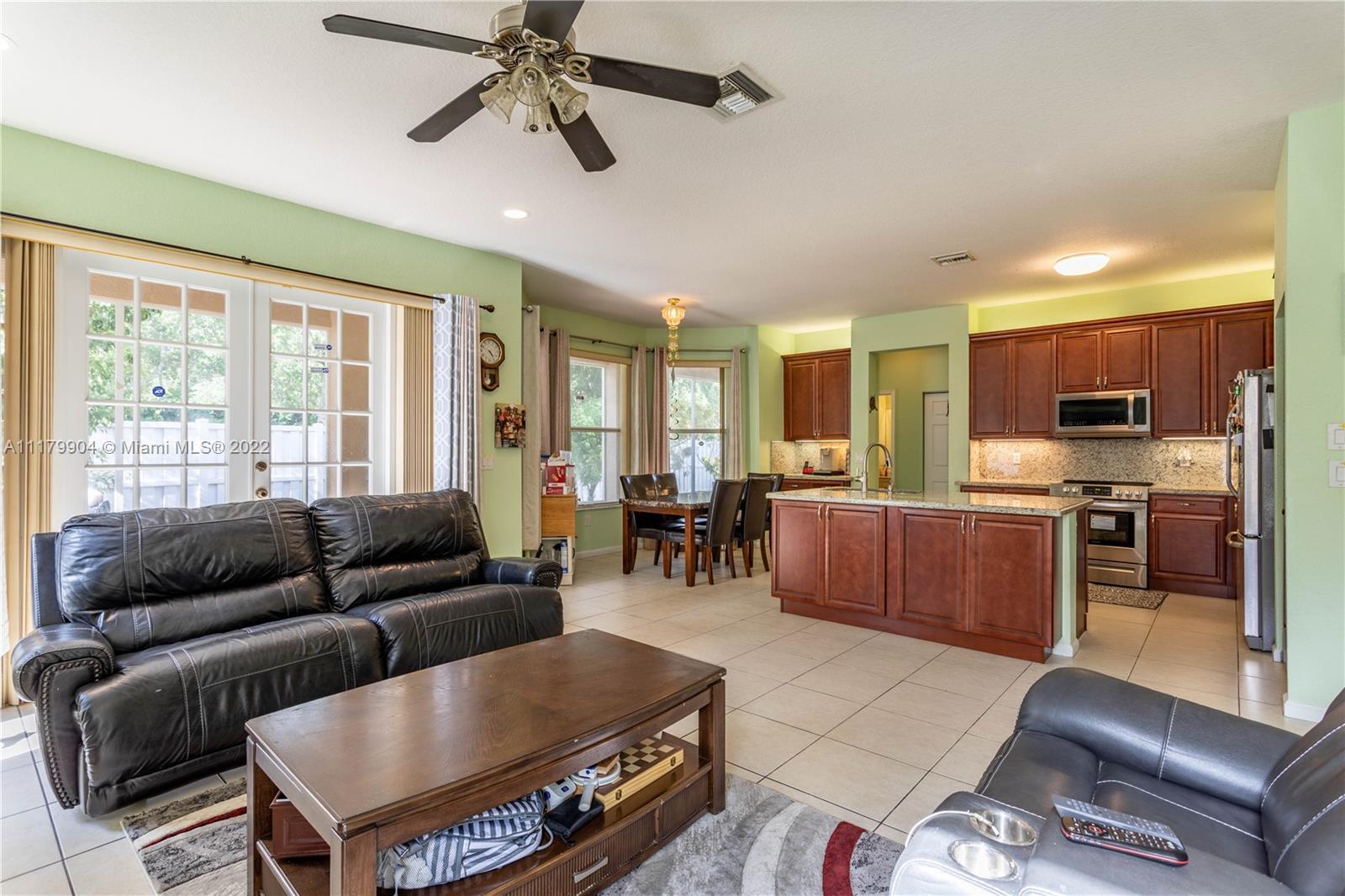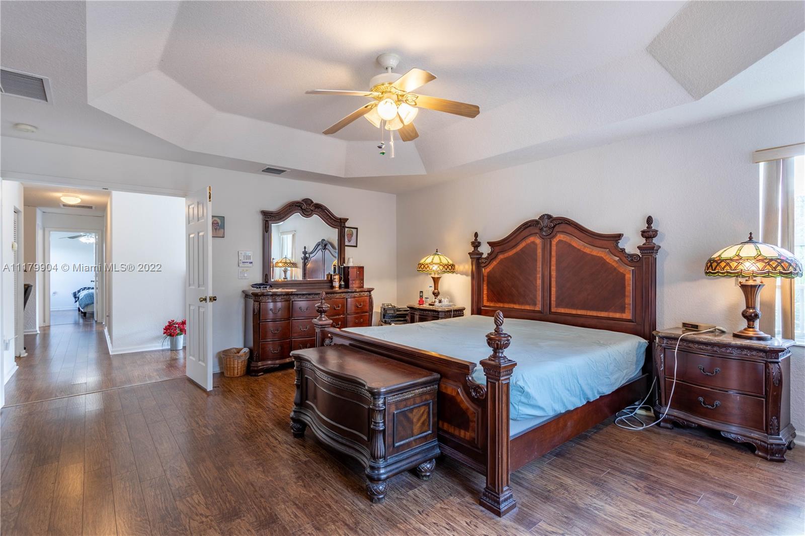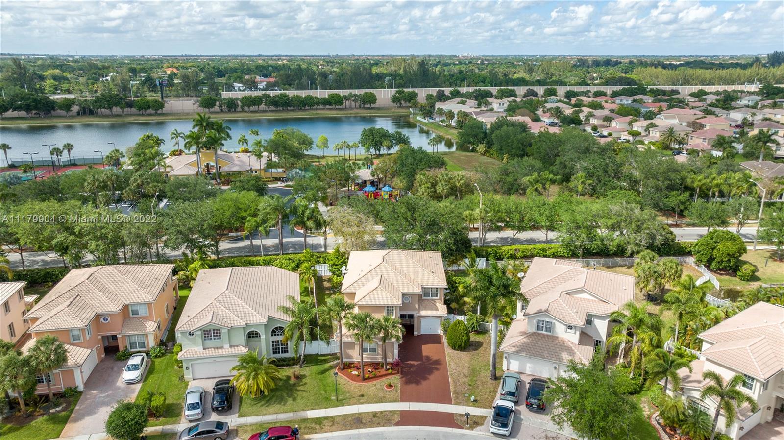 Spectacular 5 Bed, 3 Bath home in the desirable neighborhood of Silver Falls. This spacious layout has one bedroom and full bathroom on the 1st floor, perfect for multigenerational families. Large kitchen with SS appliances and a breakfast nook over looking the screened in patio and lush backyard. The second floor features an oversized master bedroom with two walk-in closets, dual master bathrooms & a balcony with unobstructed water views over looking the serene lake. Laundry room on second floor with sink. Accordion shutters throughout, 3 car garage with plenty of space for storage. Full exterior of home, driveway and 2nd floor interior just painted.
