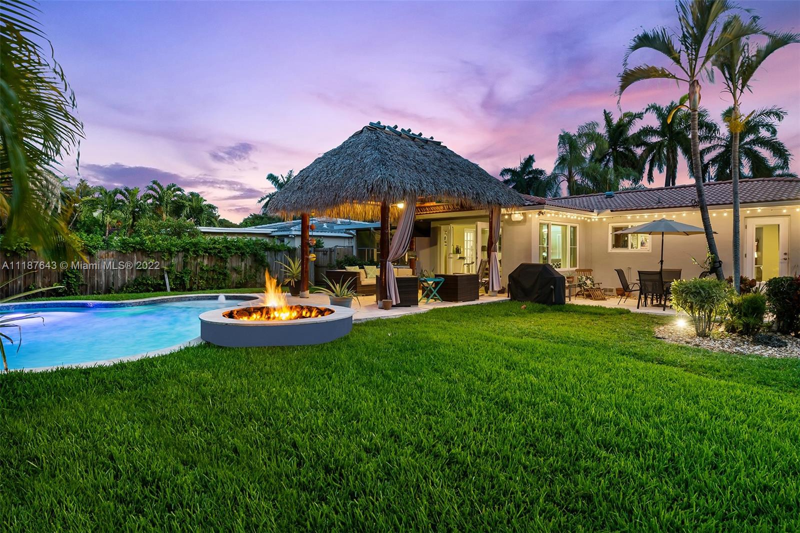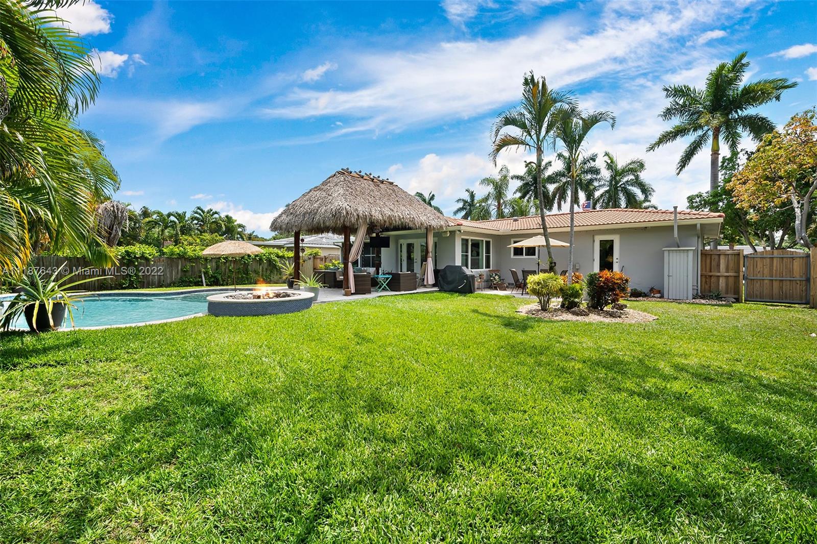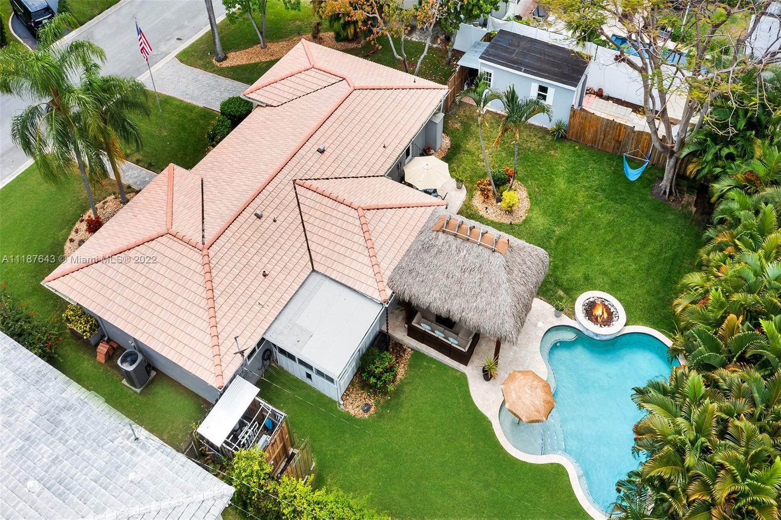 Welcome home to this beautiful Florida tropical oasis in one of the best streets of Hollywood Lakes. This stunning 3 bedroom 2 bath split floor plan offers a great flow throughout the home, with updated kitchen and baths the home is move in ready! Property sits on an OVERSIZE LOT (12,506sqft), offering the perfect set up for entertaining, as well as, family living! The fabulous outdoor pool area is surrounded by its tropical lush landscape, including a built in fire pit and Tiki-Hut. A 10x20 shed/garage offers the extra space for a workshop/storage including a concrete driveway with space for a boat or RV. New impact windows, AC unit, water heater, plantation shutters are a few of the most recent upgrades. Located just a short distance to Hollywood beach, downtown, golf, parks, & marinas