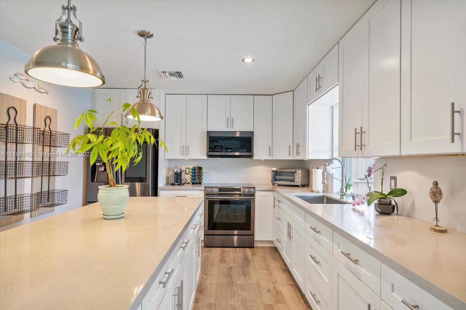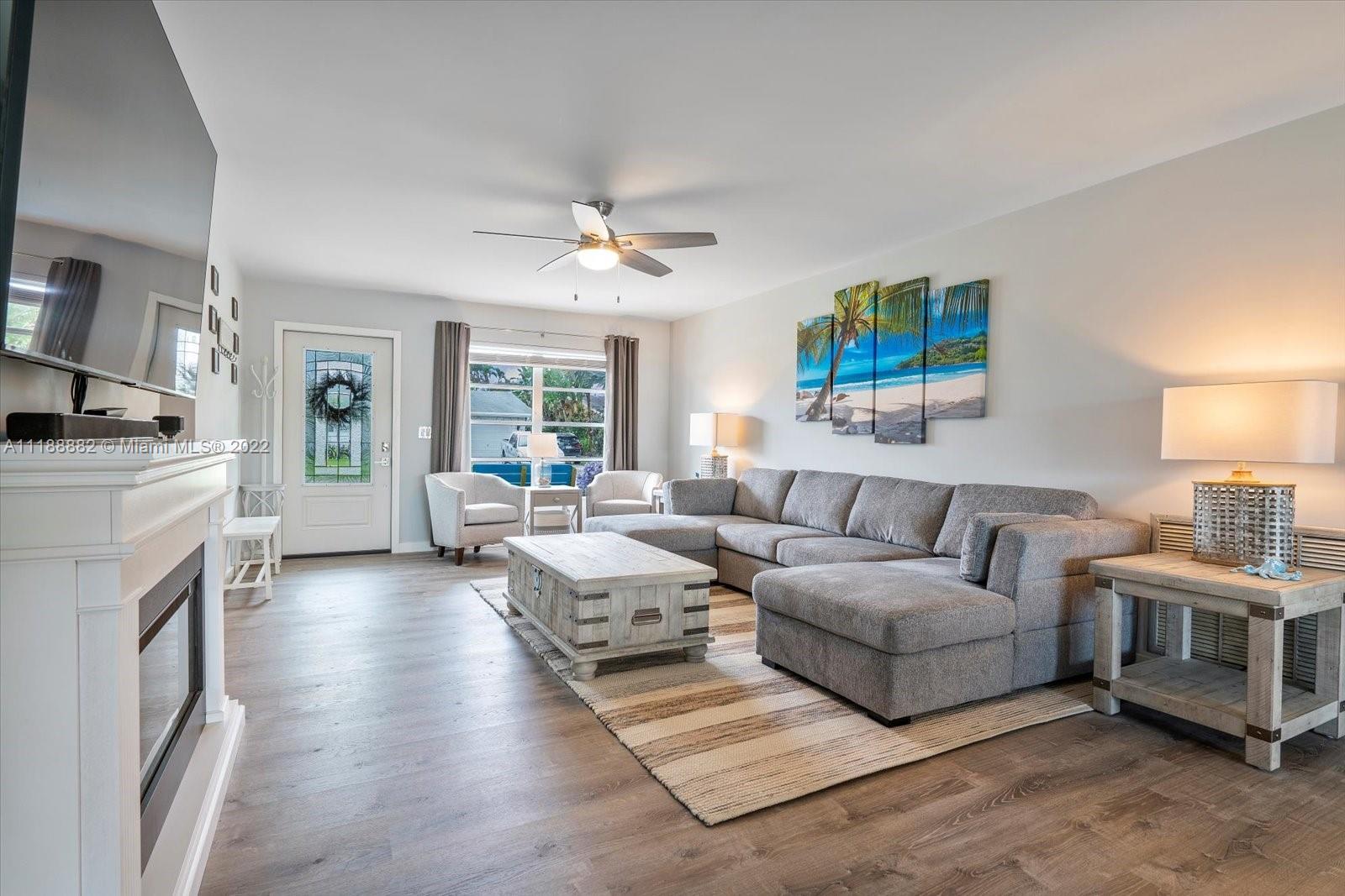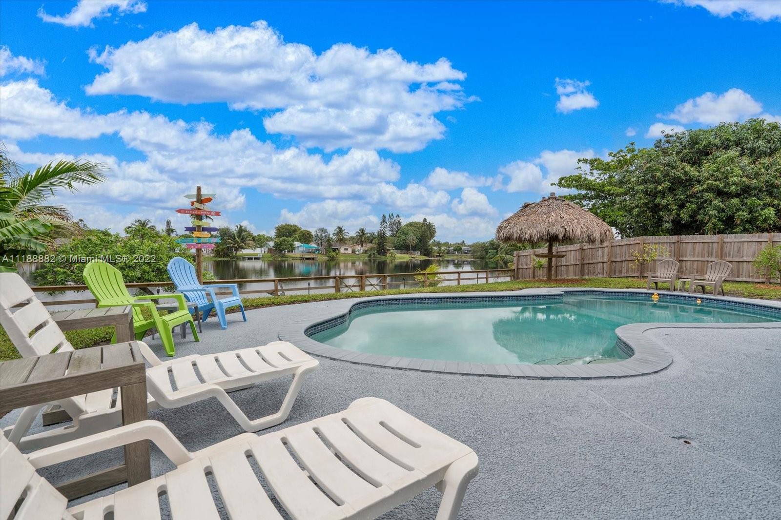 This is Waterfront living at its Best! Renovated 4 bedroom 2 bathroom home in Palm Aire Village is ready for your enjoyment. It has an open floor plan with water views, new flooring throughout, a brand-new kitchen & a new metal roof with a 50-year warranty. The kitchen features wood cabinets, stainless steel appliances, recessed lighting & quartz counters. The large primary suite has an amazing water view, access directly out to the pool & an expansive walk-in closet w/dressing area. Outside there’s a covered patio, pool, fruit trees & plenty of green space. Available w/furniture, exclusions apply. There’s plenty of parking with the garage and circular side driveway. Excellent neighborhood w/ NO HOA! Short Drive to the Beach, shopping, I-95 & the turnpike.
