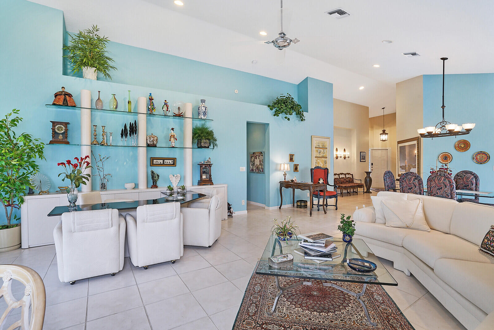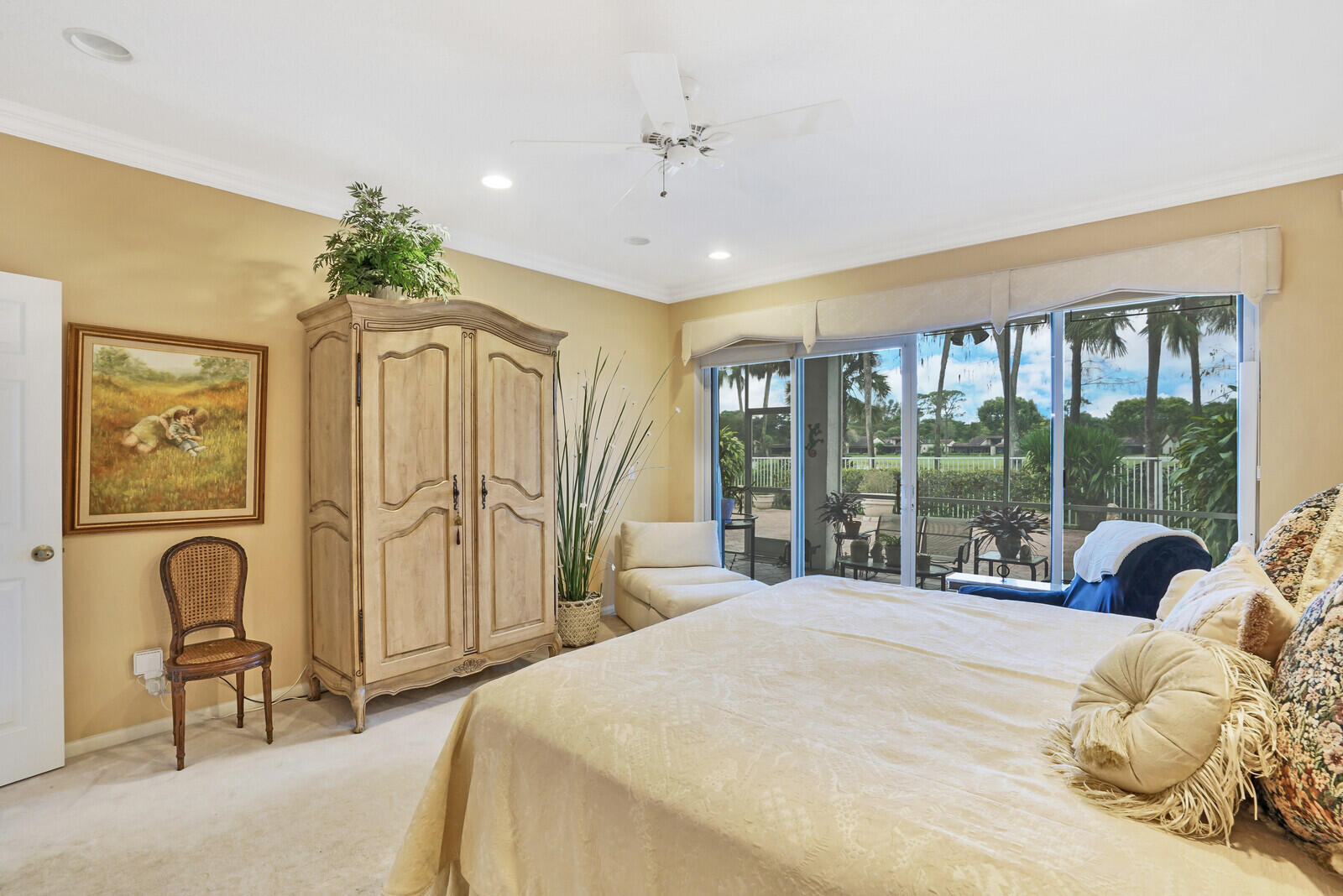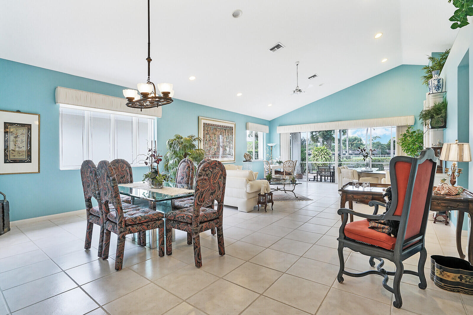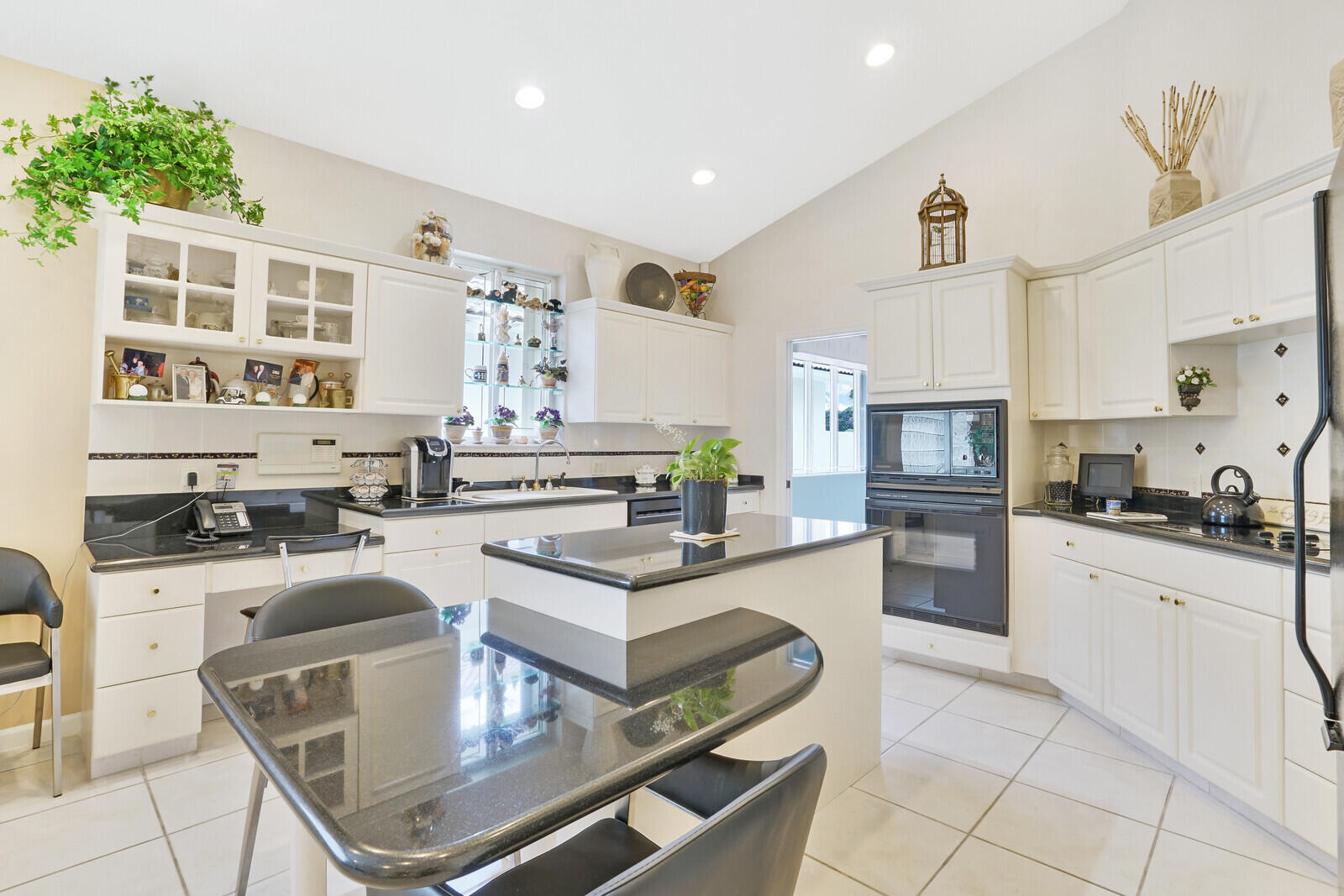 Let this home treat you to vibrant sunsets and views of the golf course-- with no mandatory buy in, this is scenery you can simply soak in from the breezy comfort of an enclosed porch or open sprawling patio. Ample outdoor space overlooking the 5th hole with water vista on the south course of Boca Lago Golf Club; this is the ultimate for year around living and entertaining. The features include a corner lot with full lush landscaping surrounding this property, offers a split floorplan with added features such as increased interior square footage, accordion shutters, private primary bedroom suite with views, custom outfitted closets, double vanity sinks in bathrooms with tile and marble throughout. This light bright 3 bedroom 2 1/2 bath with vaulted ceilings home is move in ready or