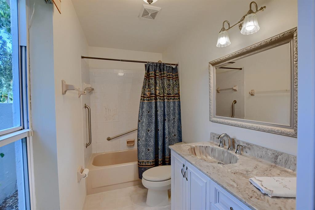Don't miss this East Boca beauty! Almost 2700 sf under air in this split plan 3 bedroom home w/vaulted ceilings, marble floors, recently remodeled custom kitchen w/quartz counters, fireplace in the family room, full hurricane protection, 2 new ACs (2021) plus all new duct work, dreamy new master bathroom w/soaking tub(2021), 2nd bedroom is a mother-in-law suite w/kitchen, bedroom 3 is ADA compliant w/huge bathroom & roll in shower. Backyard features a huge patio for entertaining and an oversized pool w/spa. Electric panel wired for the included portable generator. Zoned for new Addison Mizner K-8 school just a block away. Minutes to the beach, downtown. Fenced oversize lot is larger than most at .3033 acres. House can be converted back to original layout of 4 beds/ 3 baths.