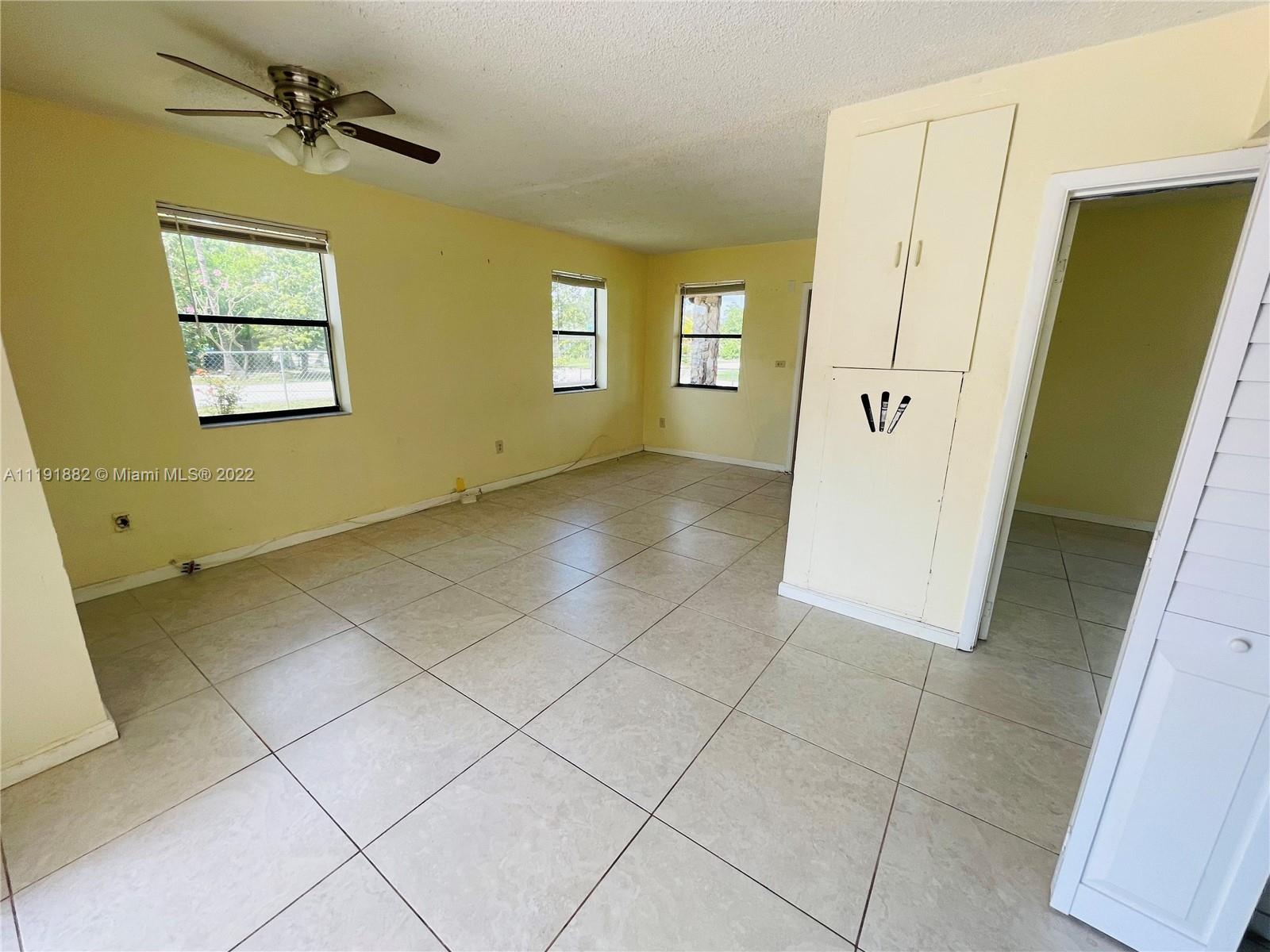 Perfect first time home or investment property on the huge lot.Move in into a beautiful 2 bedroom 1 bath with a huge backyard located in the Pompano Beach Area. Updated bath, kitchen, stainless steel and ceramic tiles throughout the house. This home also includes extra storage in the outdoor shed and a fenced-in backyard. Plenty room in the property for addition/pool in the backyard. Great investment opportunity close to Walmart, Pompano Citi Centre Shopping and several eateries.