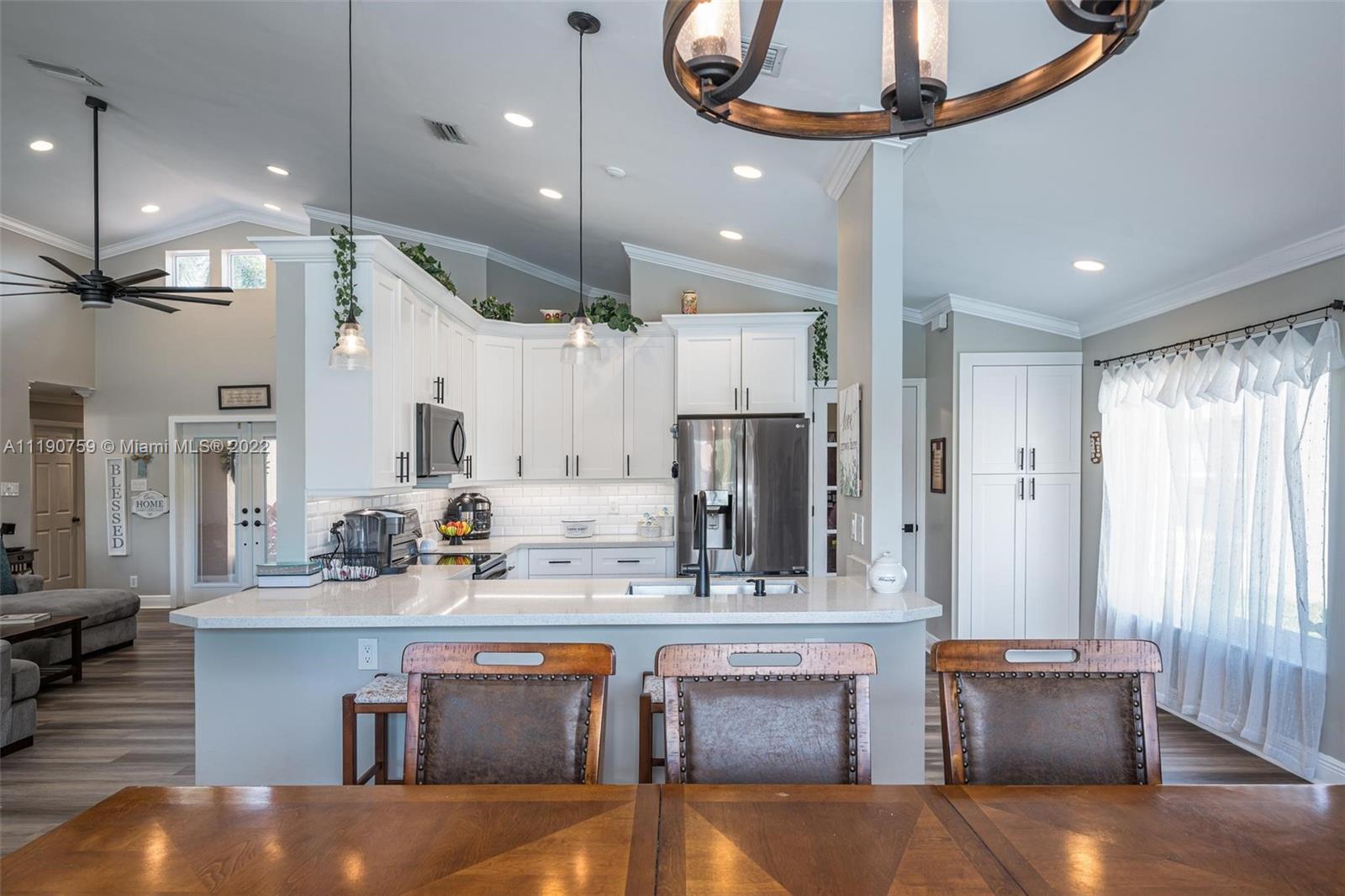 This is the one, an entertainer’s South Florida paradise found! Completely renovated one story on an expansive lot with endless wide lake water views. This gorgeous 4 bedroom, 2 bath plus den has it all. Chef’s kitchen (2019) with stainless steel appliances, quartz counter tops and white shaker cabinets, renovated bathrooms & new flooring throughout (2019). Extensive exterior upgrades include; brand new roof (2022), impact glass windows (2019), heated salt water pool & spa, travertine pavers and professional landscaping done in (2022). Enjoy Weston’s A+ schools while creating endless family memories this meticulously maintained and highly upgraded home. Open house Sat., April 23 & Sun., April 24 from 1pm - 3 pm