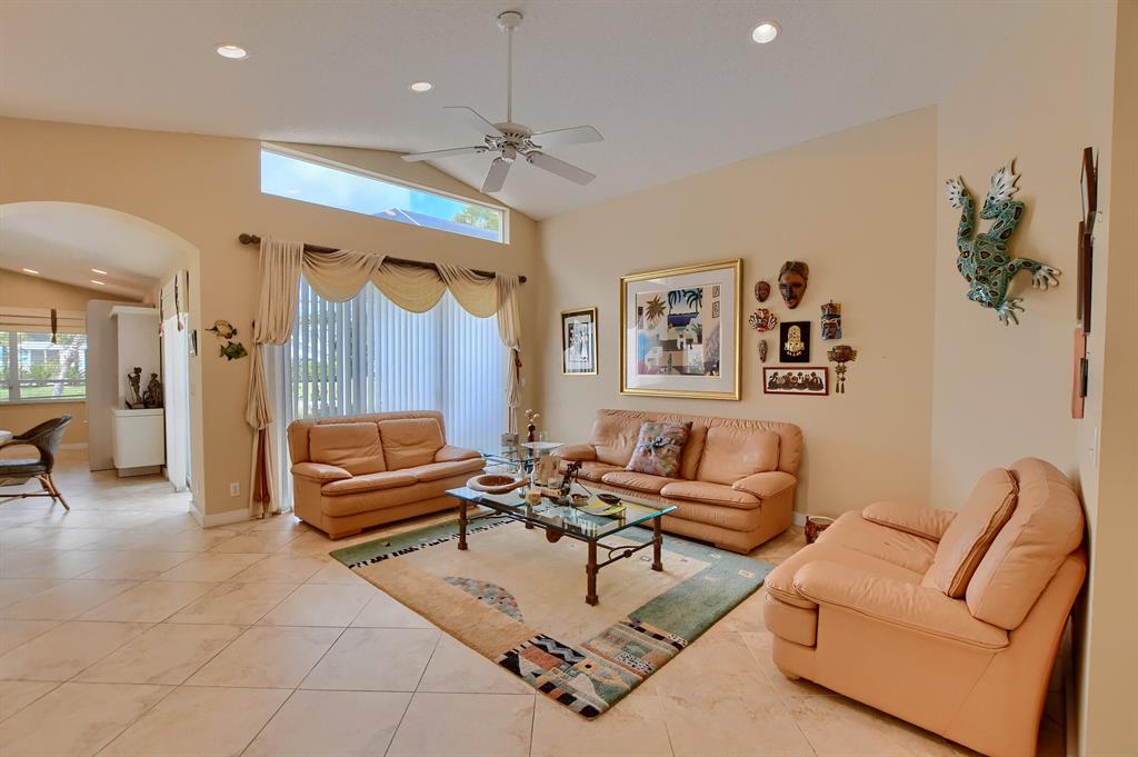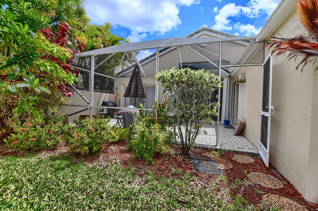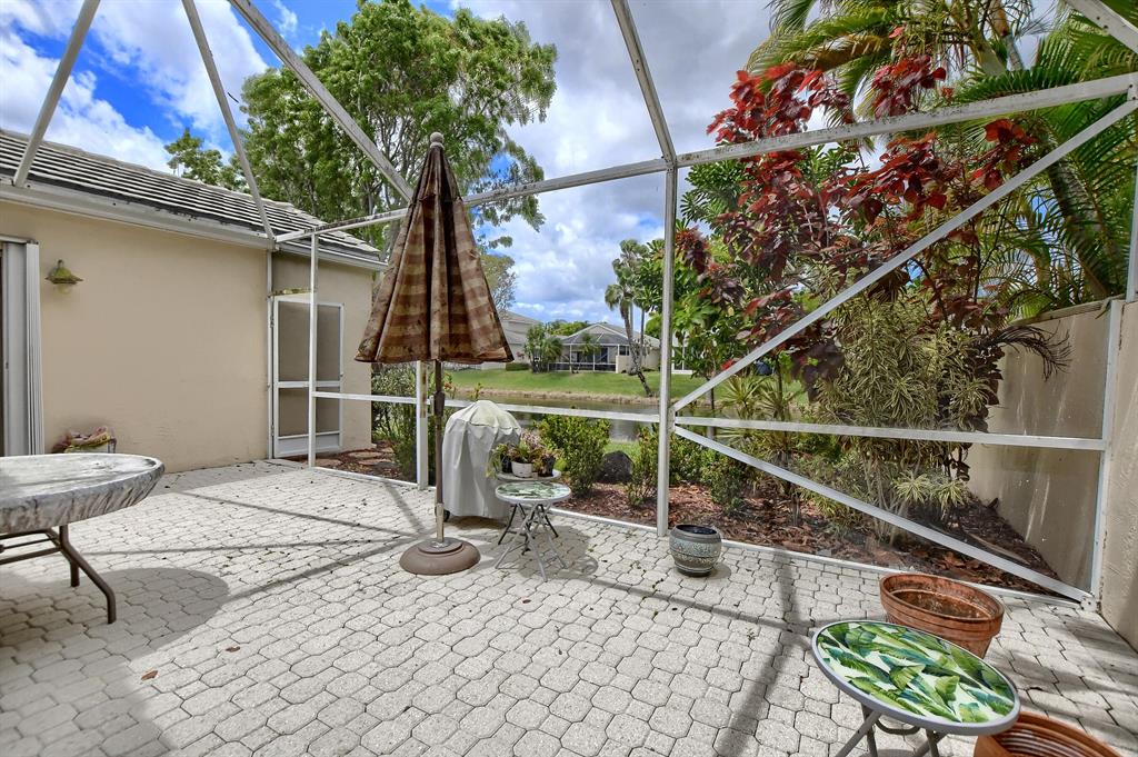 Lovingly maintained one story single family home available now in popular Palms at Boca Pointe. Enjoy the peaceful lake views from the screened in patio. Spacious floor plan with living room plus den off kitchen area. Kitchen updated with wood cabinets, granite counters, stainless steel appliances, and mosaic tile backsplash. Large master bedroom with huge walk in custom fitted closet and sliders to go out to patio. Master bath updated with replaced cabinet with double sinks, spa tub and updated shower. Accordion hurricane shutters throughout! Roof approximately 12 years old. Other features include tile floors through out home, custom closets, A/C 2015, easy access to backyard. Community has pool and 24 hour manned gate. Country club membership available, but not mandatory.